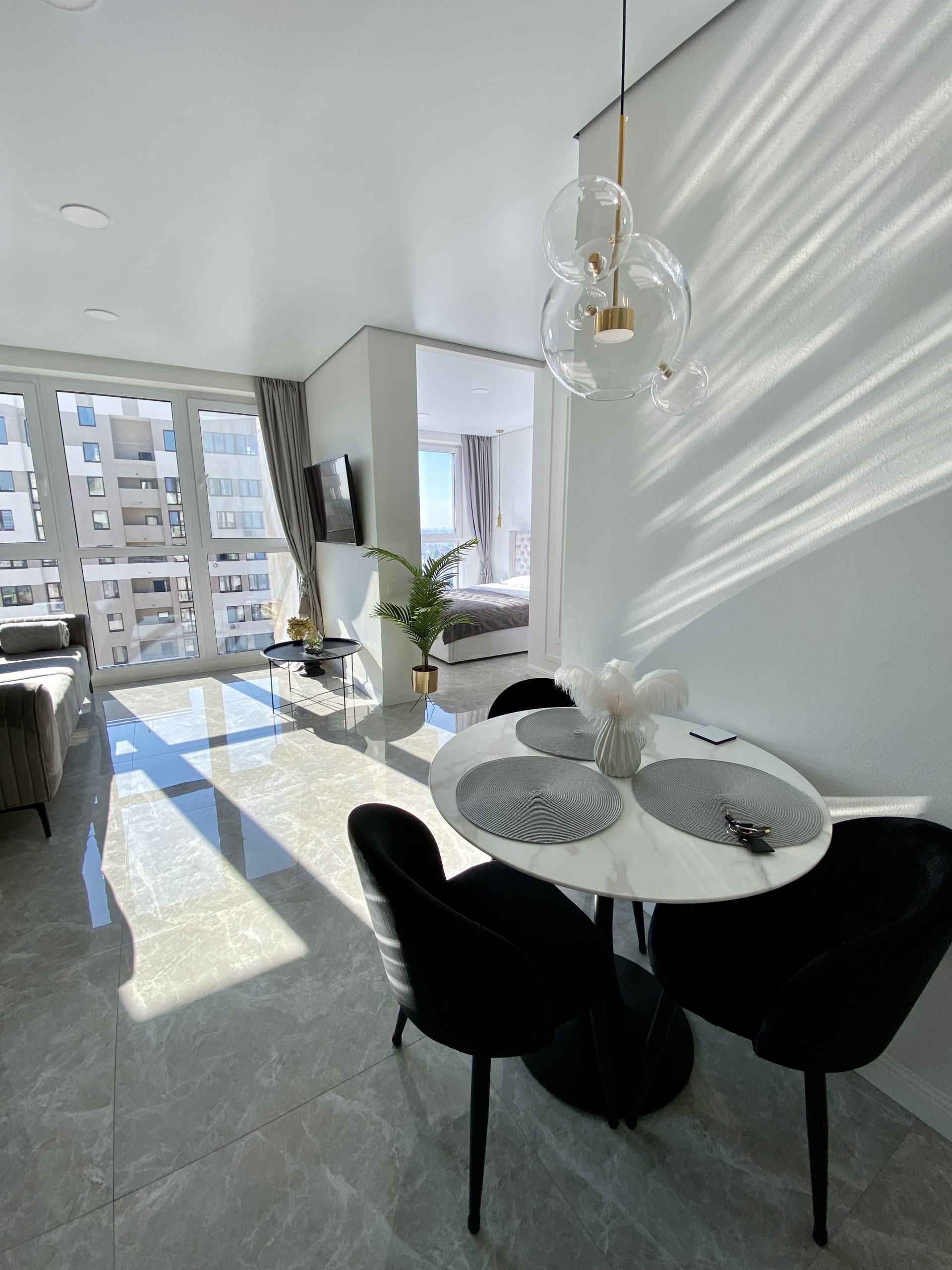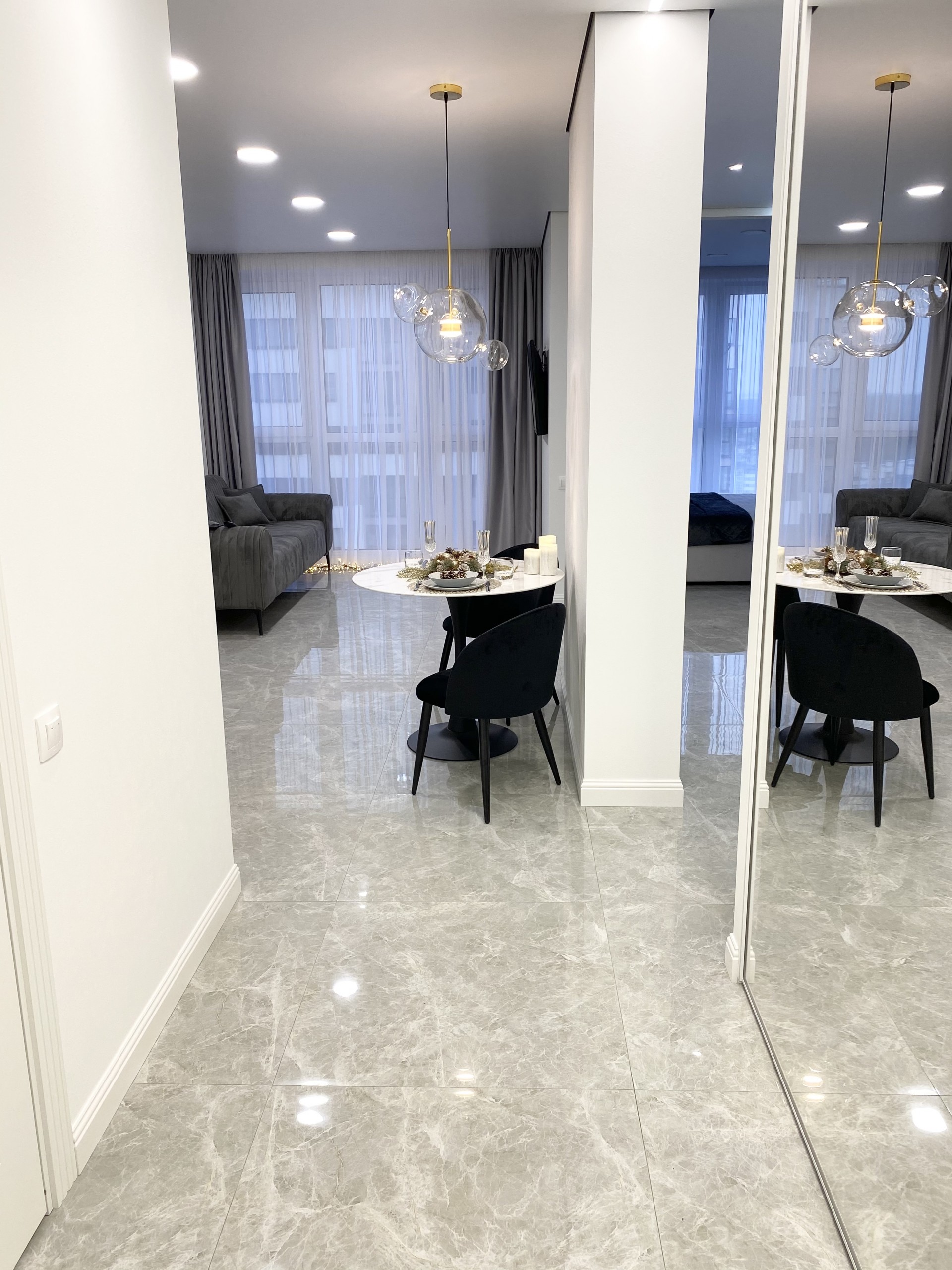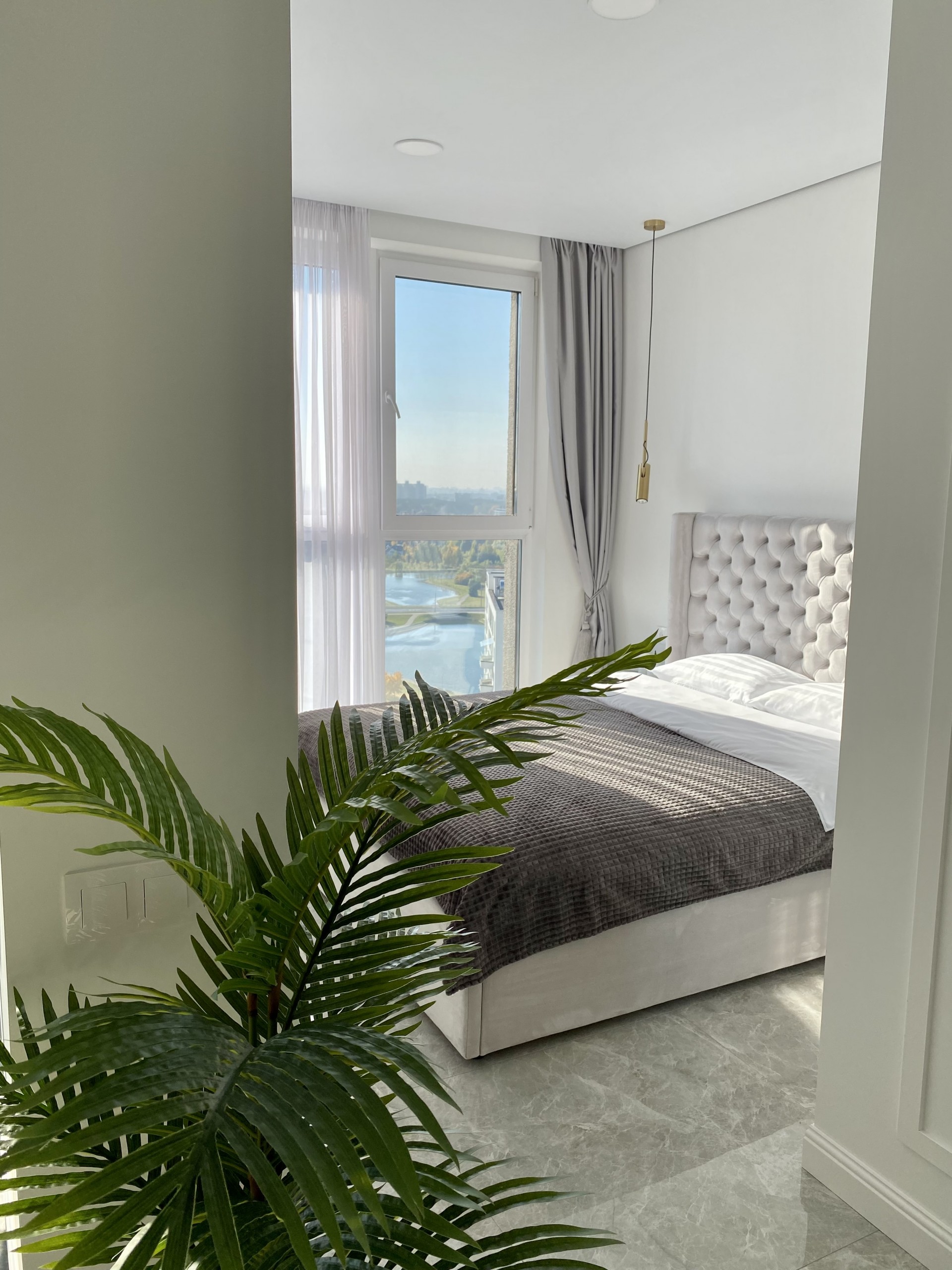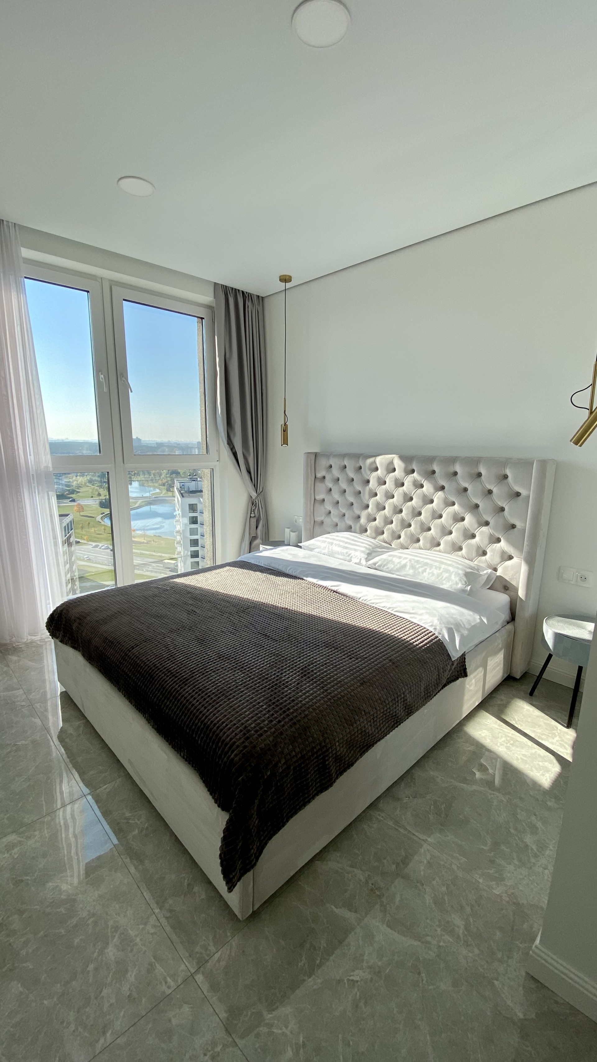 Апартаменты расположены на 18 этаже 20-го дома в престижном, новом комплексе ЖК Маяк Минска. Апартаменты имеют большие просторные окна , дизайн в минималистическом стиле, практичный и функциональный. Удобства: зона кухни оснащена современной техникой (холодильник, варочная панель, печь СВЧ, посудомоечная машина, стиральная машина, электрочайник, духовой шкаф), обеденной зоной с необходимыми столовыми и кухонными принадлежностями. Гостиная комната с телевизором (с плоским экраном и кабельными каналами) и удобным раскладывающимся диваном, а также 1 спальня с удобным многофункциональным шкафом (гладильная доска, утюг). Ванная комната с душевой кабиной и тропическим душем, наличие всех необходимых принадлежностей (фен, гель для душа, шампунь, одноразовая паста и зубные щетки, кондиционер для волос, полотенца).