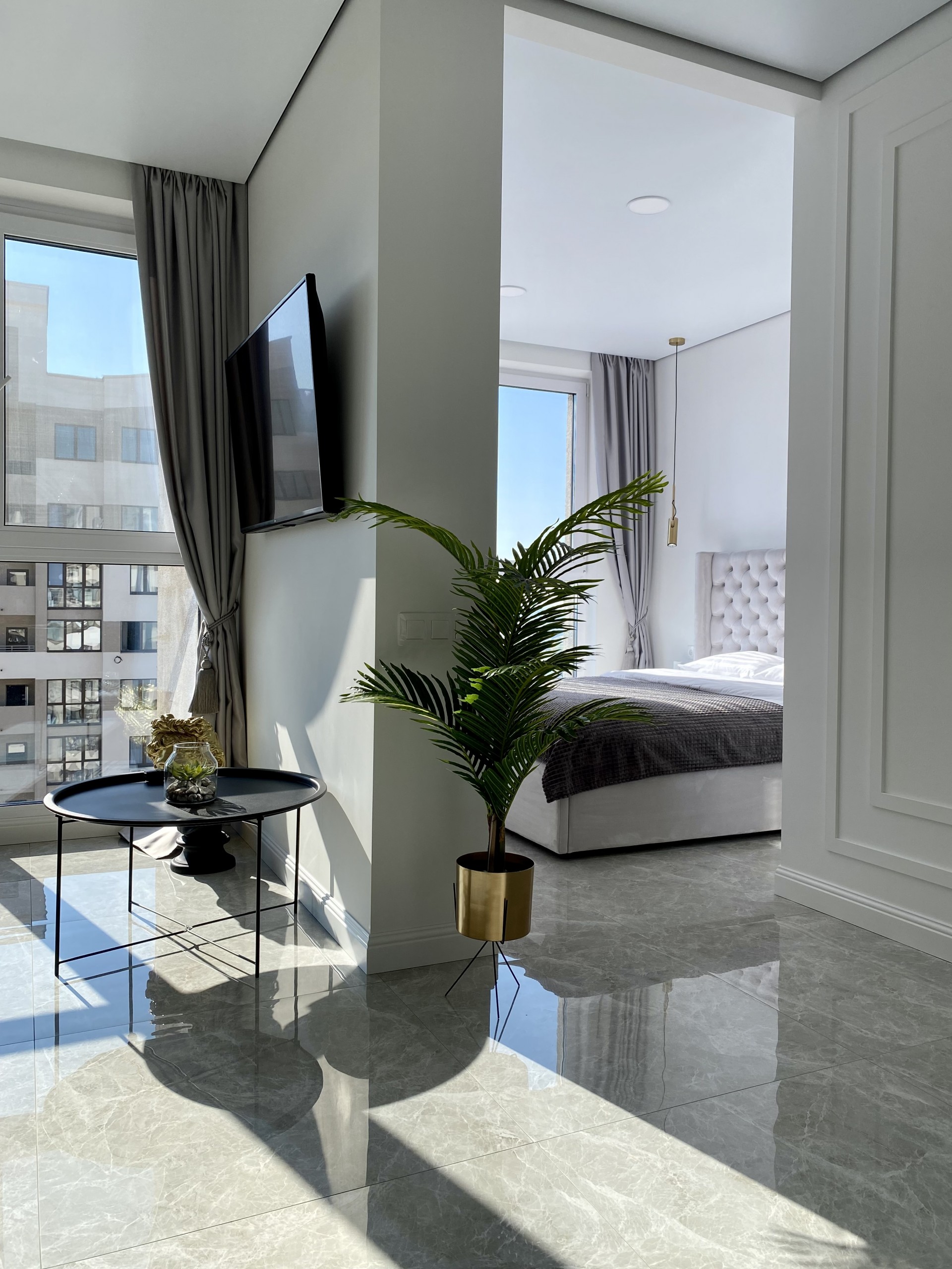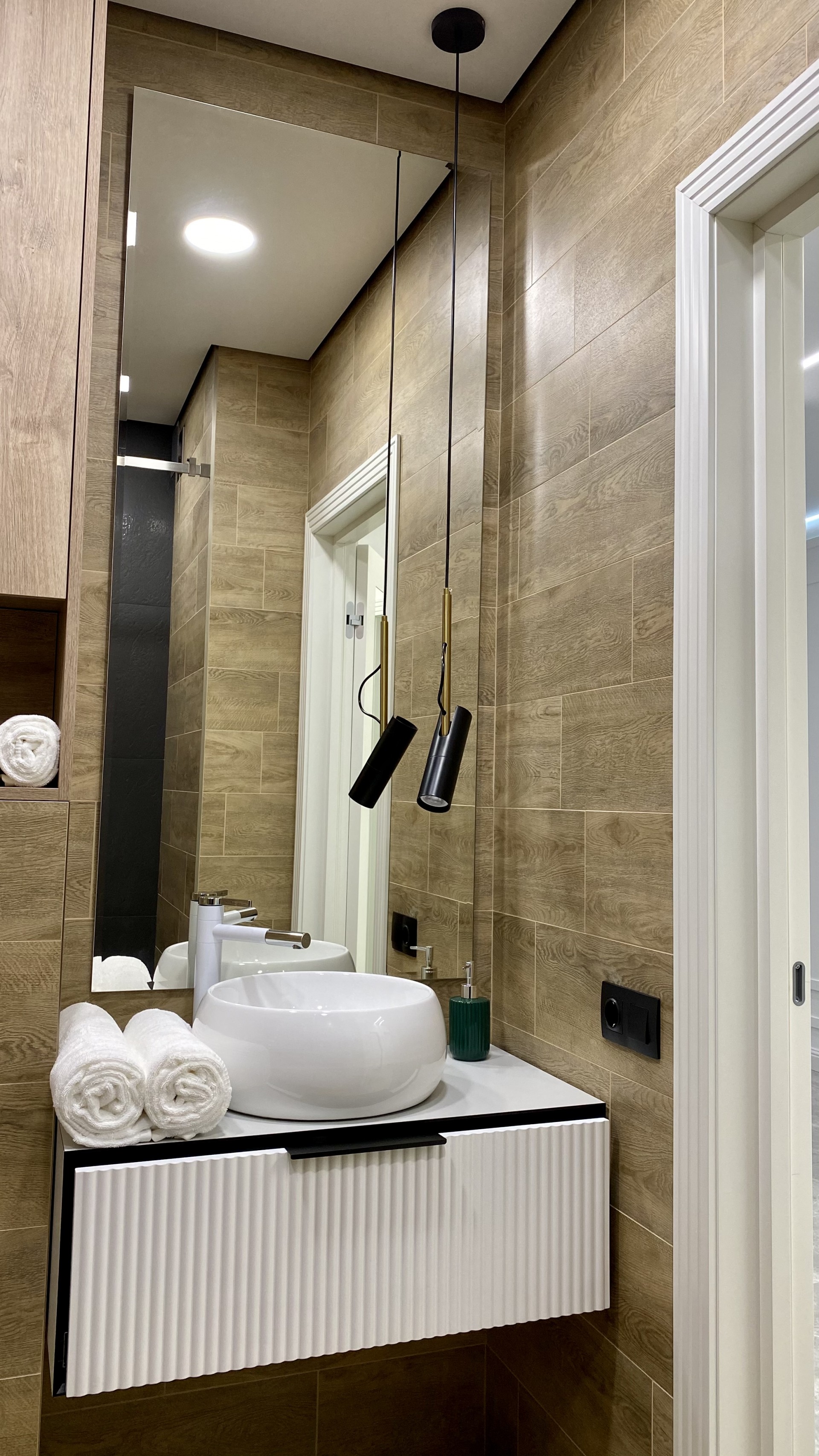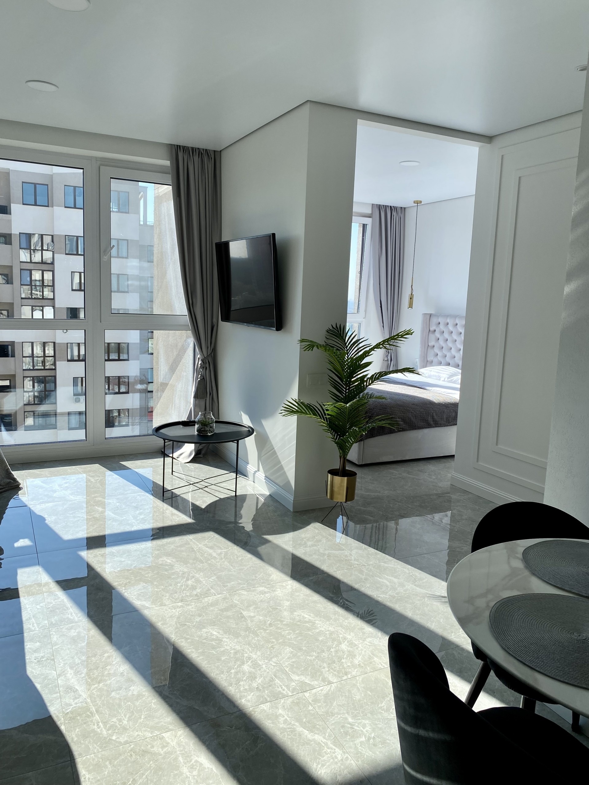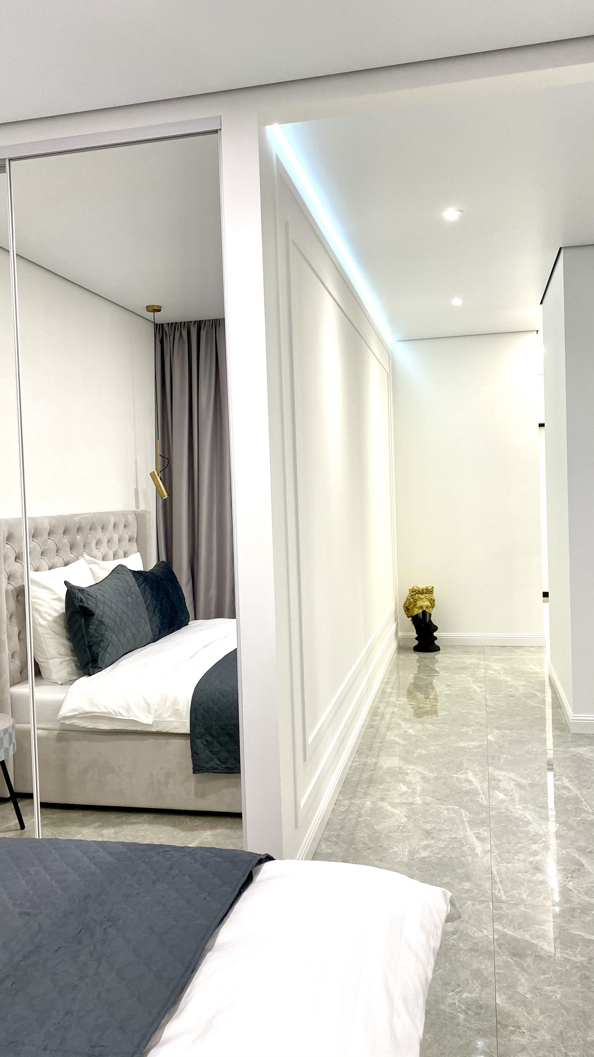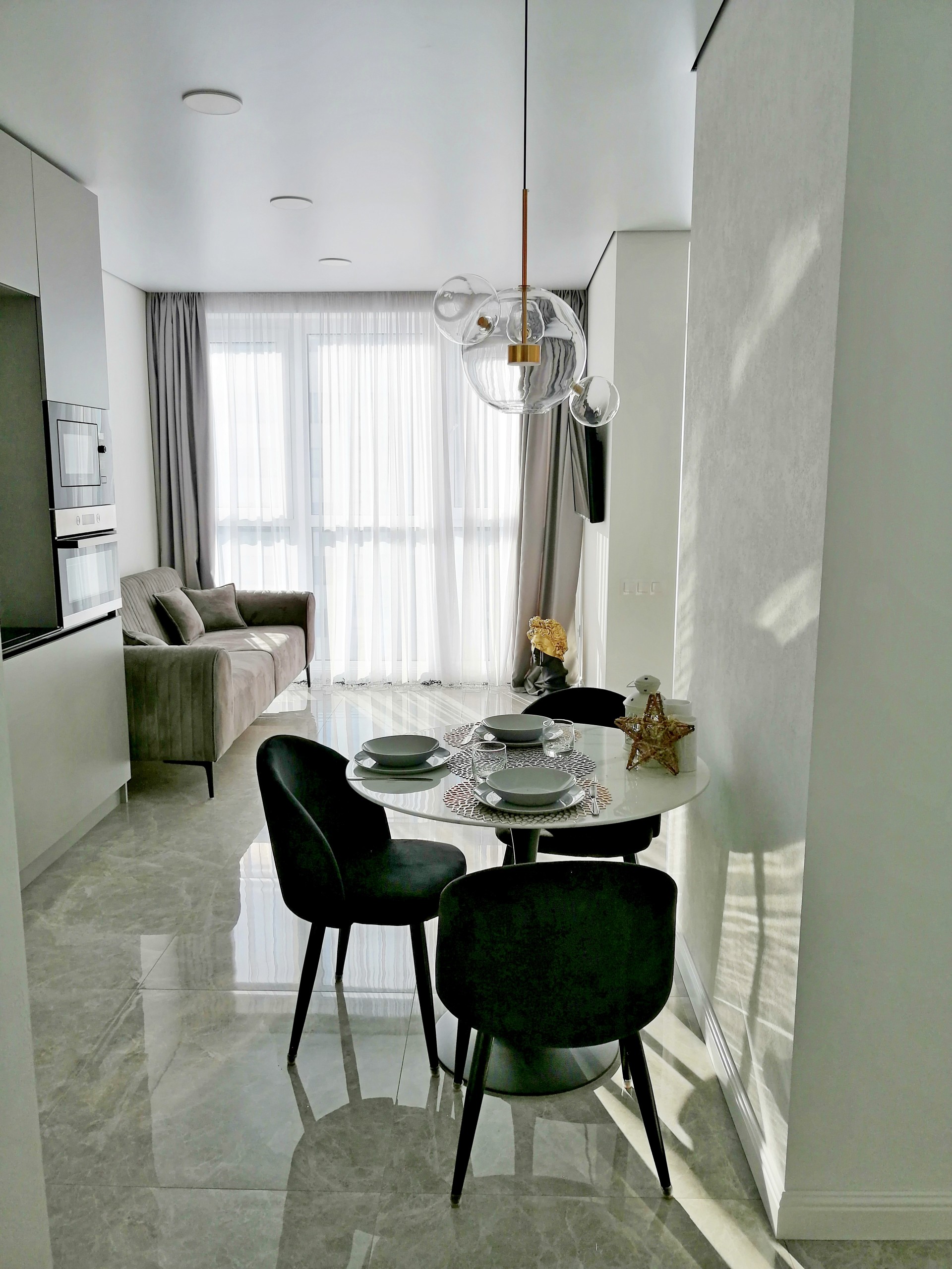 Апартаменты расположены на 18 этаже 20-го дома в престижном, новом комплексе ЖК Маяк Минска. Апартаменты имеют большие просторные окна , дизайн в минималистическом стиле, практичный и функциональный. Удобства: зона кухни оснащена современной техникой (холодильник, варочная панель, печь СВЧ, посудомоечная машина, стиральная машина, электрочайник, духовой шкаф), обеденной зоной с необходимыми столовыми и кухонными принадлежностями. Гостиная комната с телевизором (с плоским экраном и кабельными каналами) и удобным раскладывающимся диваном, а также 1 спальня с удобным многофункциональным шкафом (гладильная доска, утюг). Ванная комната с душевой кабиной и тропическим душем, наличие всех необходимых принадлежностей (фен, гель для душа, шампунь, одноразовая паста и зубные щетки, кондиционер для волос, полотенца).
