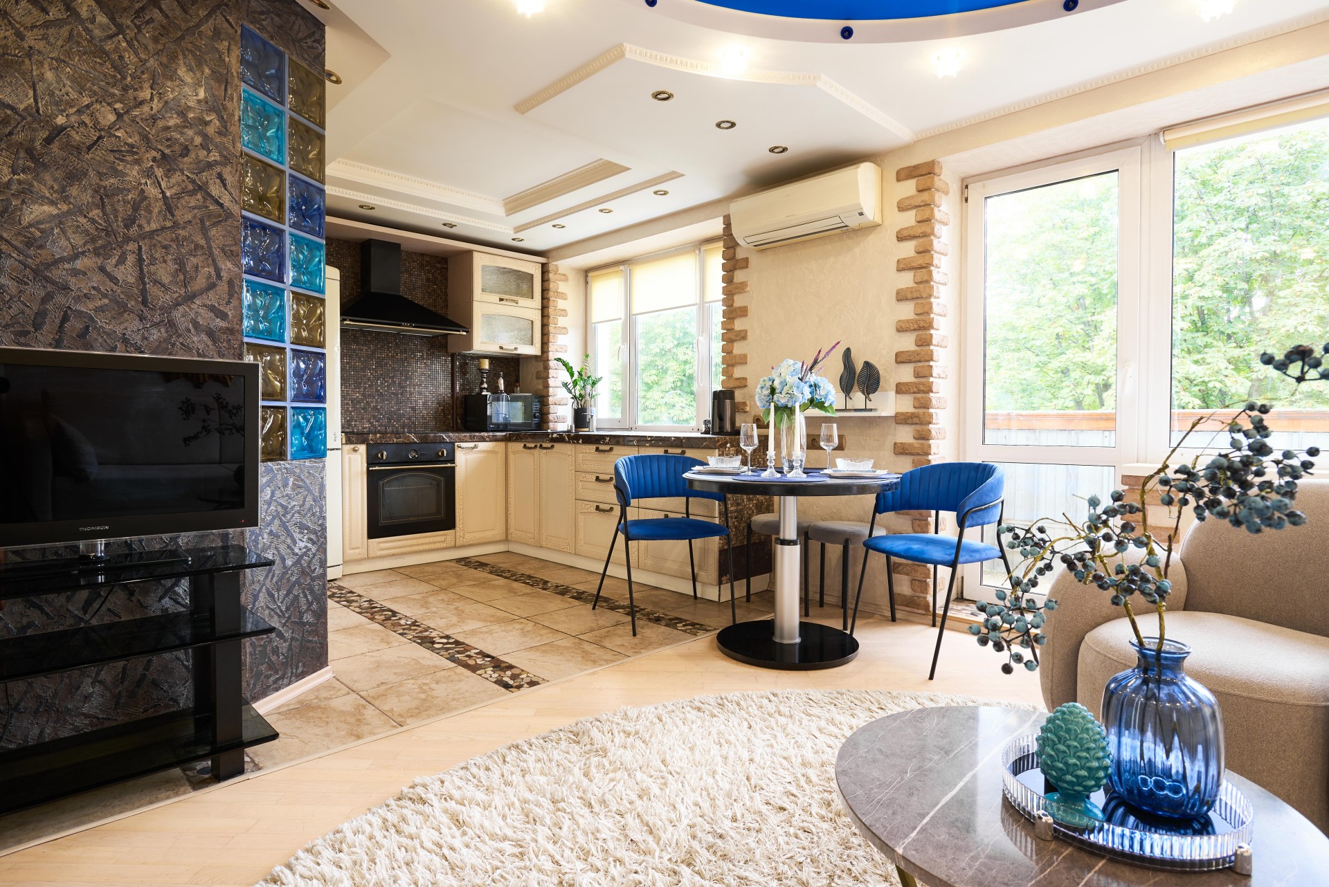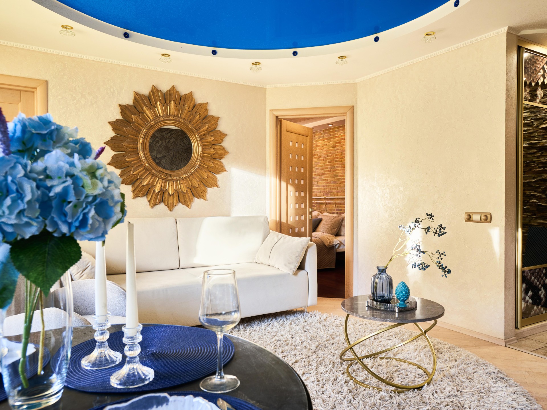 В Романтической ванной комнате с естественным светом вы сможете расслабиться приняв ванну с аэромассажем. На оснащенной всем необходимым кухне приготовить аппетитный ужин. Благодаря наличию кондиционера, даже в самые жаркие будни в апартаментах поддерживается максимально комфортная температура воздуха. Безупречная чистота.