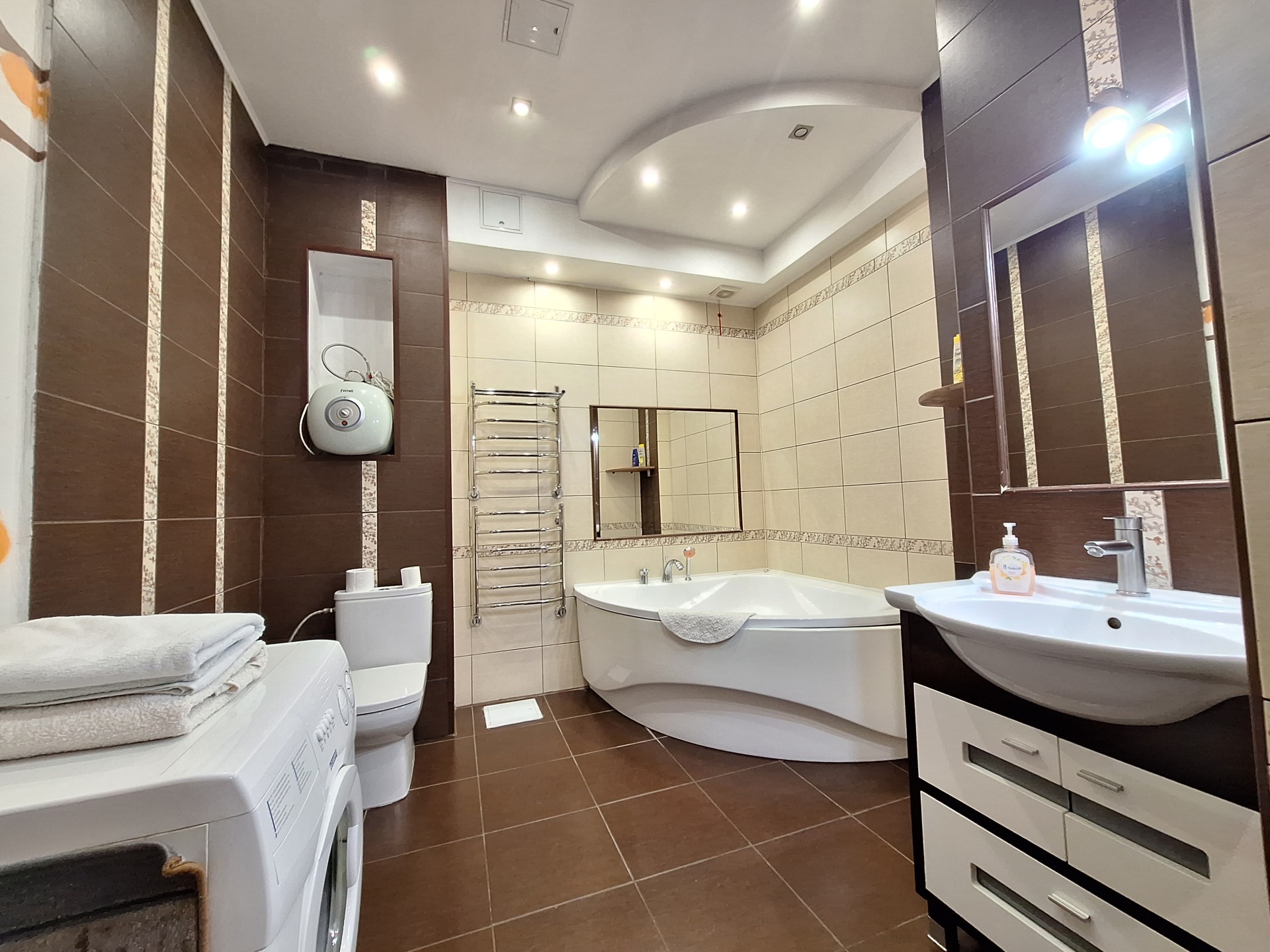 УдобстваБеспроводной интернет Wi-Fi, Телевизор, Домофон, Полотенца, Кабельное/спутниковое телевидение, Постельное бельё, Мыло, Туалетная бумага, Стиральная машина, Кофе, чай, Утюг, Фен, Шампунь, Открытый балкон/лоджия, Ванна, Охраняемая парковка поблизости, Холодильник, Микроволновая печь, Посуда