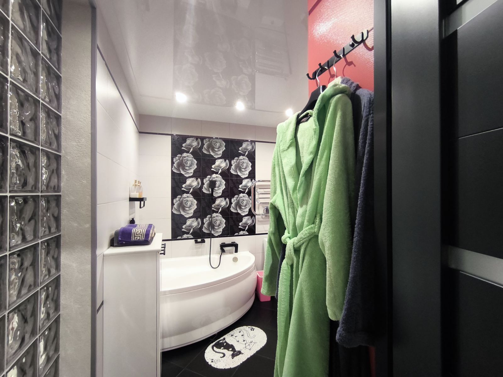 В апартаментах есть все для комфортного проживания: кабельное ТВ, скоростной интернет, лоджия на кухне, просторная ванная 10 кв.м. большая угловая ванна,душ для интимной гигиены, новая сантехника и смесители,огромное зеркало на всю стену,стиральная машина.Отдельная спальня оснащена огромной,двухспальней кроватью с абсолютно новым,высоким,ортопедическим матрасом,две прикроватные тумбочки,комод,шкаф для одежды,телевизор,кабельное ТВ,новые шторы блекаут,лоджия.В апартаментах идеальная чистота и домашний уют!Новое красивое постелное белье и качественные полотенца,фен,утюг,кофе,чай и другие приятные мелочи!