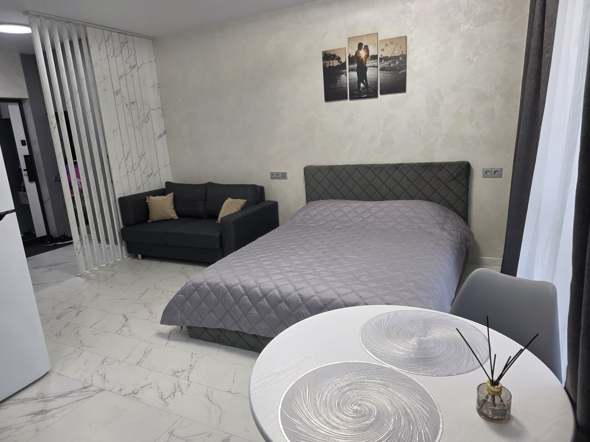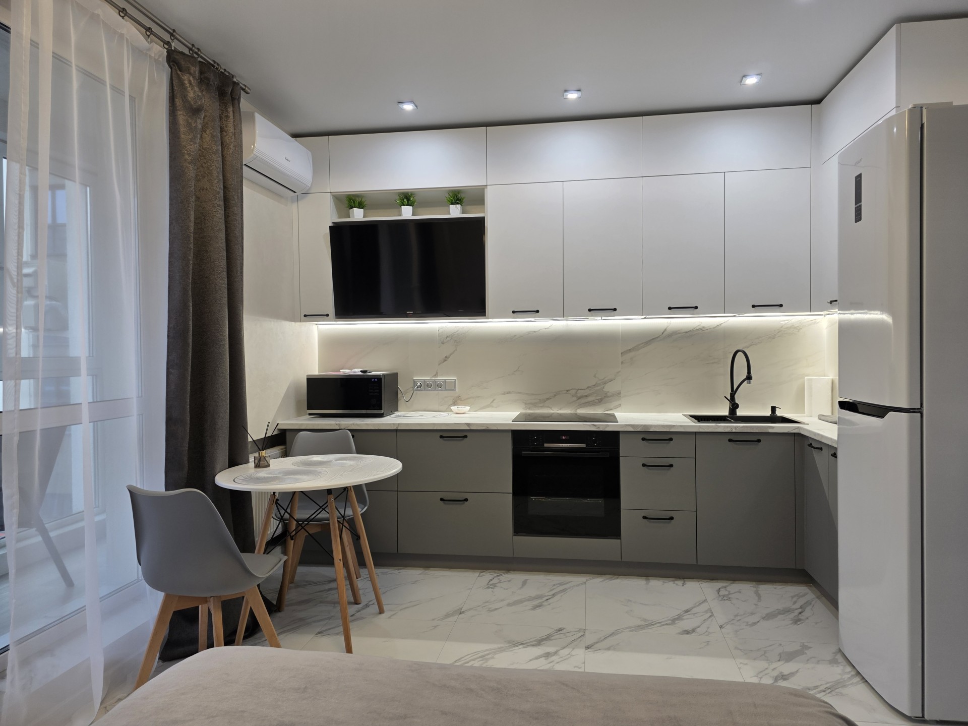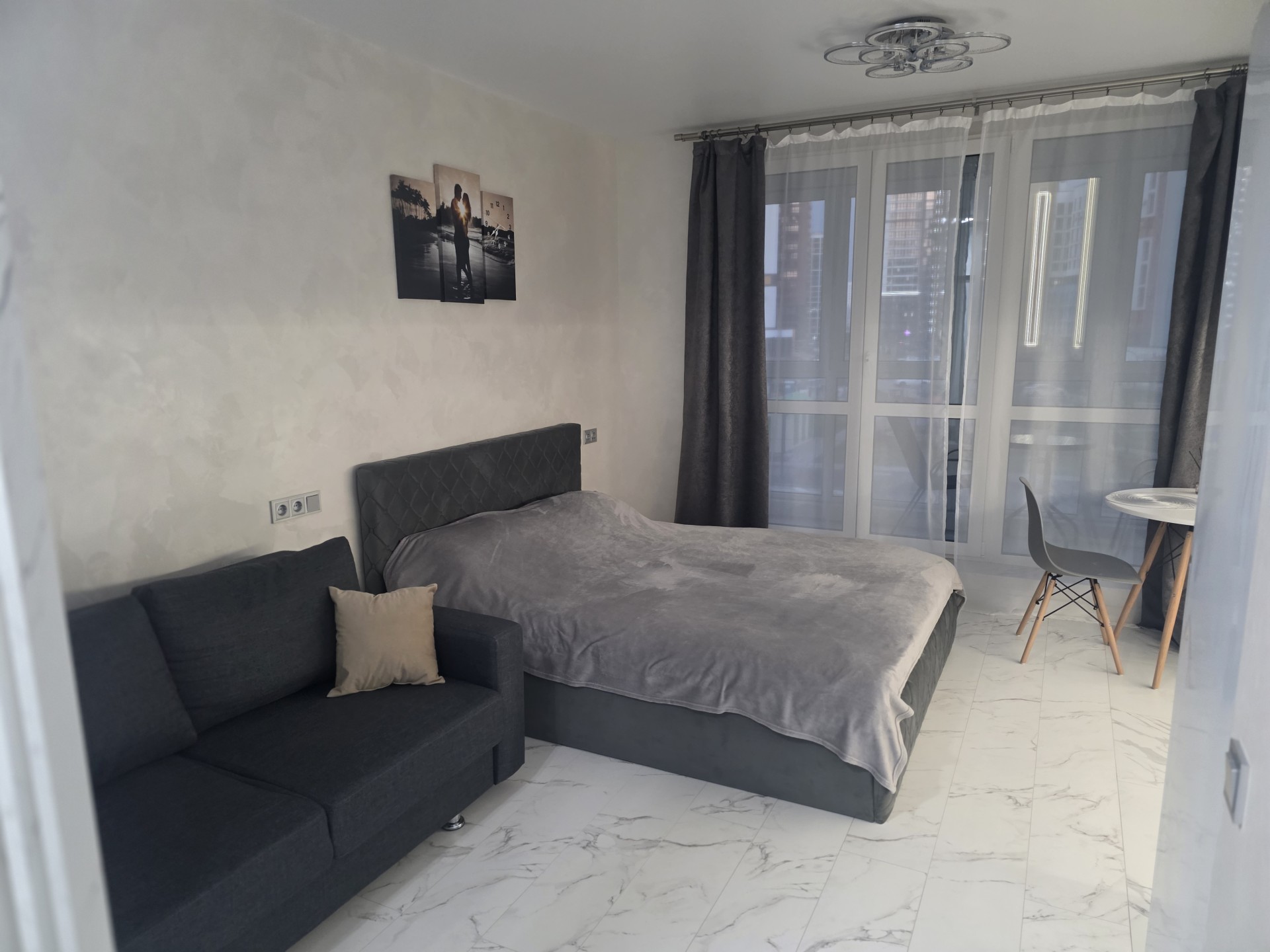 Отличная студия , все новенькое,есть все необходимое.Через дорогу ТЦ Авиамолл и метро Аэродромная.