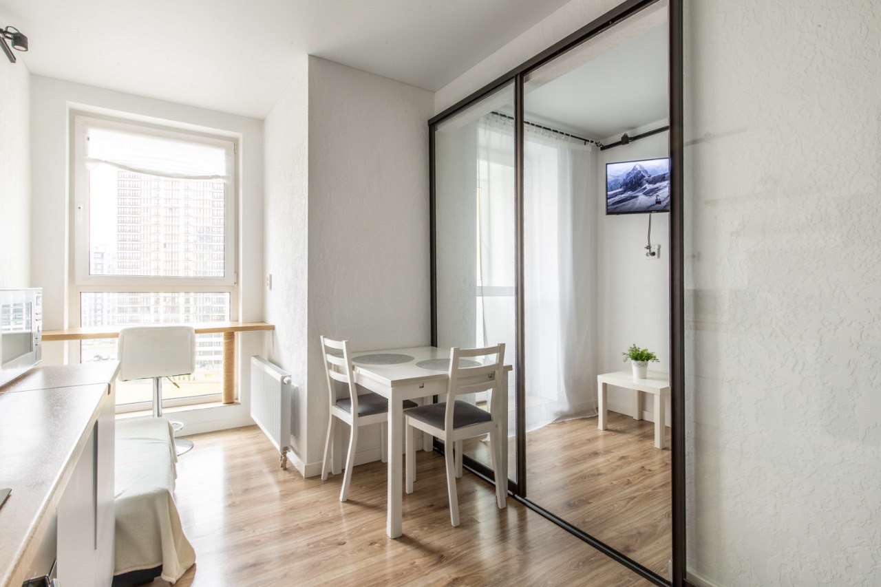 Однокомнатная квартира-студия в новом доме на 10 этаже. Новый район МИНСК-МИР.