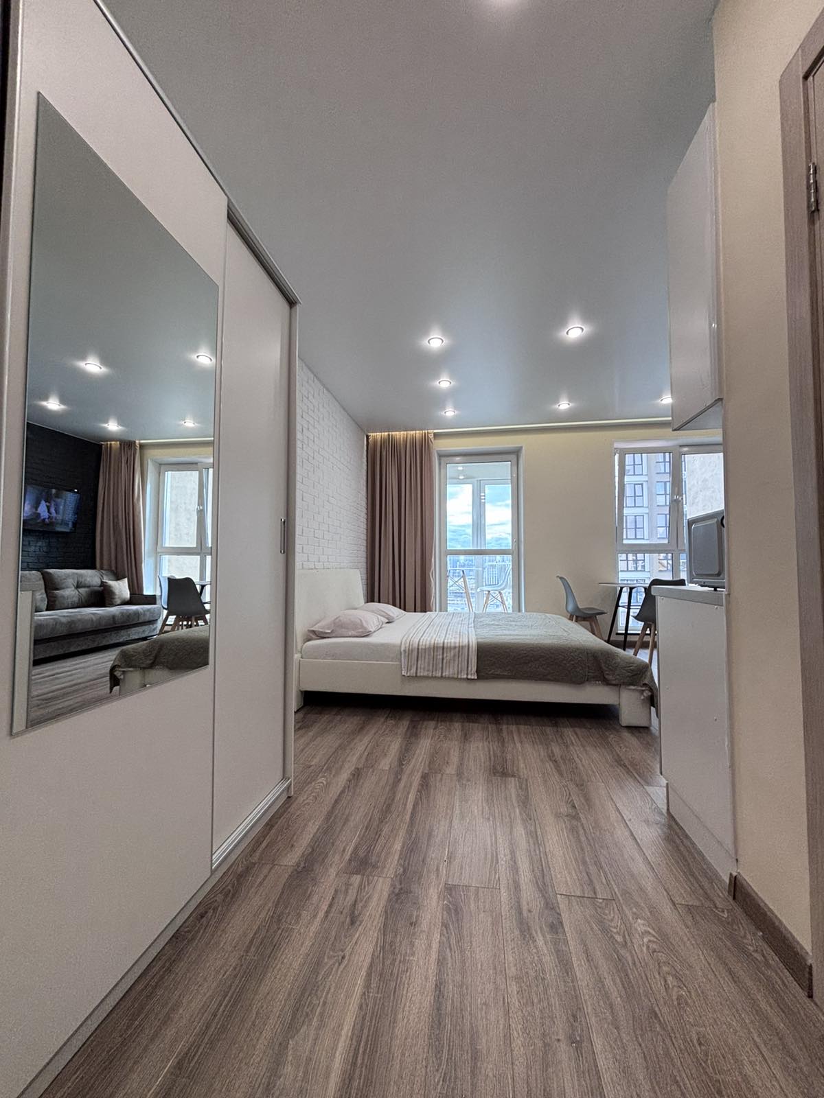 Однокомнатная квартира-студия в новом доме на 16 этаже. Новый район МИНСК-МИР.