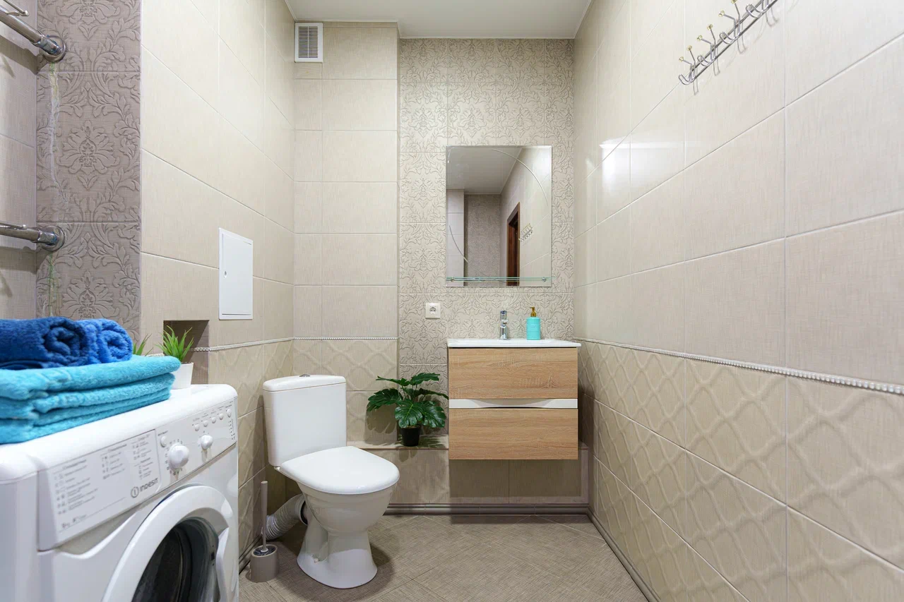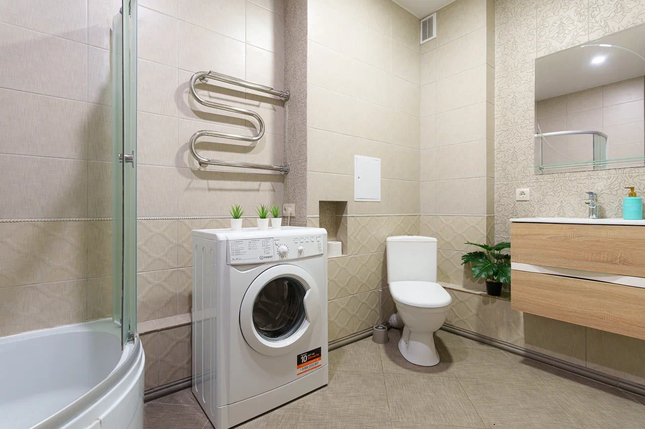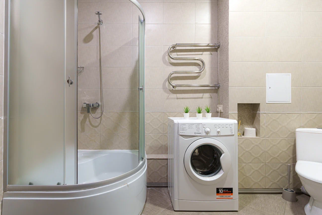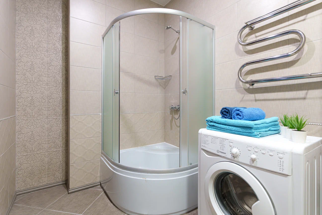 Совмещённый санузел с современной душевой кабиной