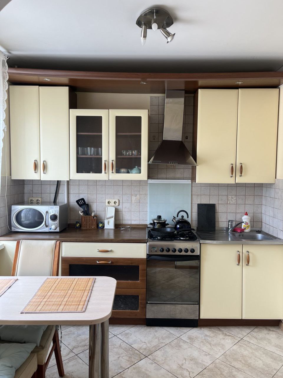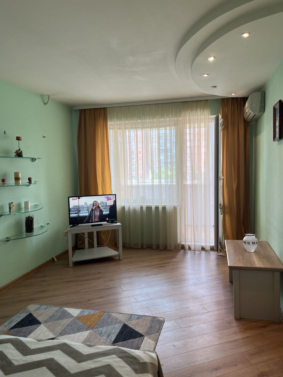 В квартире есть все необходимое для проживания: кровать 2-х спальная, диван кожаный раскладной, 4 шкафа, комоды, рабочий стол, журнальный столик, холодильник, СВЧ-печь, стиральная машина, кондиционер, телевизор, утюг, фен, сушилка для белья, посуда и принадлежности: чайник, сковорода, кастрюля и др., шикарная ванная комната 5,2 м2,стеклопакеты, москитные сетки, рольшторы, кондиционер, бесплатный WiFi, телевидение, большая лоджия, рядом с домом бесплатная и платная парковка. Предоставляется постельное белье и средства гигиены,. Размещение 2+2.