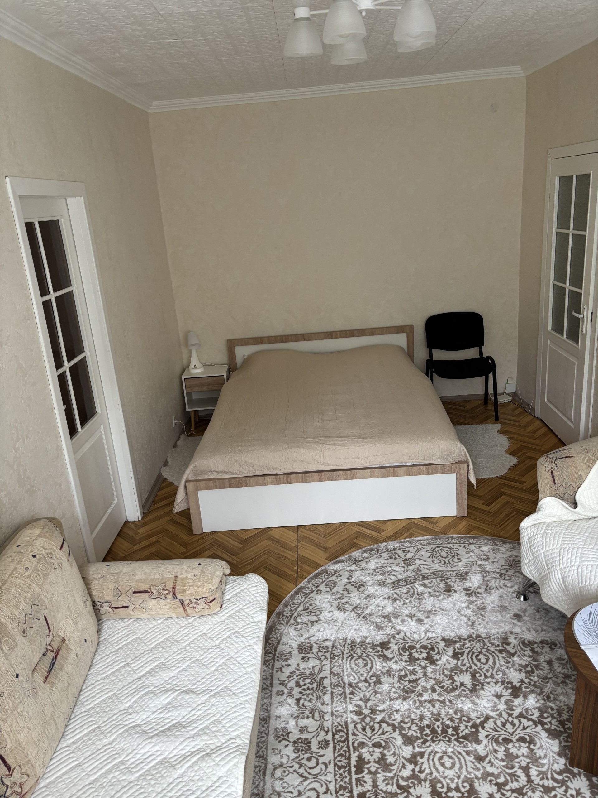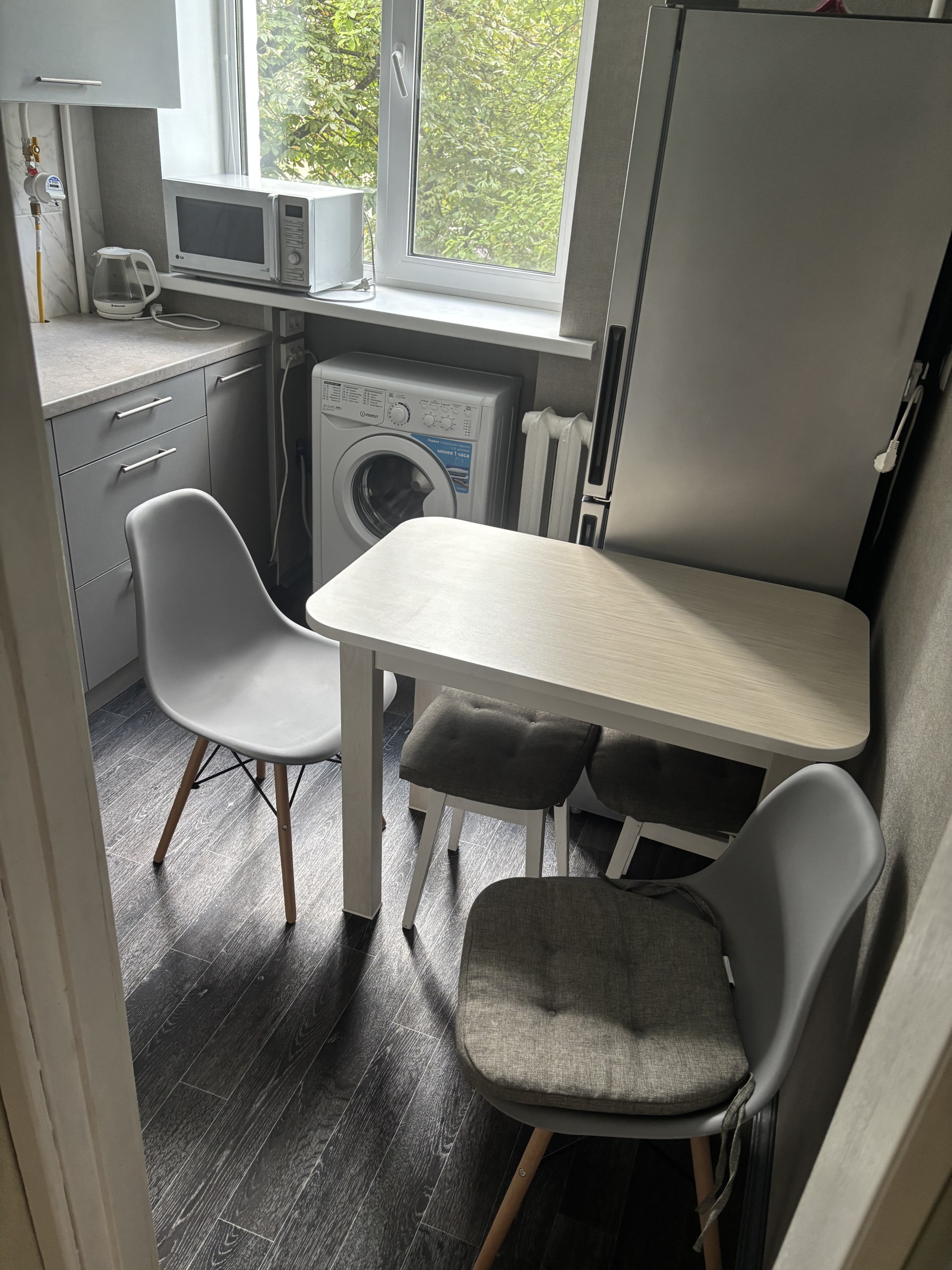 УдобстваБеспроводной интернет Wi-Fi, Телевизор, Полотенца, Постельное бельё, Мыло, Туалетная бумага, Стиральная машина, Кофе, чай, Утюг, Фен, Шампунь, Открытый балкон/лоджия, Душевая кабинка, Автономный подогрев воды (бойлер/колонка), Холодильник, Микроволновая печь, Посуда
