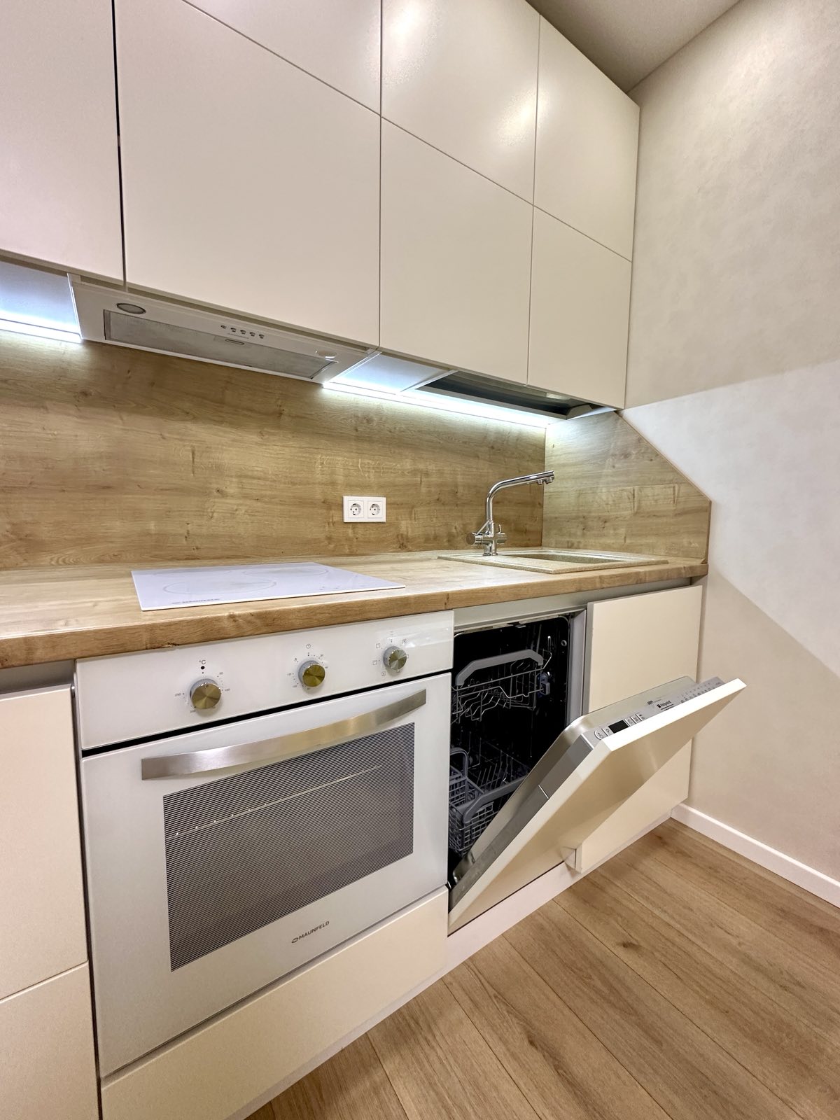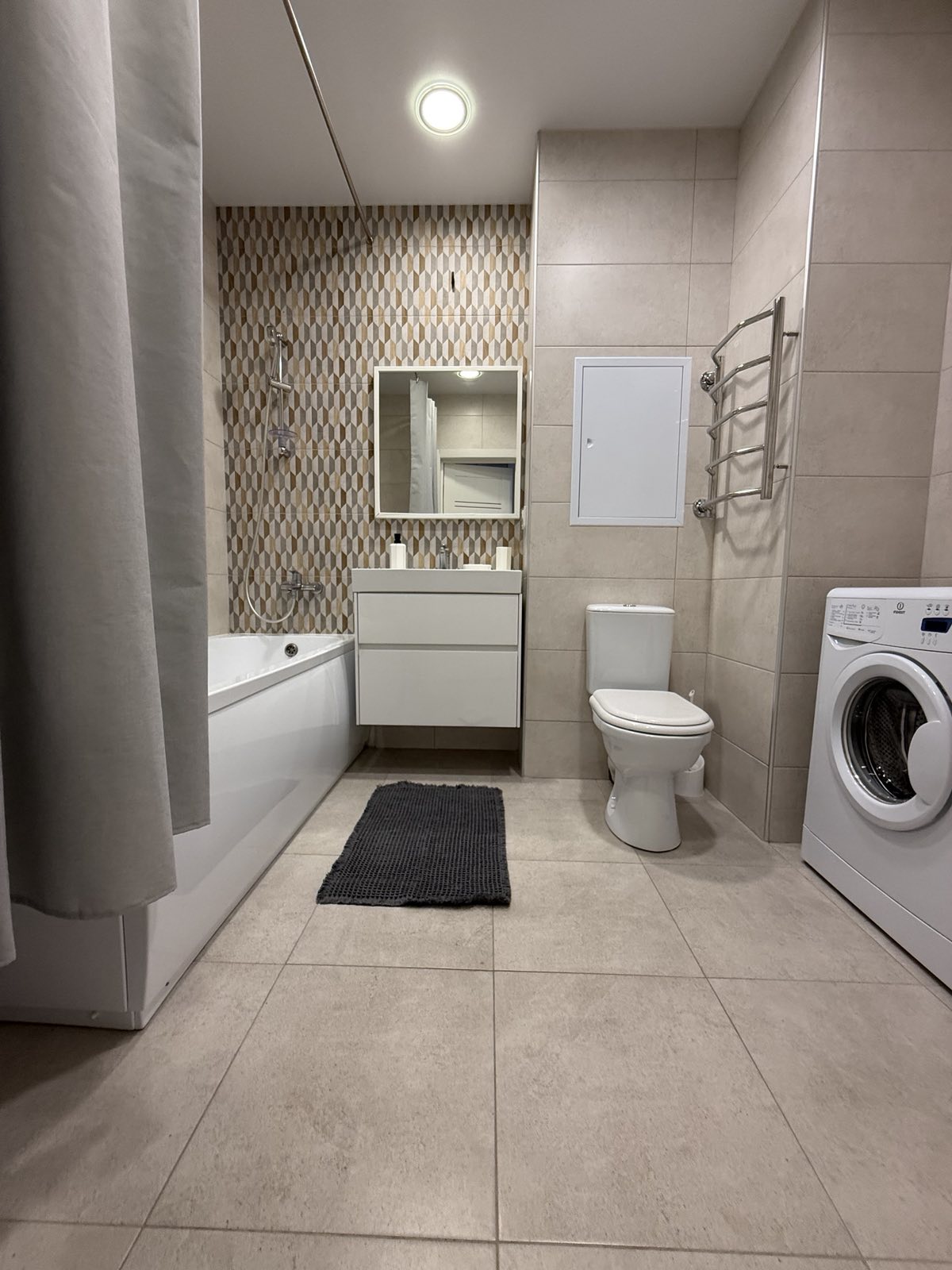 Имеется все необходимое для проживания: Wi-Fi, TV, ПММ стиральная машина, СВЧ, фен, утюг, посуда.