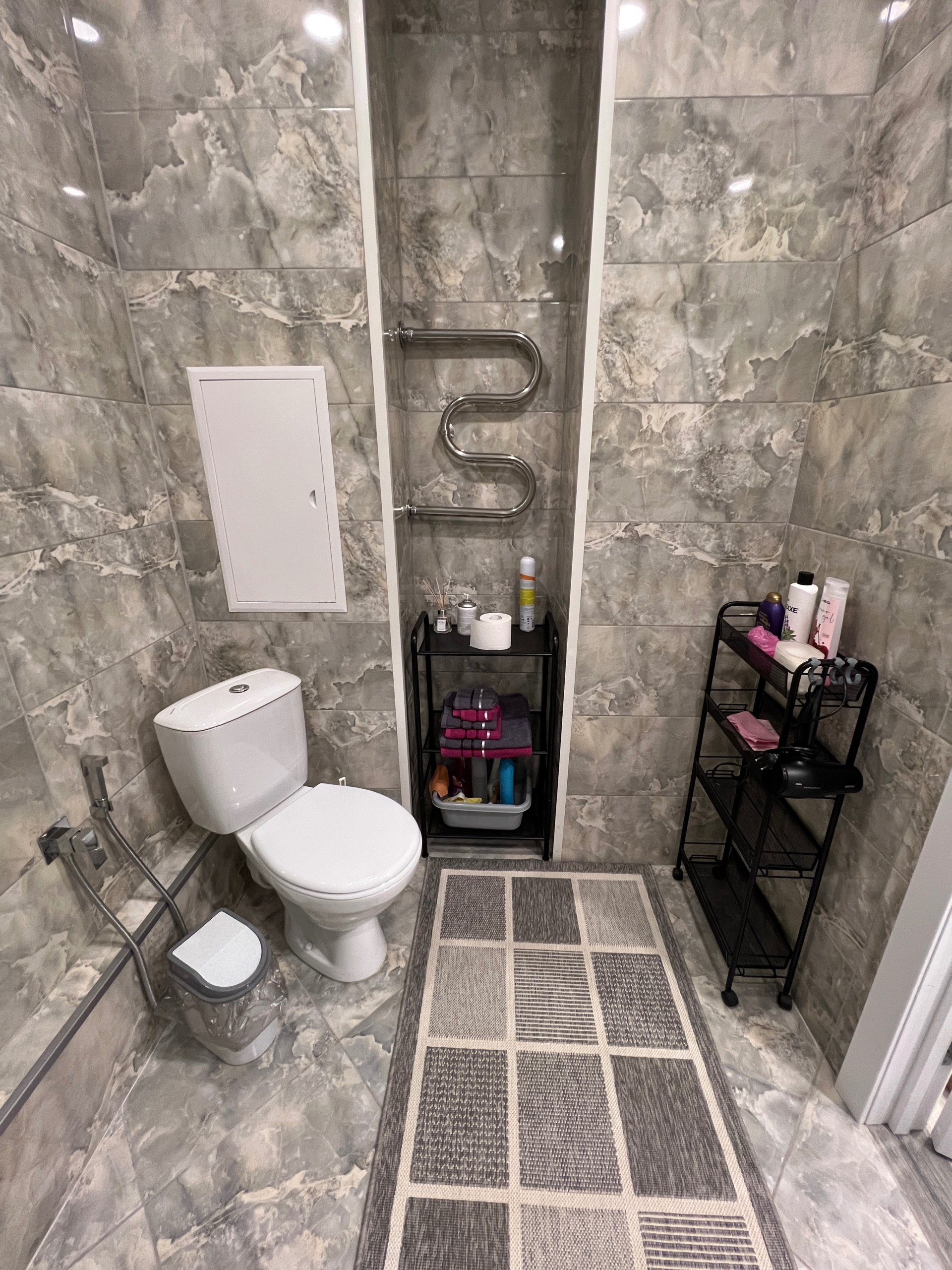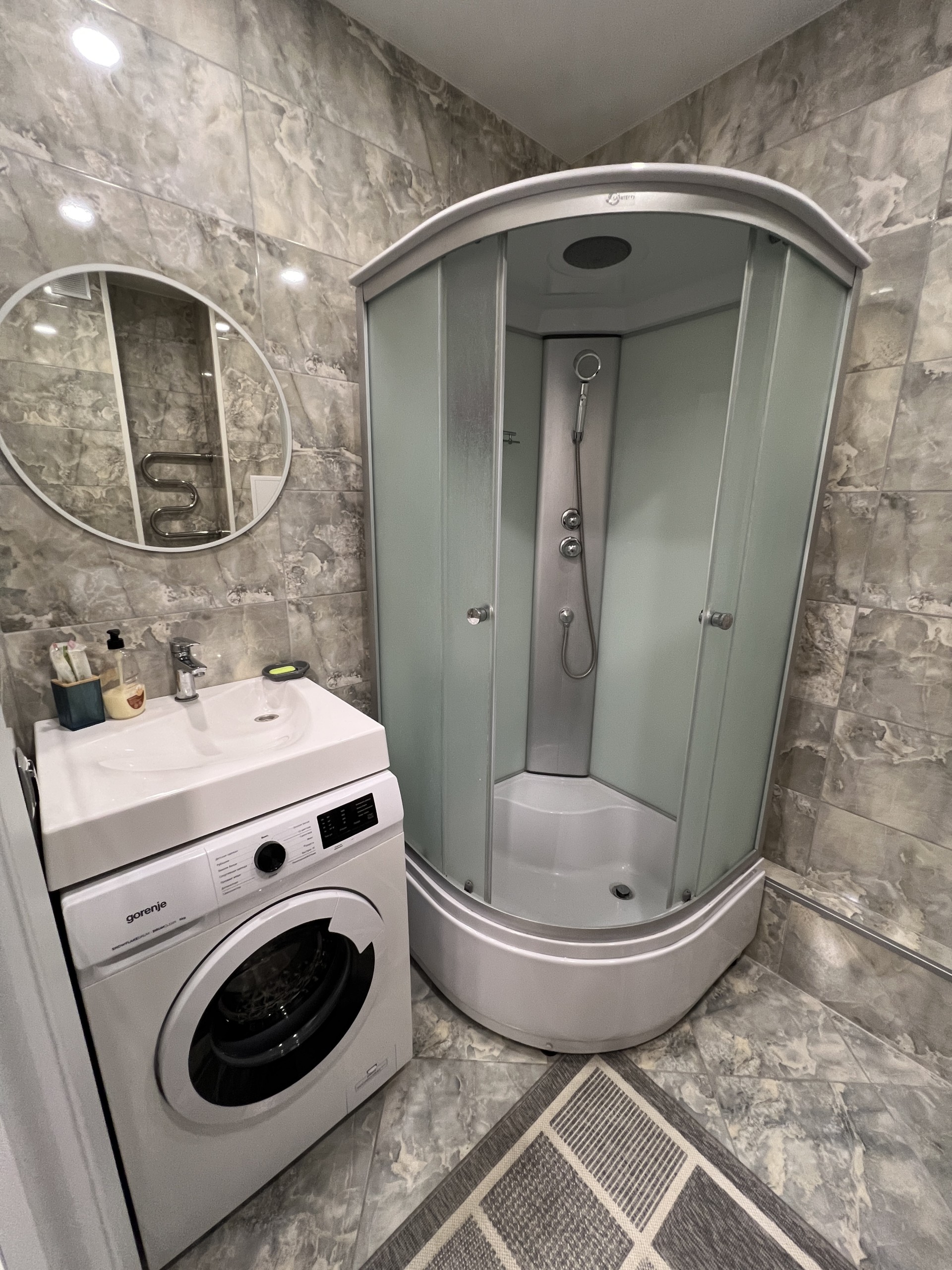 ванная с шампунями, гелями, одноразовыми зубными щетками, феном;