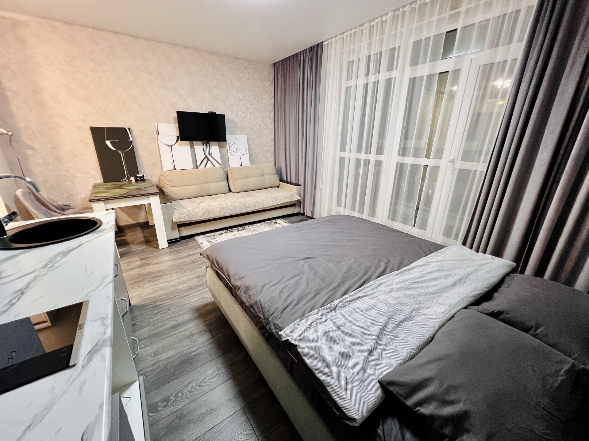 двуспальная кровать и раскладной диван (вместе до 4 спальных мест);