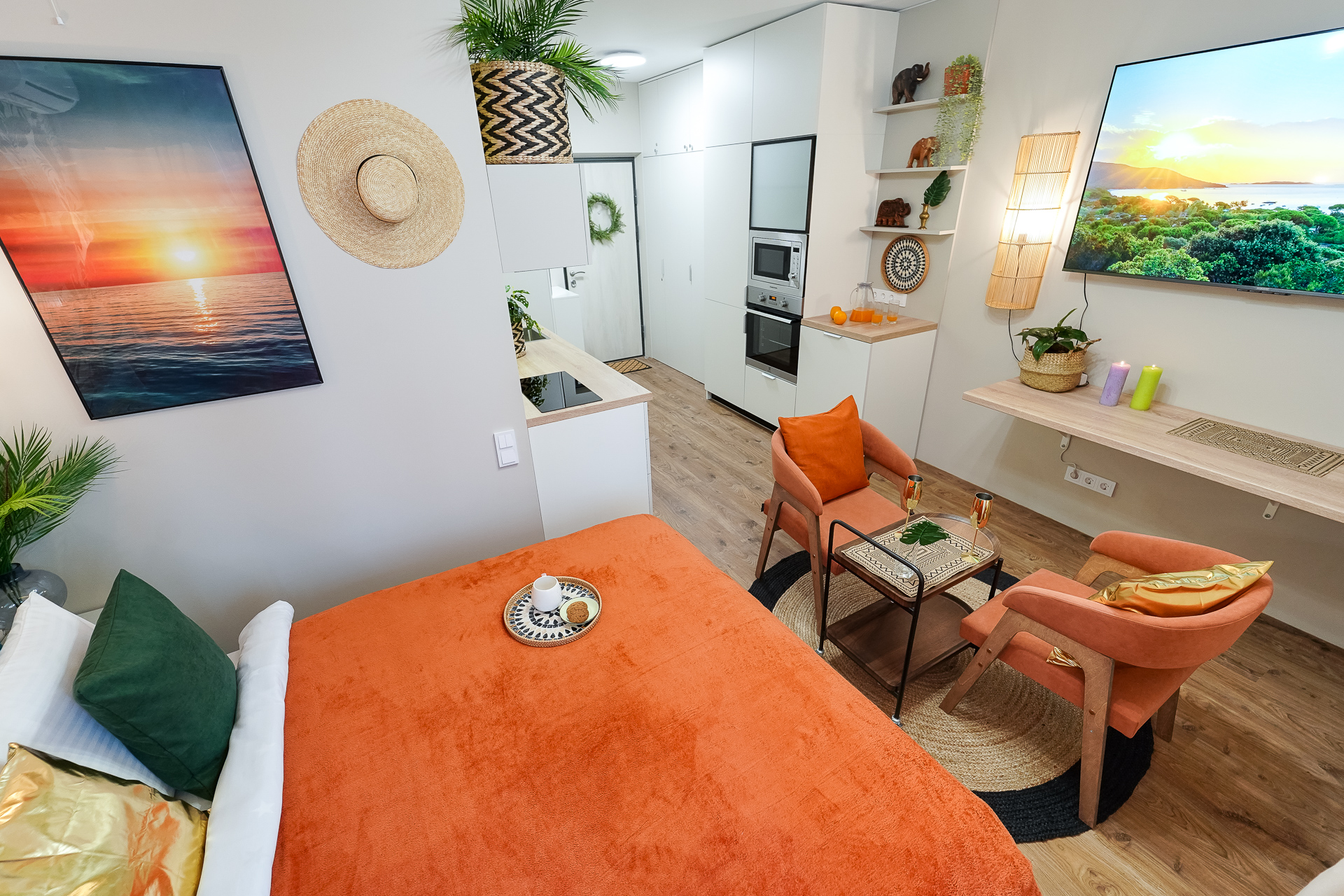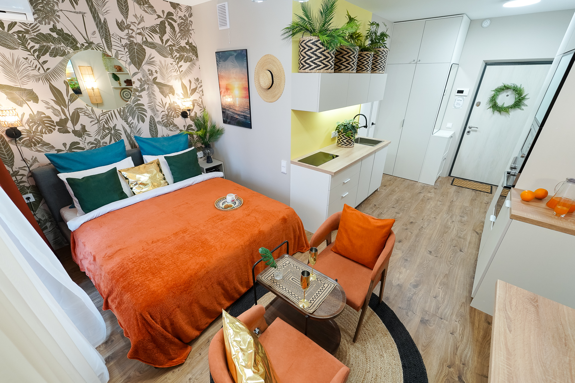 Ощутите лучший климат в Минске — вне зависимости от погоды за окном! Станьте гостем стильной Tropic Luxe Studio: новой дизайнерской квартиры-студии в центре города, где атмосфера тропиков, уют SPA и безупречный комфорт сочетаются в одном пространстве.