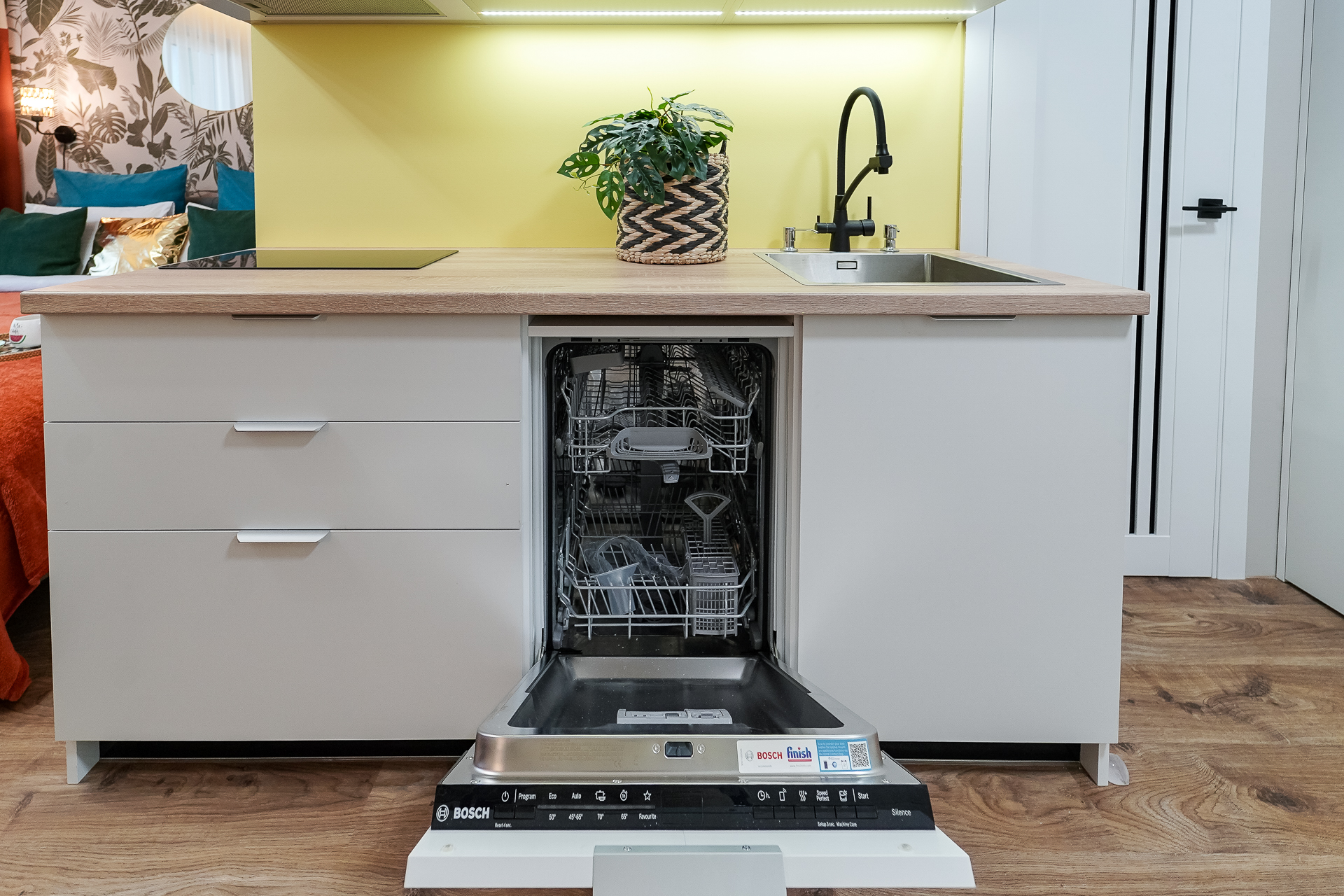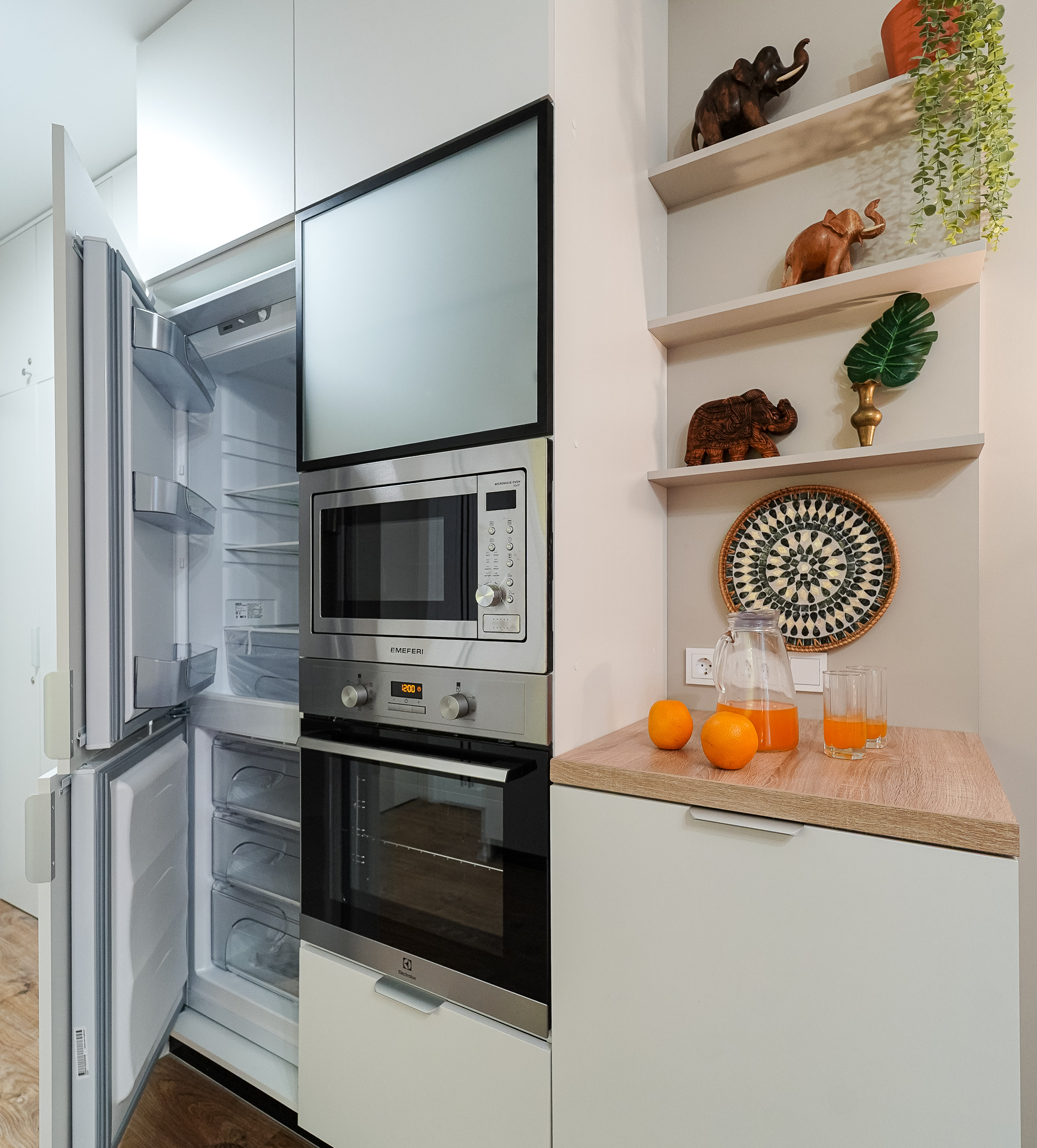 Полностью оборудованная кухня: духовка, посудомоечная машина, большой холодильник, фильтр для воды