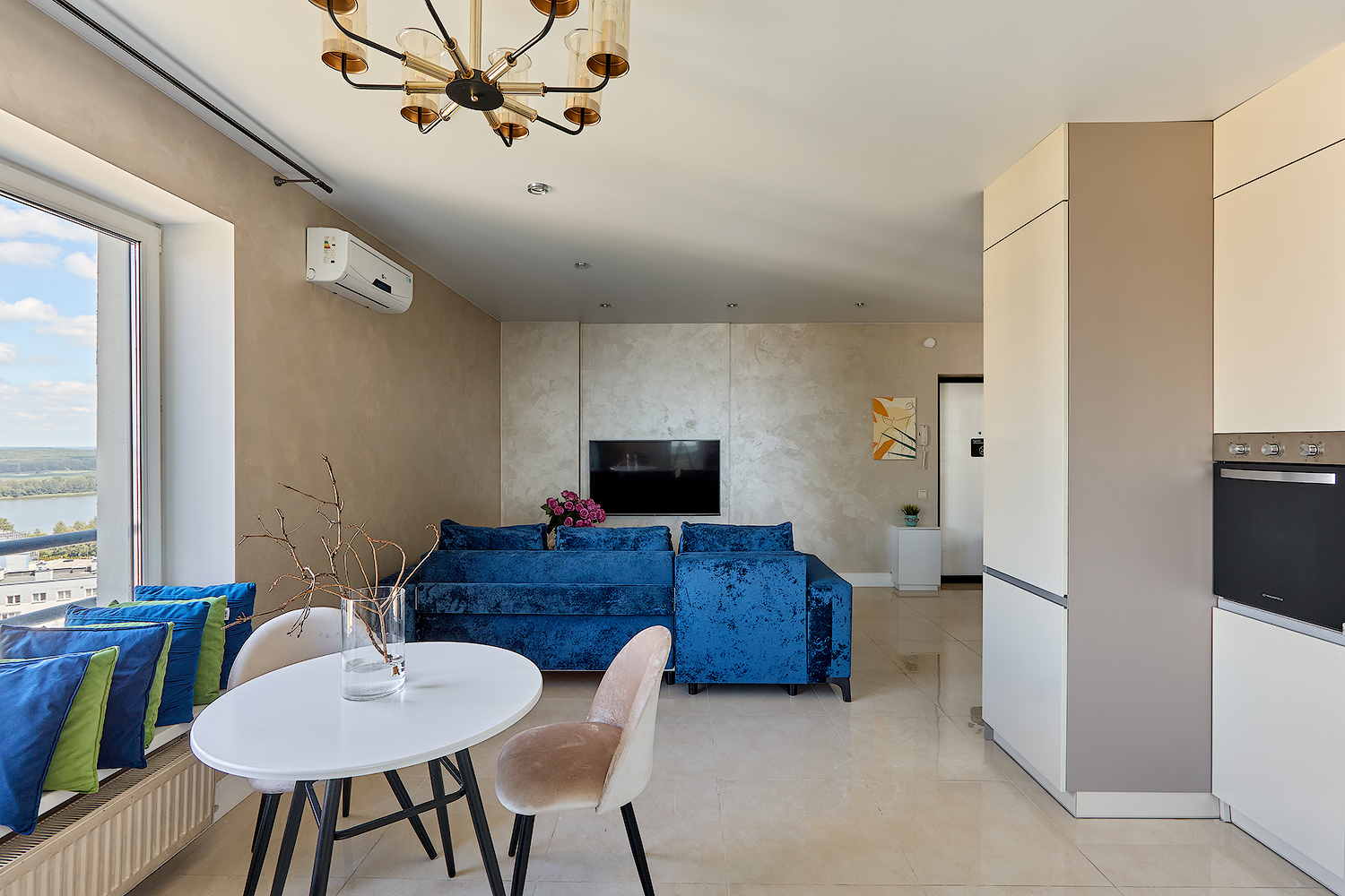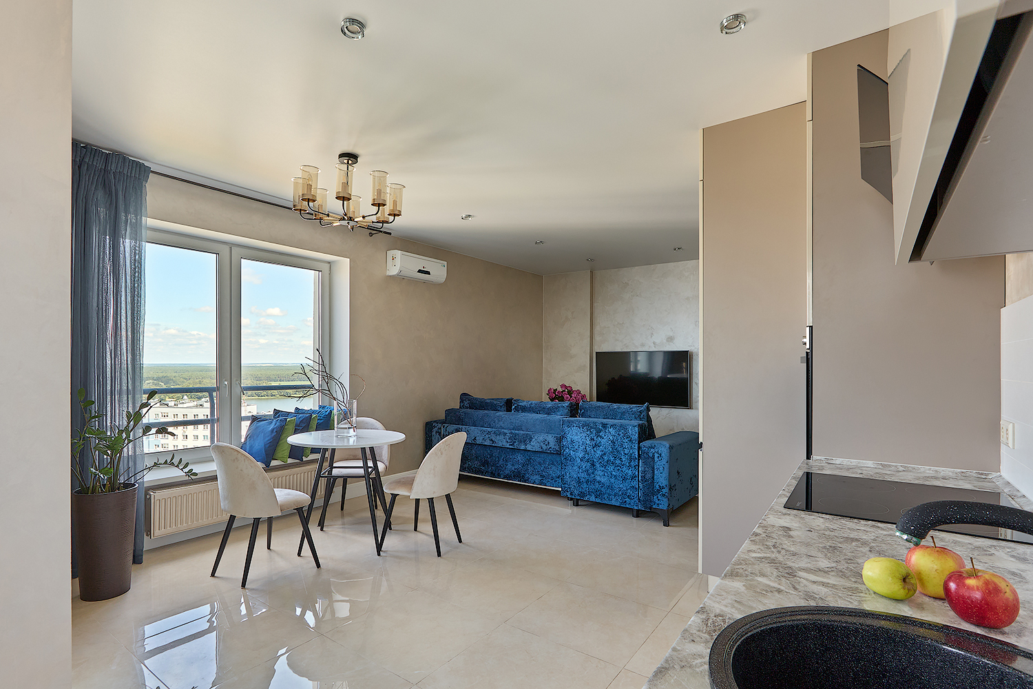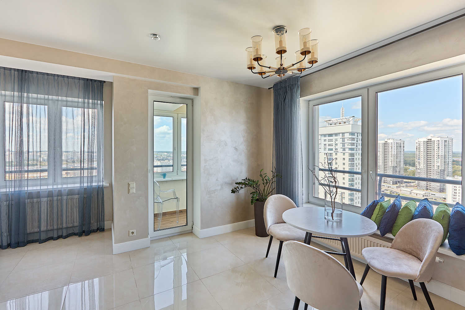 Дизайнерская VIP-квартира с незабываемым видом на проспект Победителей и водохранилище Дрозды позволит вам насладиться природой, находясь в самом престижном районе Минска.