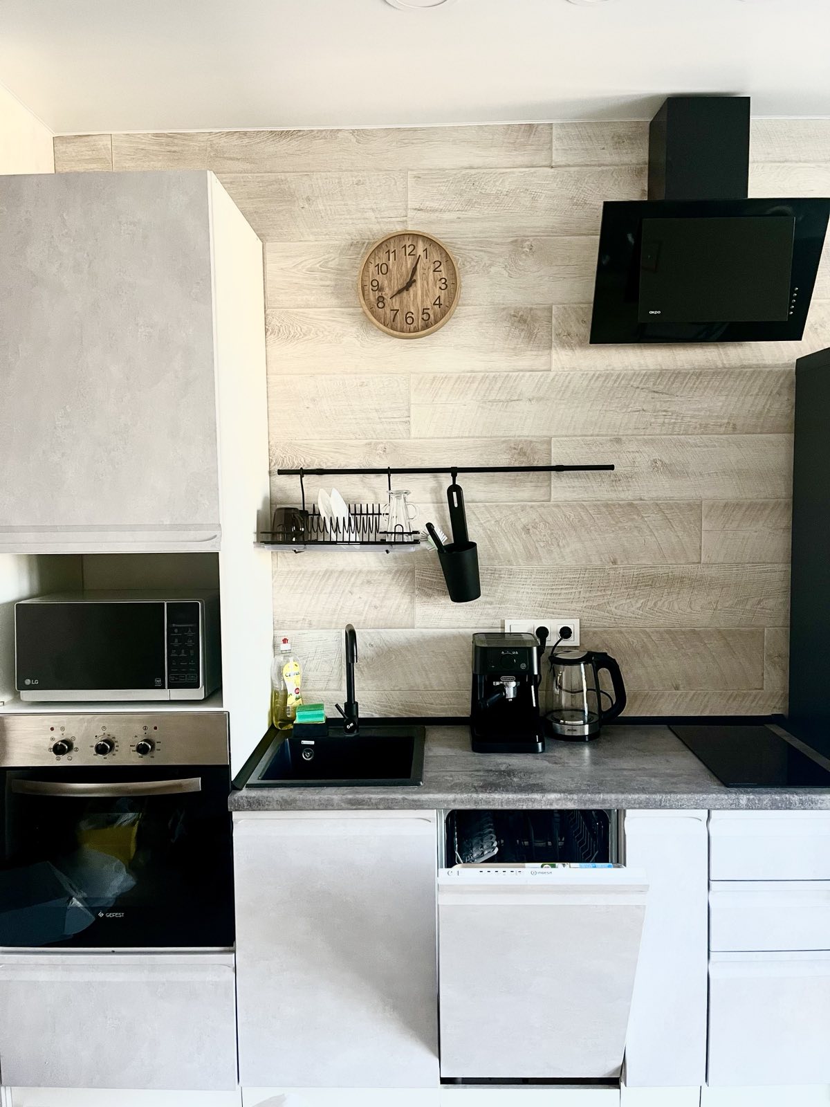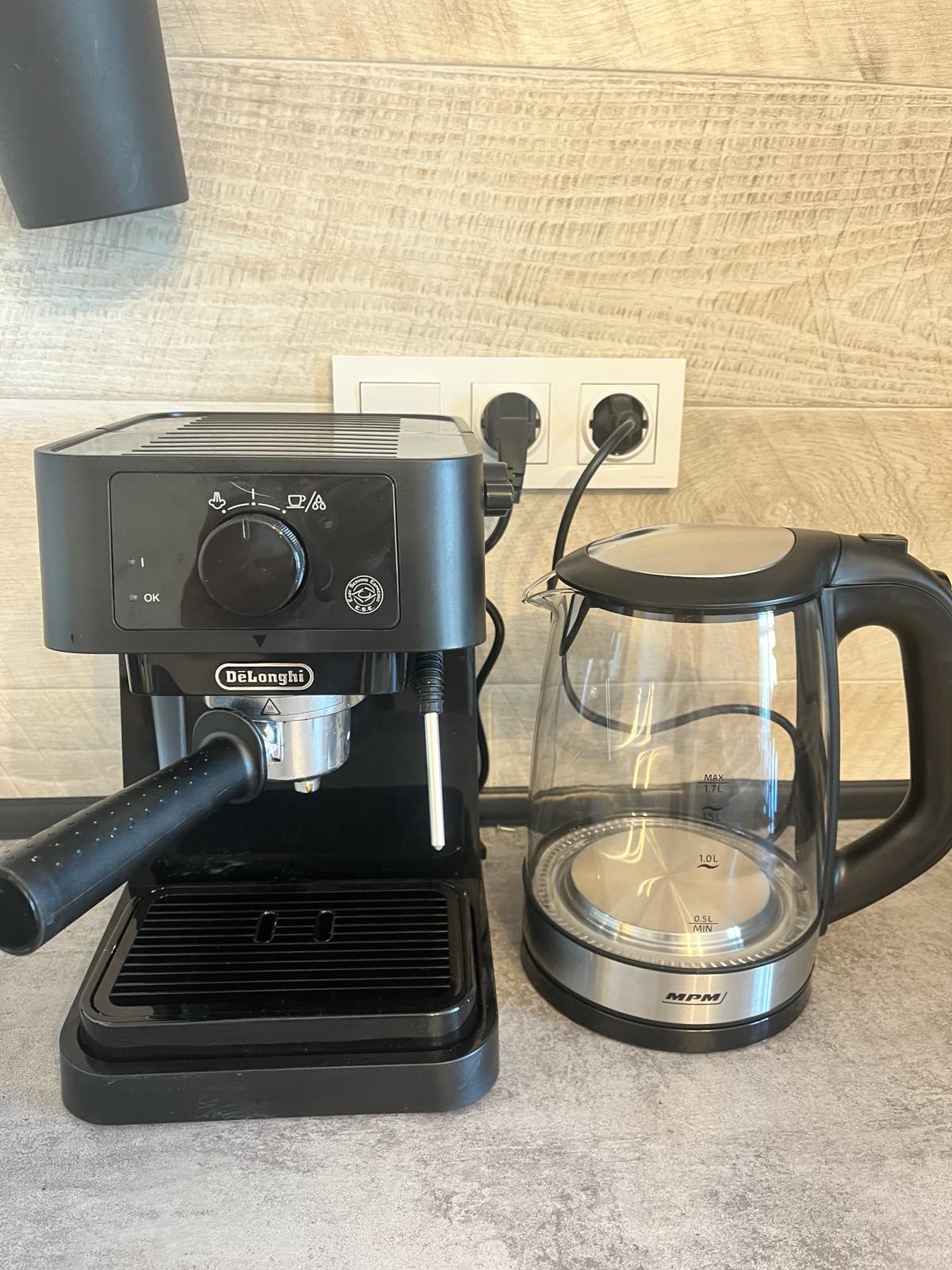 Вся необходимая бытовая техника, в том числе кофемашина.
