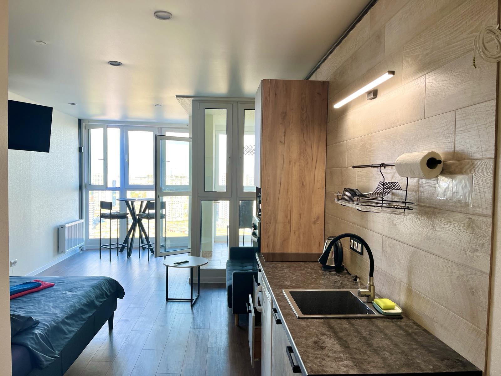 НАСЛАДИТЕСЬ ПРЕКРАСНЫМ ВИДОМ С ВЫСОТЫ 23 ЭТАЖА ЗА ЧАШЕЧКОЙ АРОМАТНОГО КОФЕ. НАЧНИТЕ ОТДЫХ УЖЕ В САМОМ НАЧАЛЕ, ПОДНИМАЯСЬ В КВАРТИРУ В ЛИФТЕ С ПАНОРАМНЫМ ОБЗОРОМ.