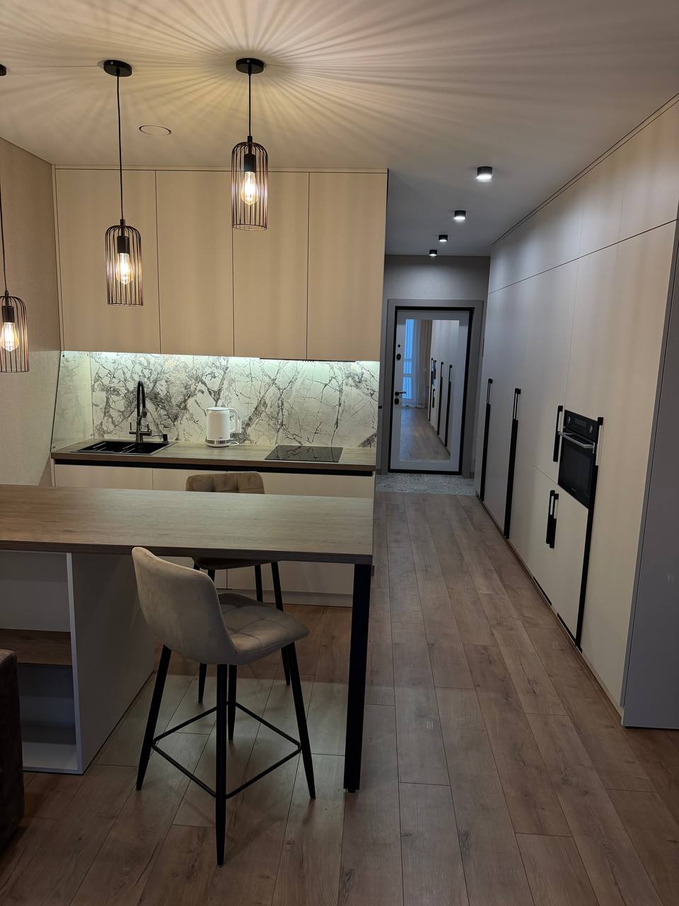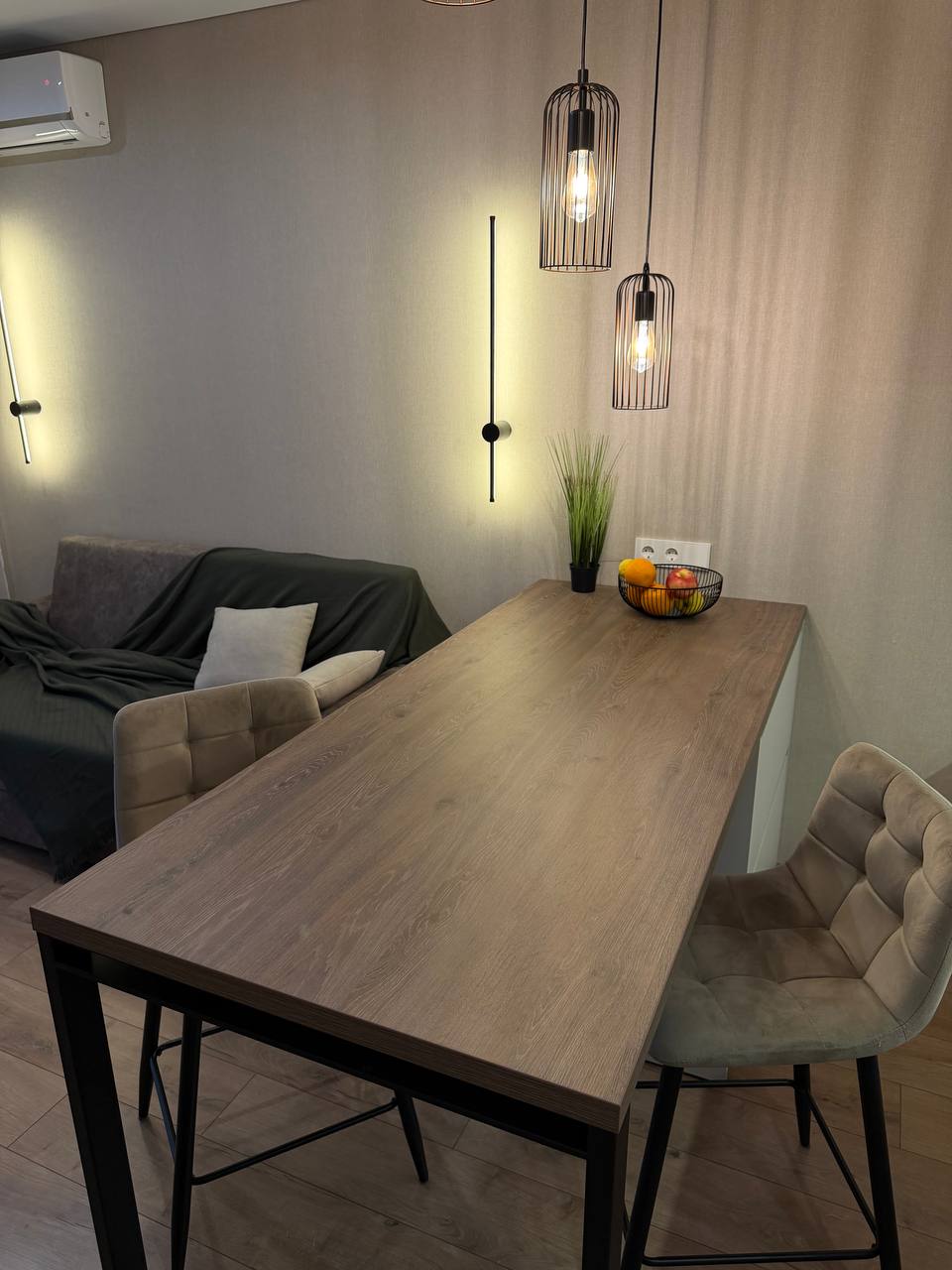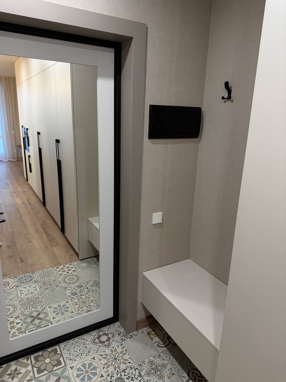 В квартире сделан функциональный дизайнерский ремонт, направленный именно на удовлетворение потребностей гостей при посуточной аренде: бесконтактное заселение (для постоянных клиентов), продуманный дизайн, вместительный шкаф, удобный диван-кровать, кондиционер, смарт tv, скоростной интернет, тропический душ, гигиенический душ,душевая и туалетная комната оборудована сантехникой премиум класса, вся необходимая столовая и кухонная посуда, бытовая техника для приготовления и разогрева пищи. Полотенца,мыло, шампунь, гель для душа, зубная щетка с пастой, все гигиенические принадлежности в индивидуальной упаковке. Фен, утюг,стиральная машина.