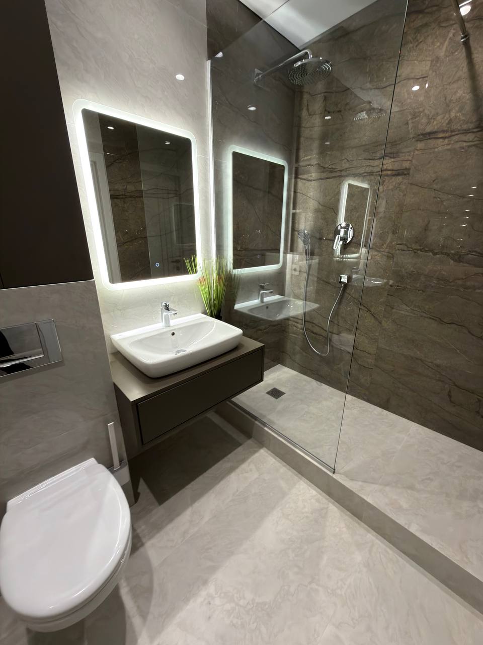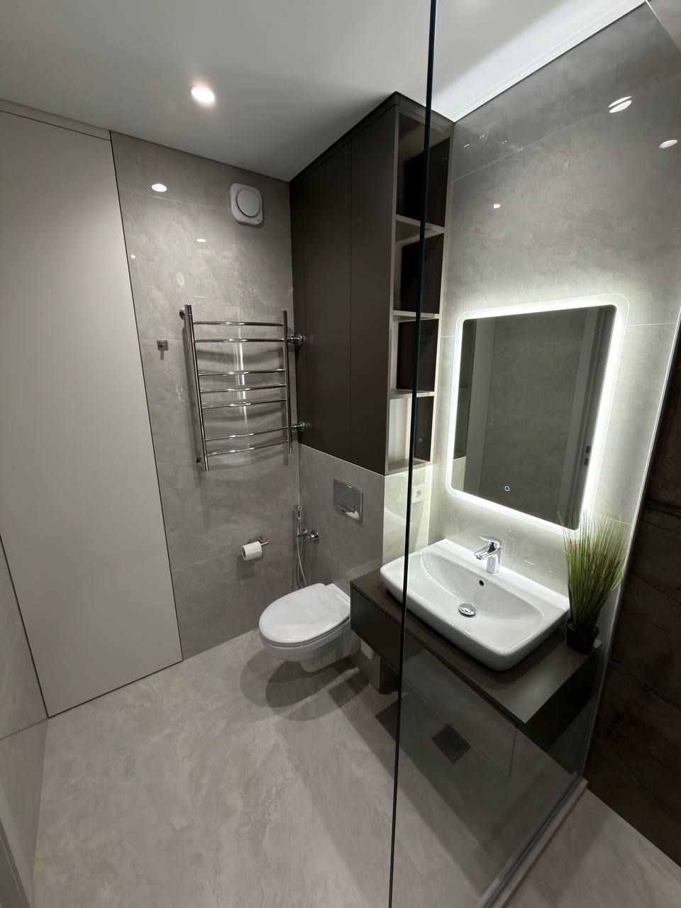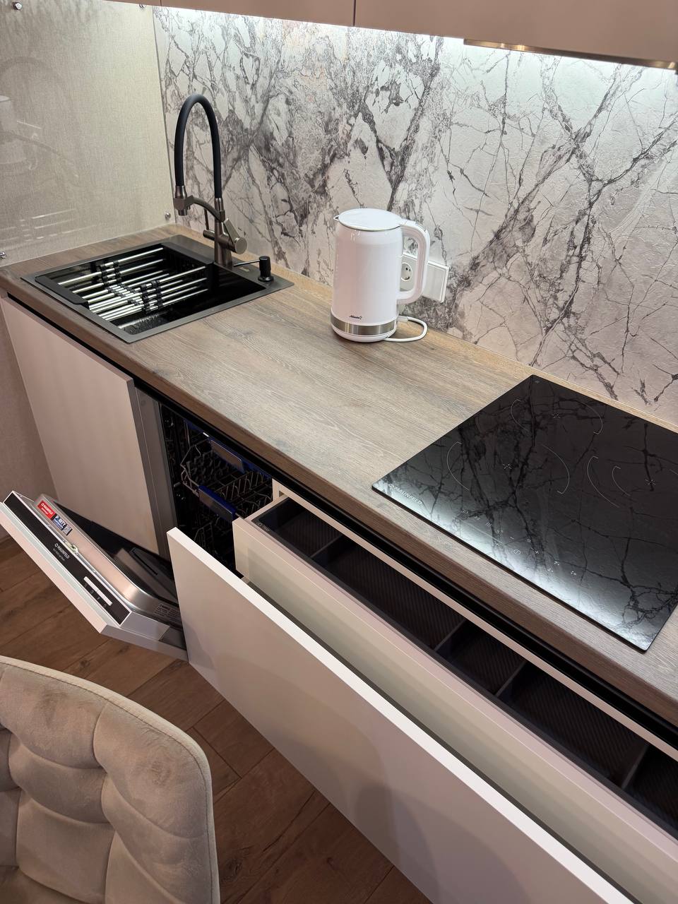 В квартире сделан функциональный дизайнерский ремонт, направленный именно на удовлетворение потребностей гостей при посуточной аренде: бесконтактное заселение (для постоянных клиентов), продуманный дизайн, вместительный шкаф, удобный диван-кровать, кондиционер, смарт tv, скоростной интернет, тропический душ, гигиенический душ,душевая и туалетная комната оборудована сантехникой премиум класса, вся необходимая столовая и кухонная посуда, бытовая техника для приготовления и разогрева пищи. Полотенца,мыло, шампунь, гель для душа, зубная щетка с пастой, все гигиенические принадлежности в индивидуальной упаковке. Фен, утюг,стиральная машина.