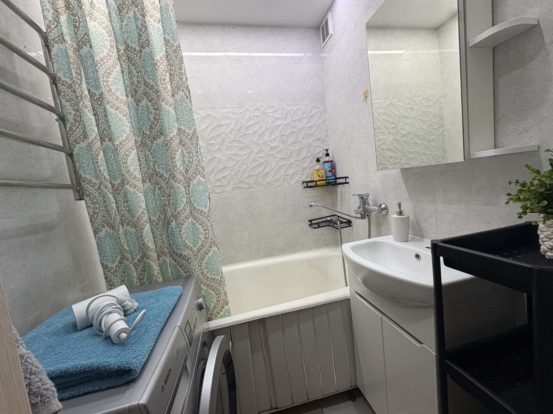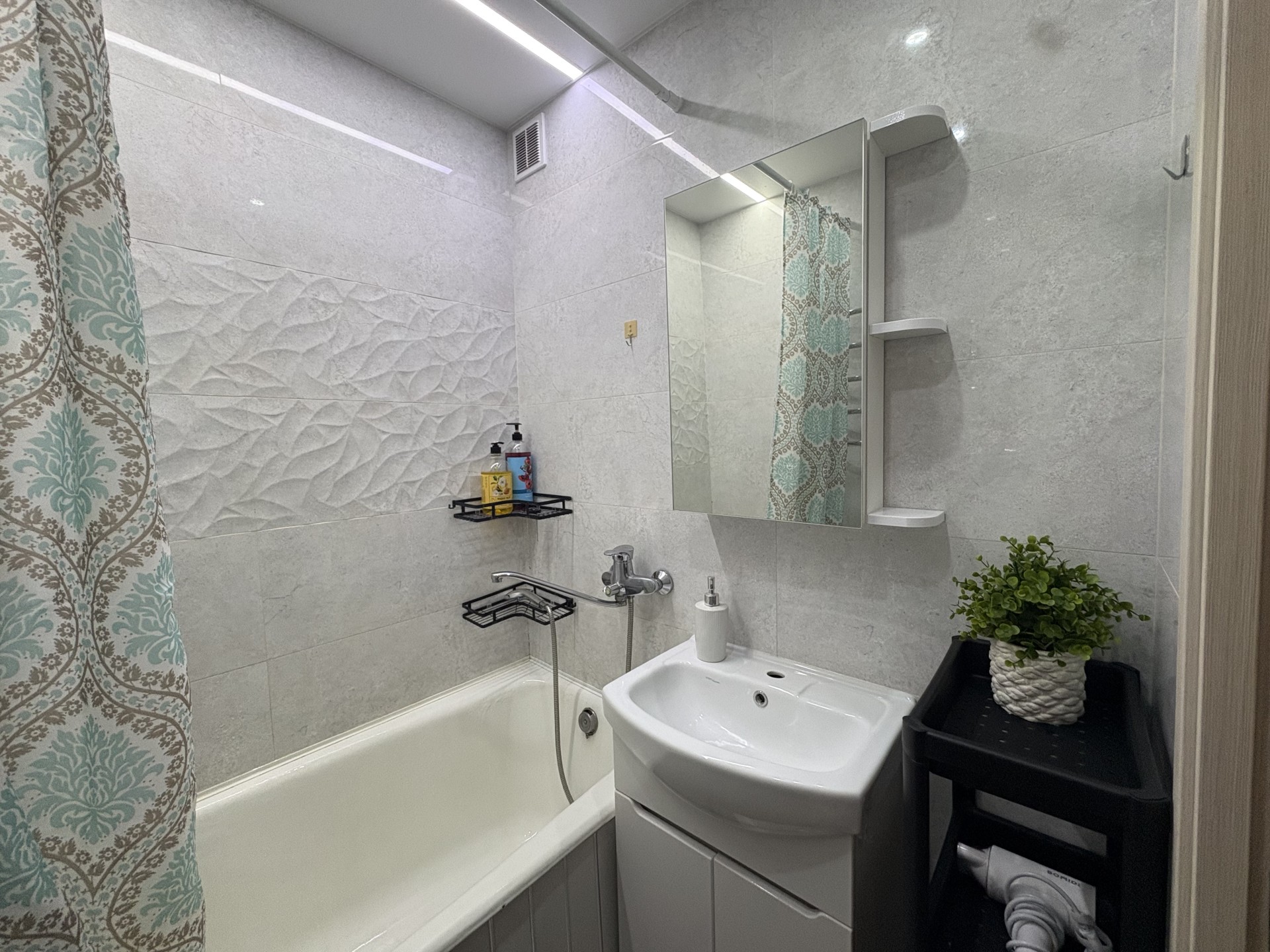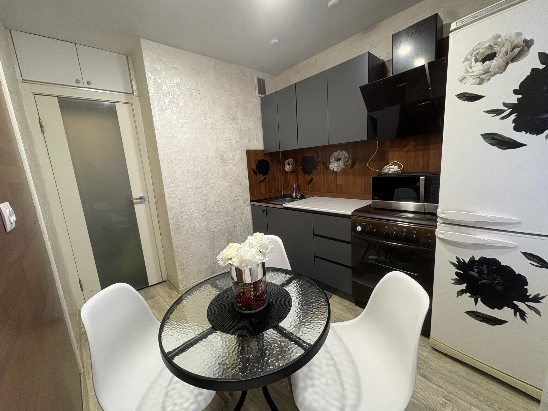 Ремонт не новый, но аккуратный, без повреждений, всё в рабочем состоянии Полностью меблирована (вся необходимая техника и мебель) чистая, светлая, комфортная