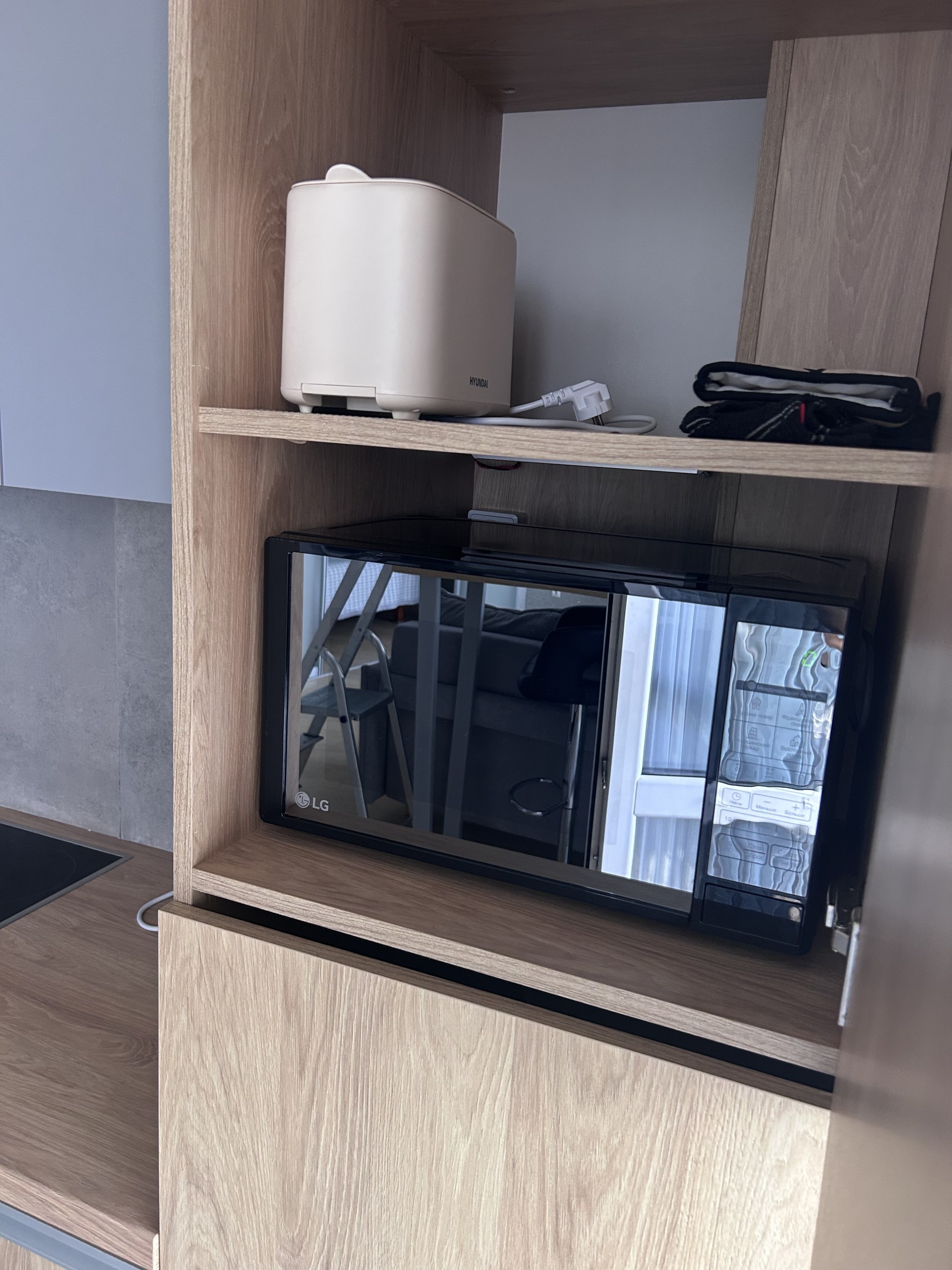 - СВЧ печь, электроплита, холодильник, тостер, электрочайник.