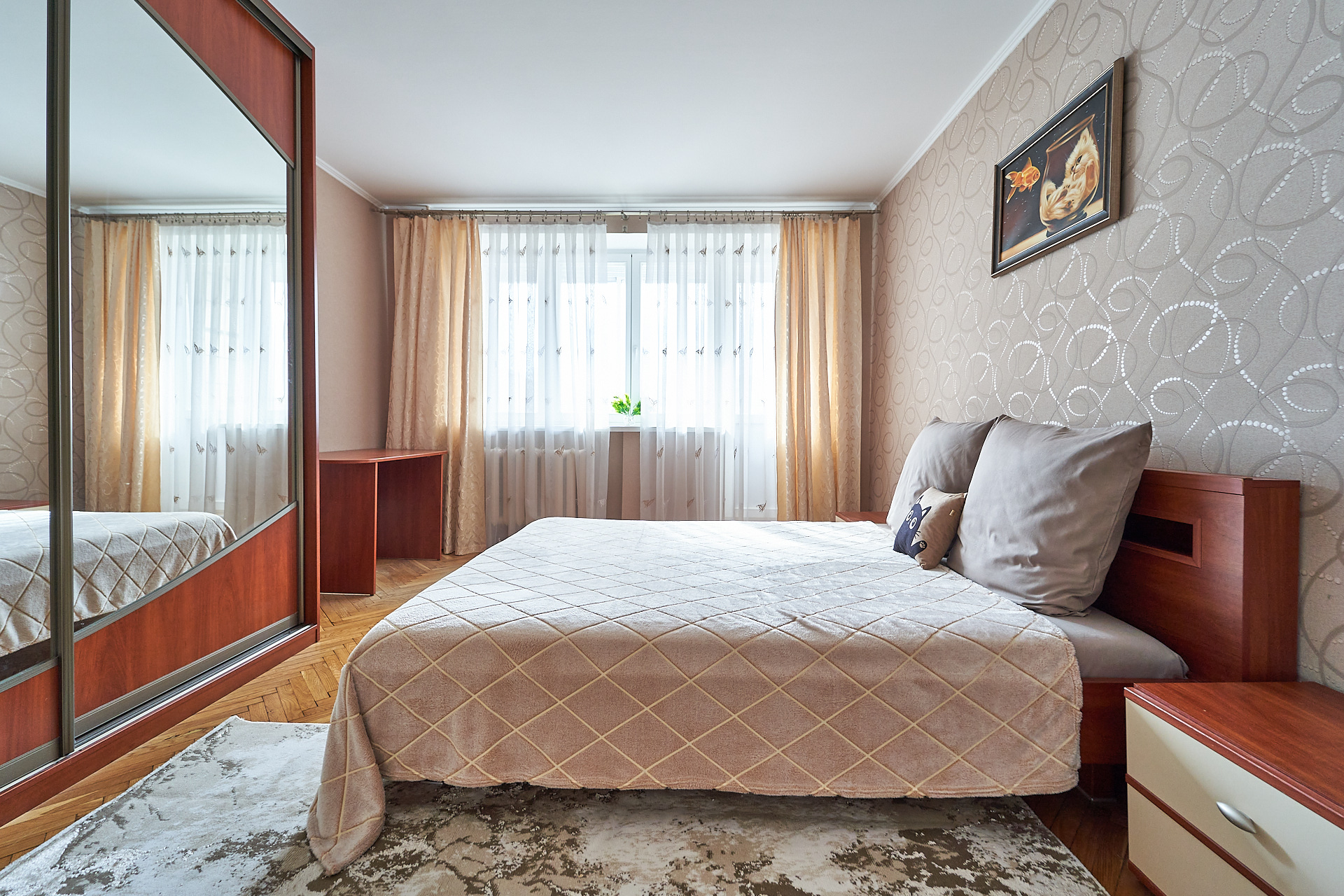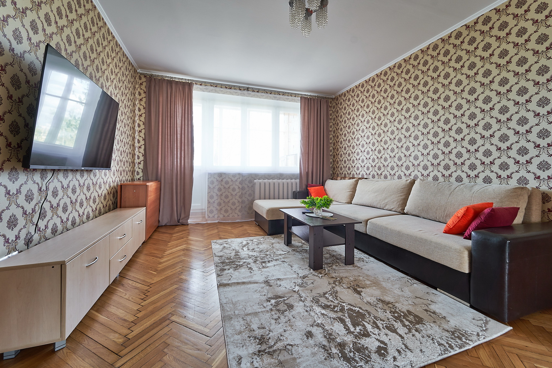 Замечательная, просторная 3-ка для семейного отдыха и деловых поездок/командировок. Отличный вариант для 1-8 гостей. Спальные места 2+2+2+2, комнаты 22, 18 и 17.5 кв.м, раздельный санузел, отдельная кухня, 2 лоджии. Есть все необходимое для проживания и даже больше. Максимальный балл в отзывах на всех сайтах. Цена зависит от количества гостей, срока проживания, сезона и дат повышенного спроса. Пожалуйста, уточняйте цену по телефону или в мессенджерах.