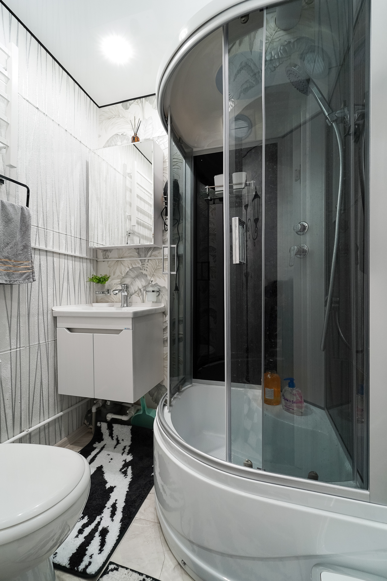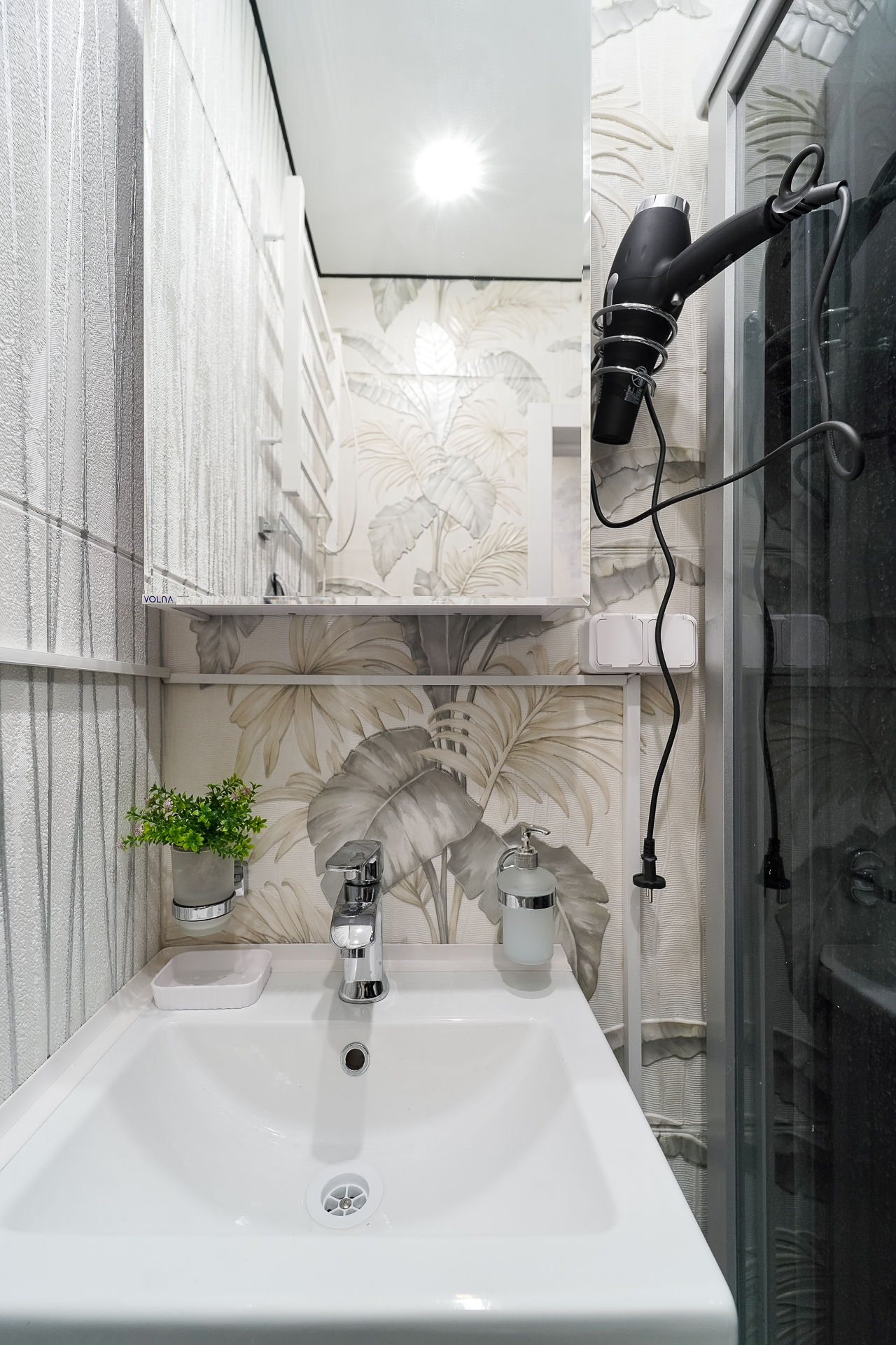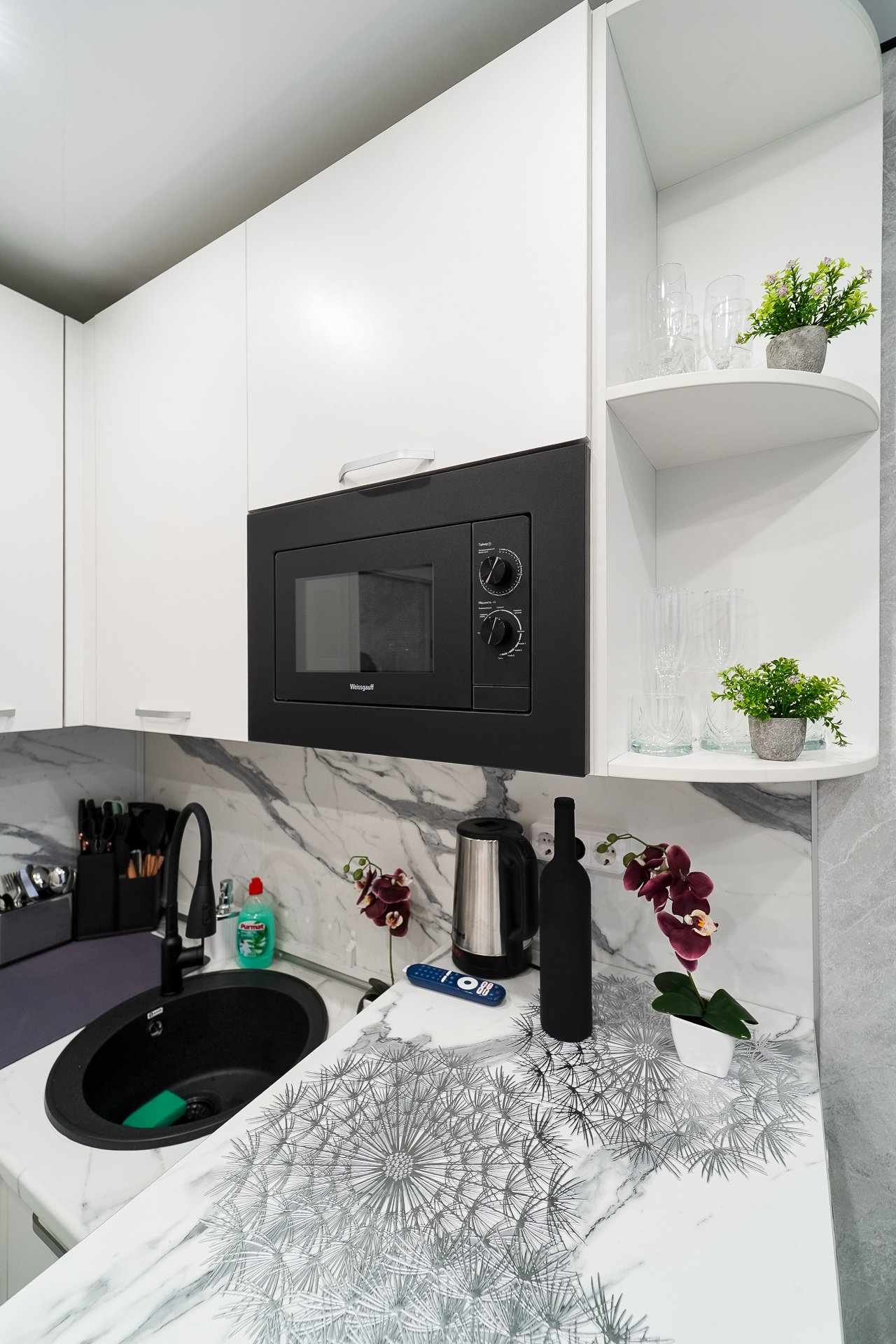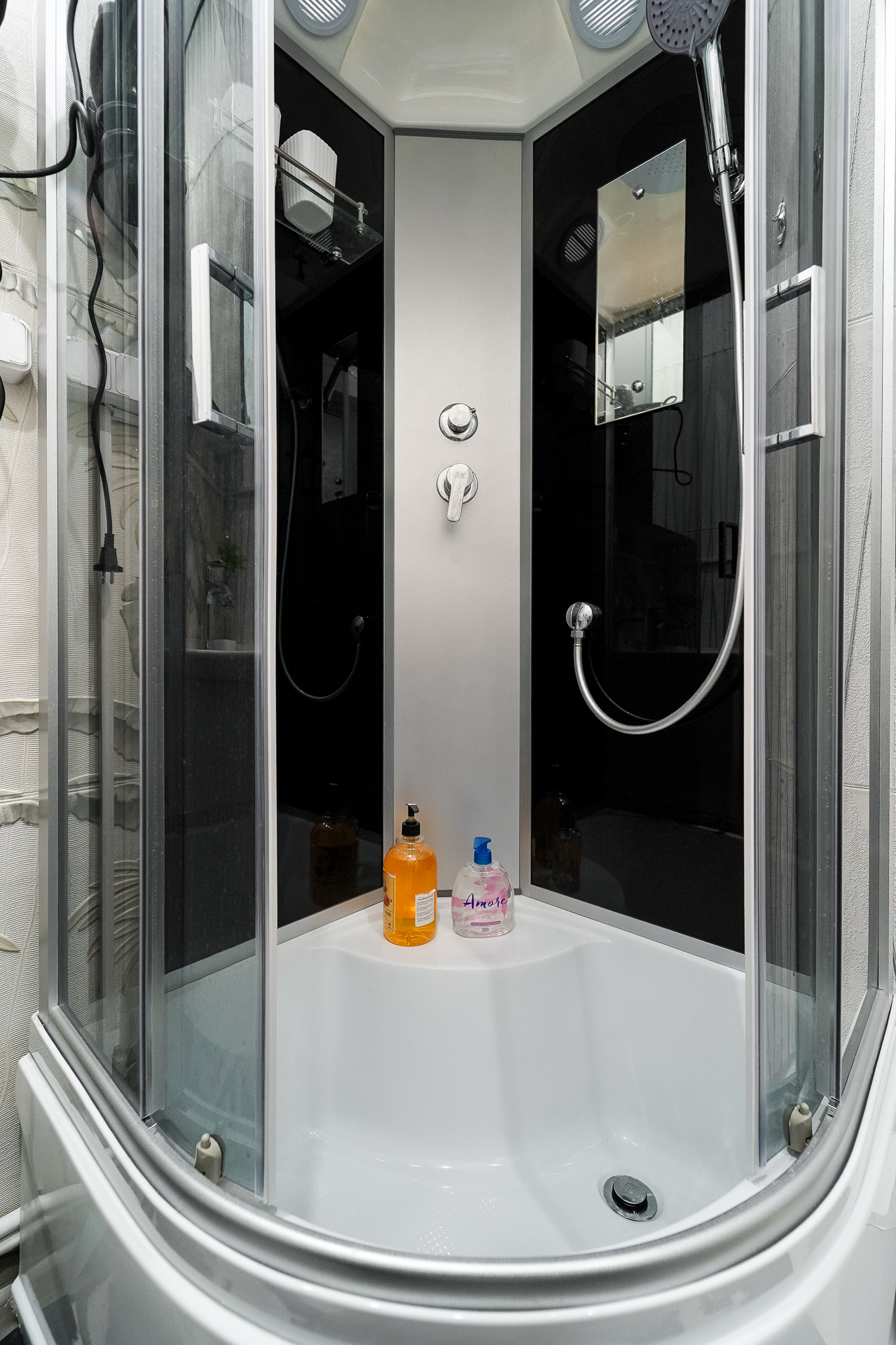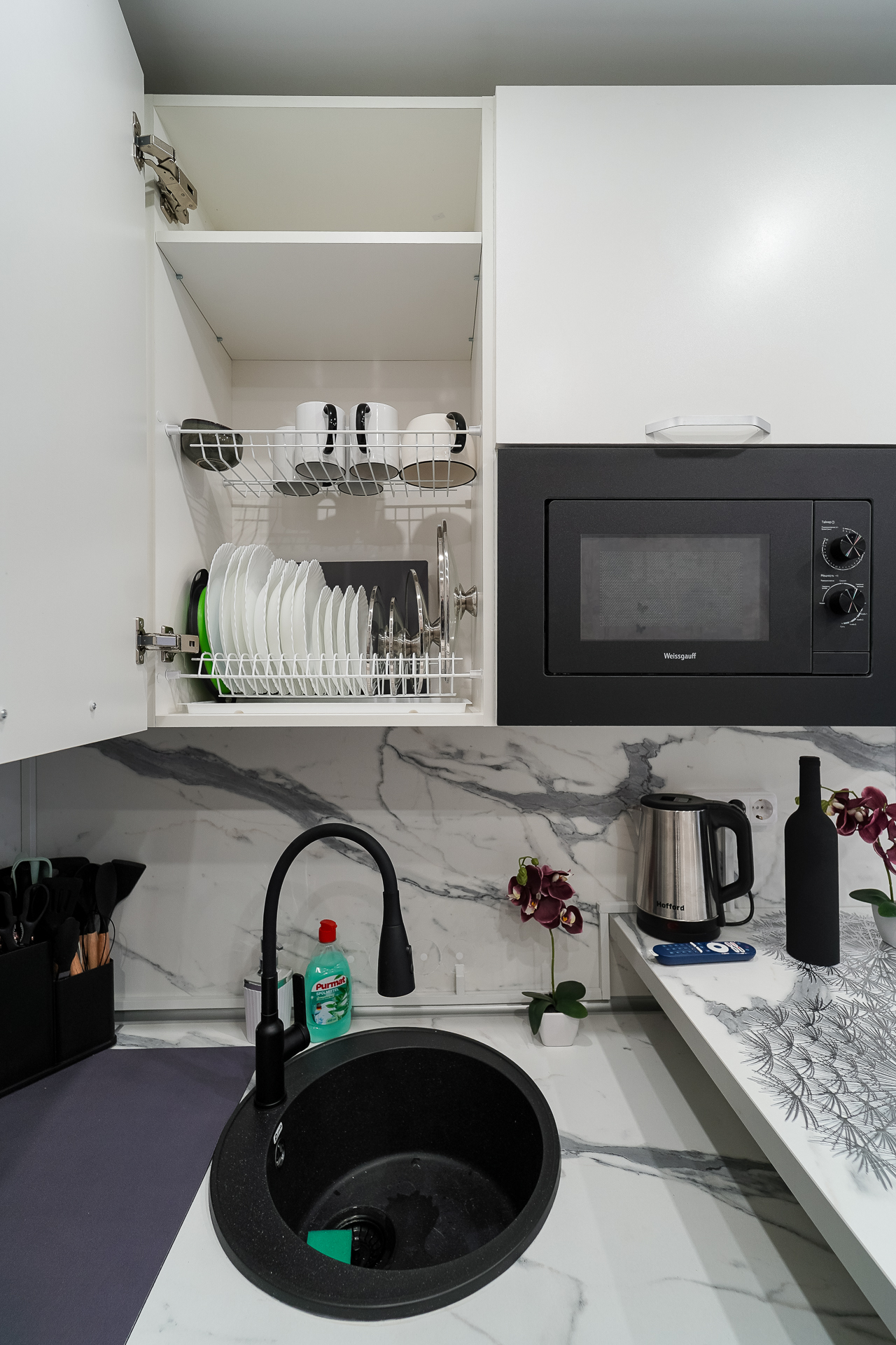 Телевизор со Smart TV, высокоскоростной бесплатный Wi-Fi, Фен, СВЧ, ТОСТЕР, стиральная машина, душевая кабина, эл. полотенцесушитель, утюг, эл. чайник, варочная панель, встроенный холодильник, набор кухонной посуды + бокалы, фужеры, стаканы. Гель и ополаскиватель для стирки, средства гигиены. Халаты + тапочки (по запросу, доп. оплата).