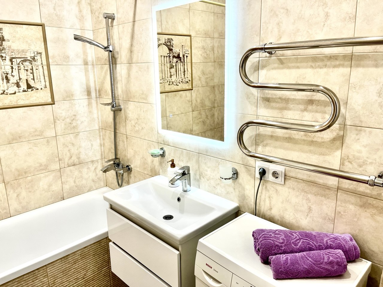Беспроводной интернет Wi-Fi, Телевизор, Полотенца, Кабельное/спутниковое телевидение, Постельное бельё, Мыло, Туалетная бумага, Стиральная машина, Кофе, чай, Утюг, Фен, Шампунь, Лифт, Застеклённый балкон/лоджия, Ванна, Автономный подогрев воды (бойлер/колонка), Охраняемая парковка поблизости, Холодильник, Микроволновая печь, Посуда