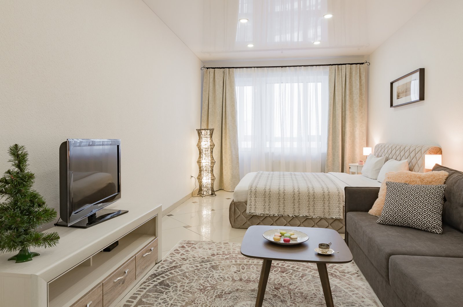 ✓ Квартира площадью 45 м кв. с кондиционером , панорамным окном в пол, большая лоджия, полностью оборудована современной техникой лучших мировых производителей. смарт ТВ, духовка , микроволновка, стиральная машина , холодильник , фильтр воды, Высокоскоростной интернет.