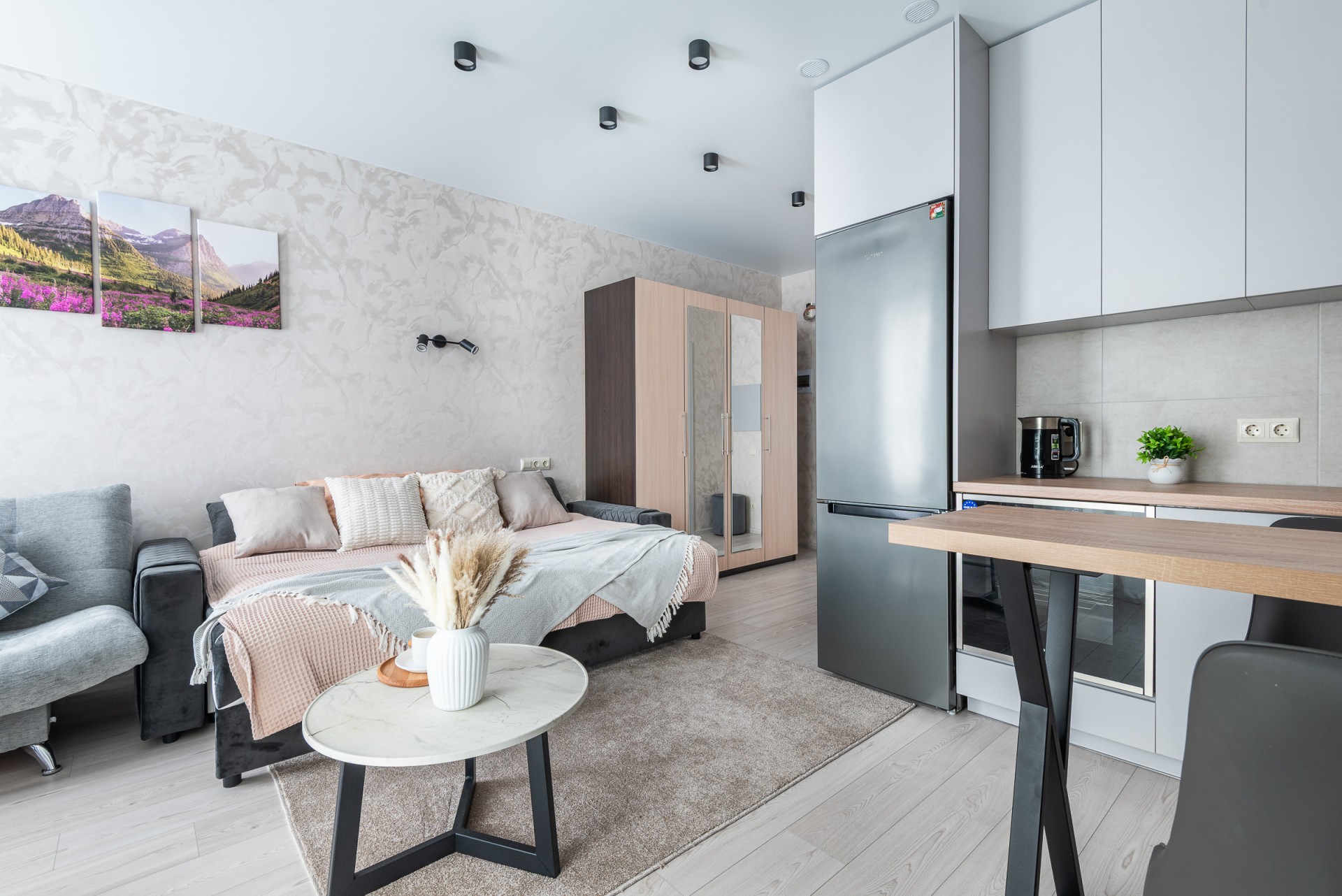 Новая просторная квартира-студия 35 м2. Ждёт гостей на кофе.