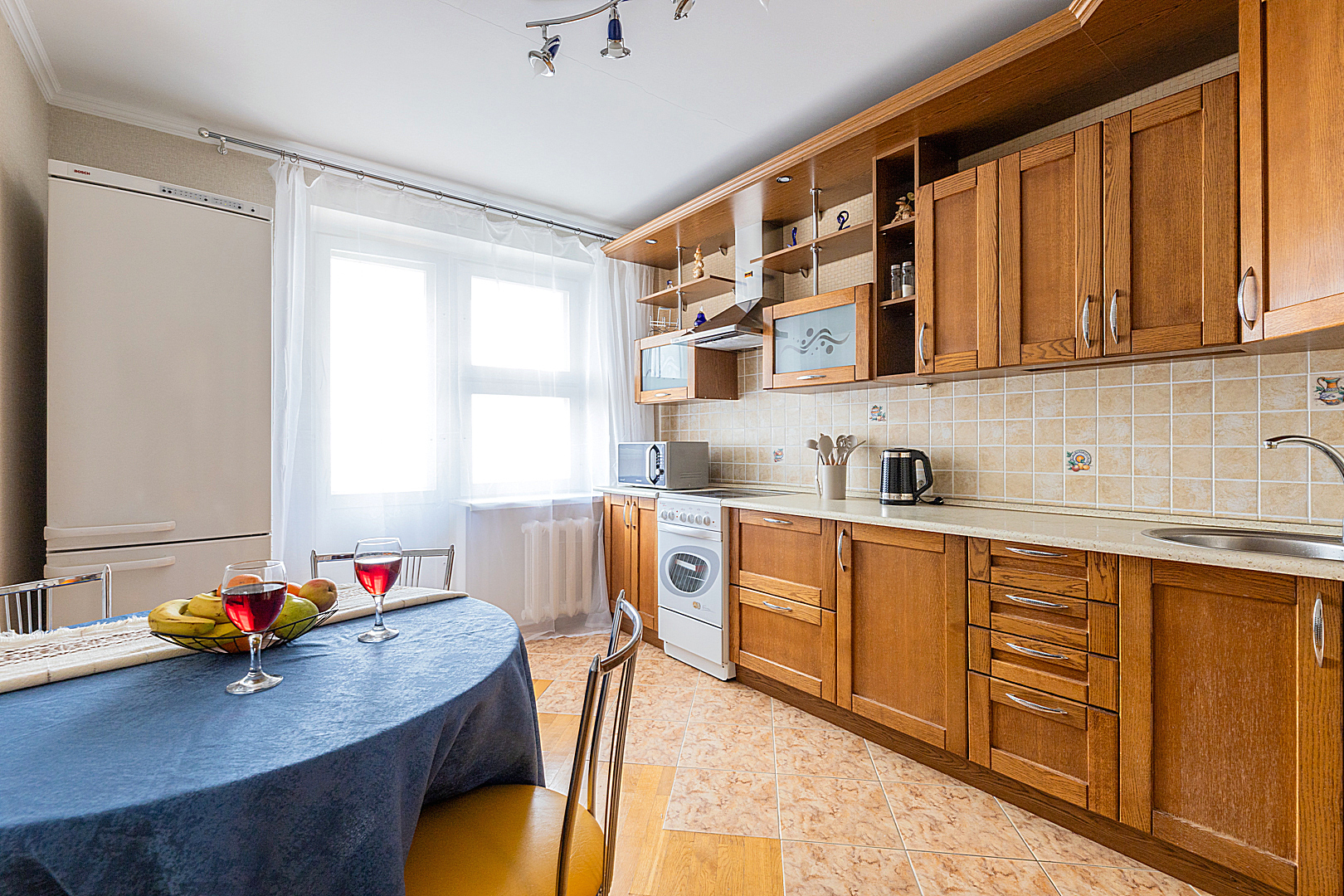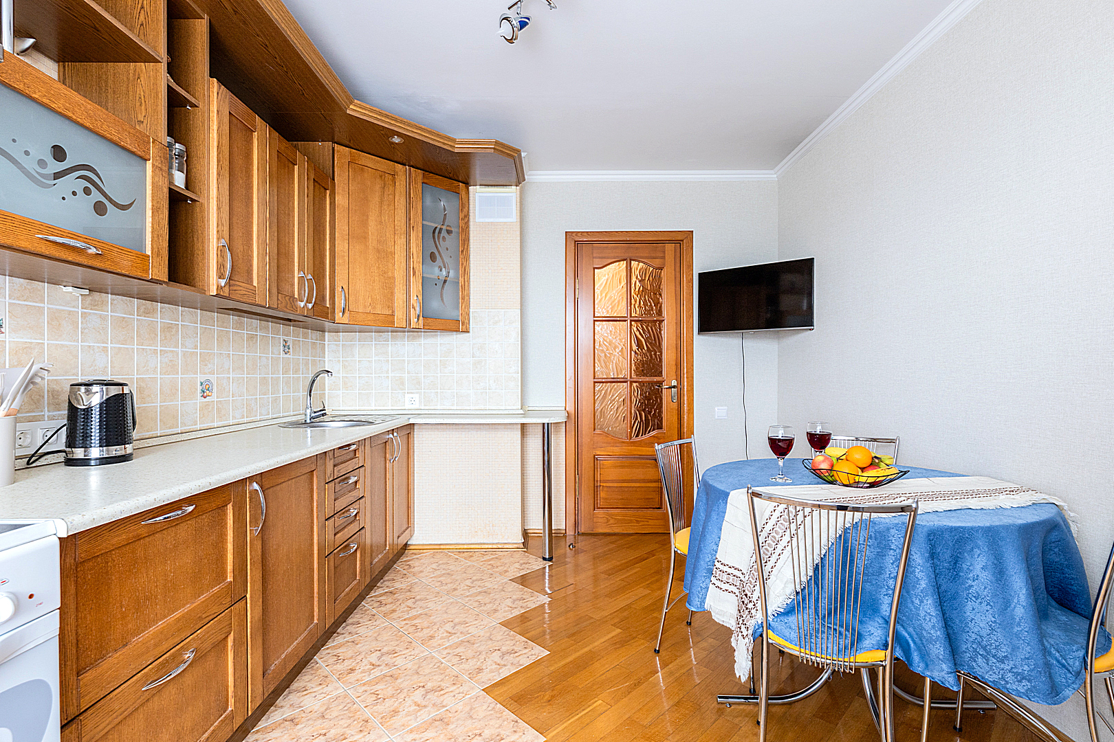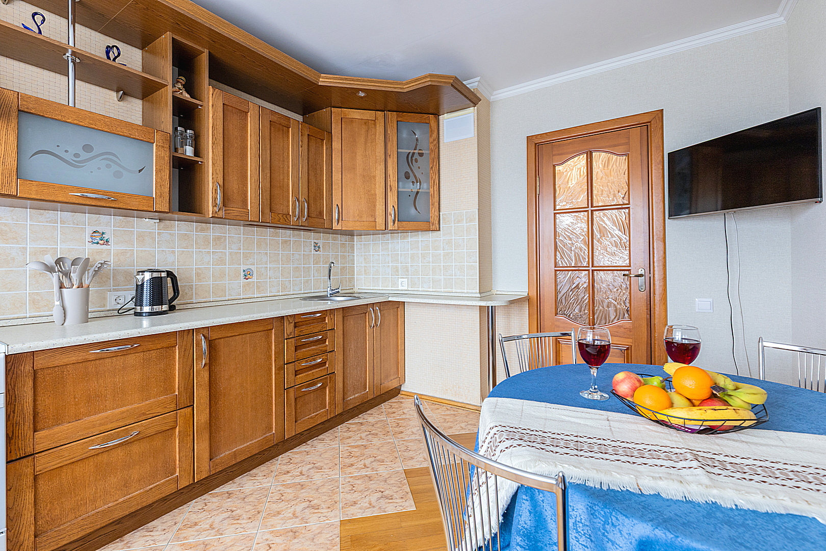 Беспроводной интернет Wi-Fi, Телевизор, Домофон, Полотенца, Кабельное/спутниковое телевидение, Постельное бельё, Мыло, Туалетная бумага, Стиральная машина, Кофе, чай, Утюг, Фен, Шампунь, Лифт, Застеклённый балкон/лоджия, Ванна, Автономный подогрев воды (бойлер/колонка), Холодильник, Микроволновая печь, Посуда