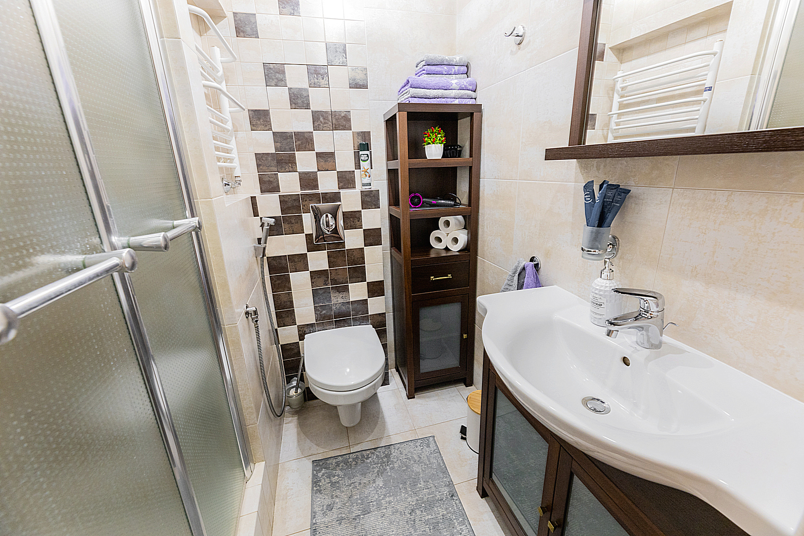 В квартире два сан. узла, в одном предусмотрена ванна, во втором душ-кабина.