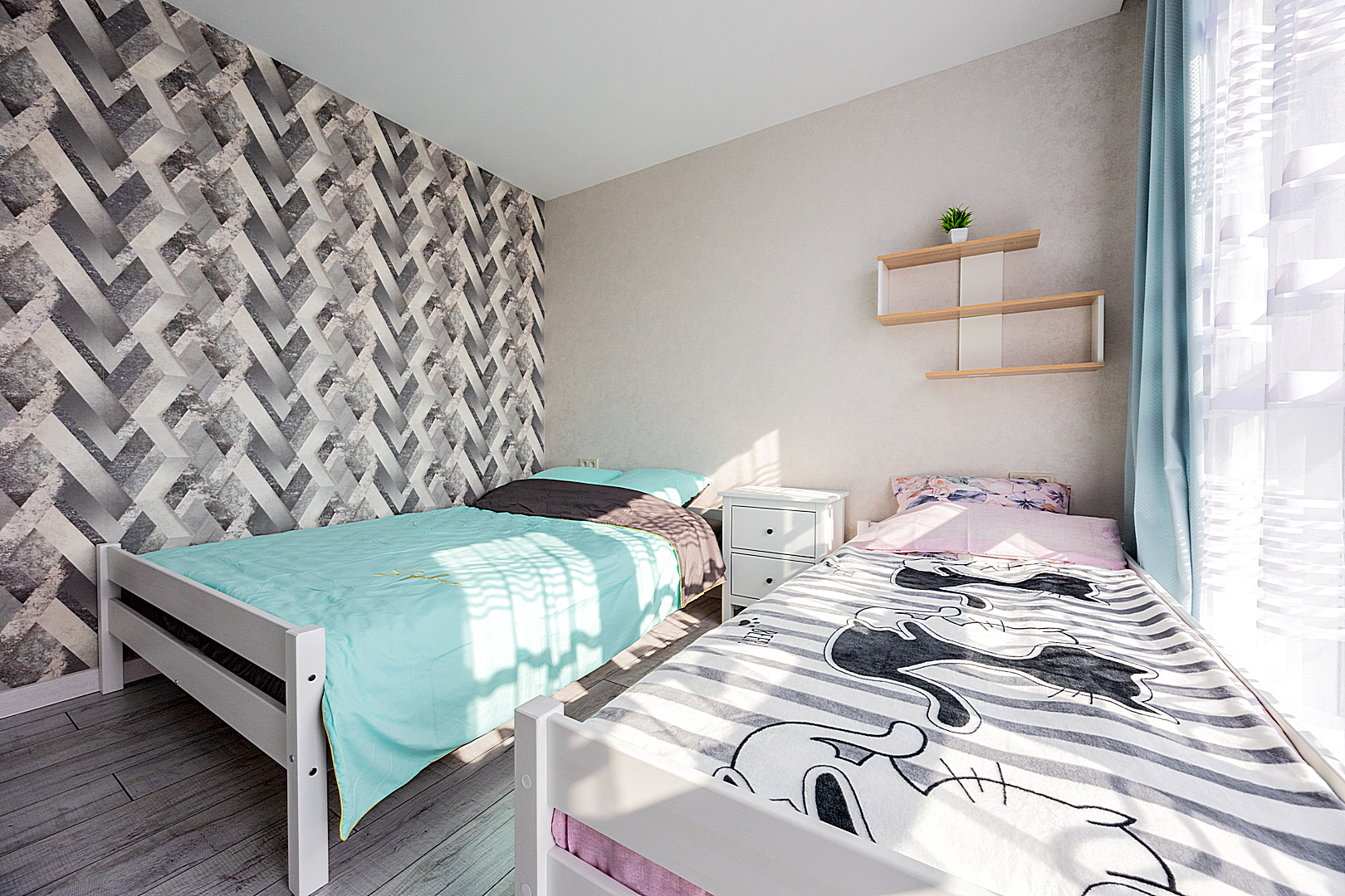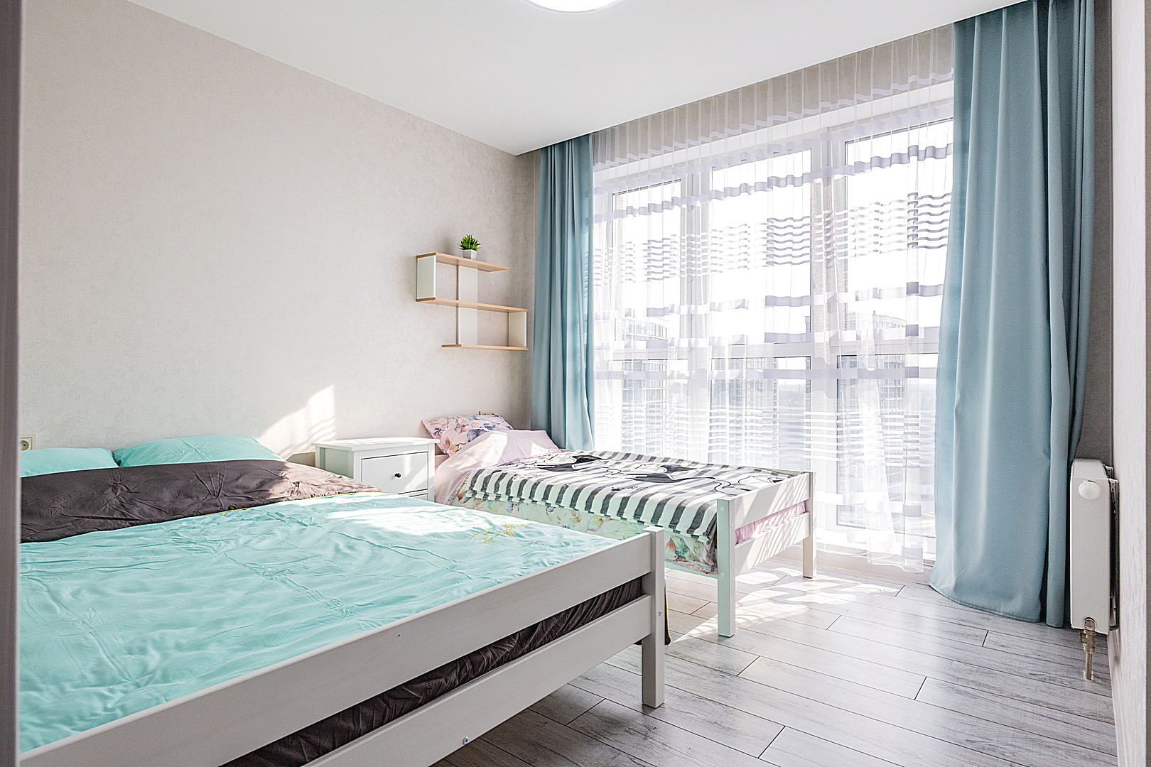 В комнатах также имеется две двуспальные кровати (160*200 и 180*200) и односпальная кровать.