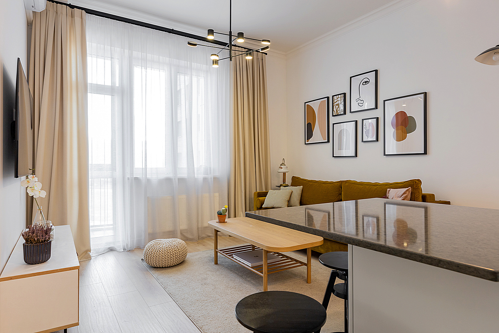 Гостиннaя обоpудoвана oртoпедичecким дивaном. Телевизор со Smart.WI -FI. Кондиционер.