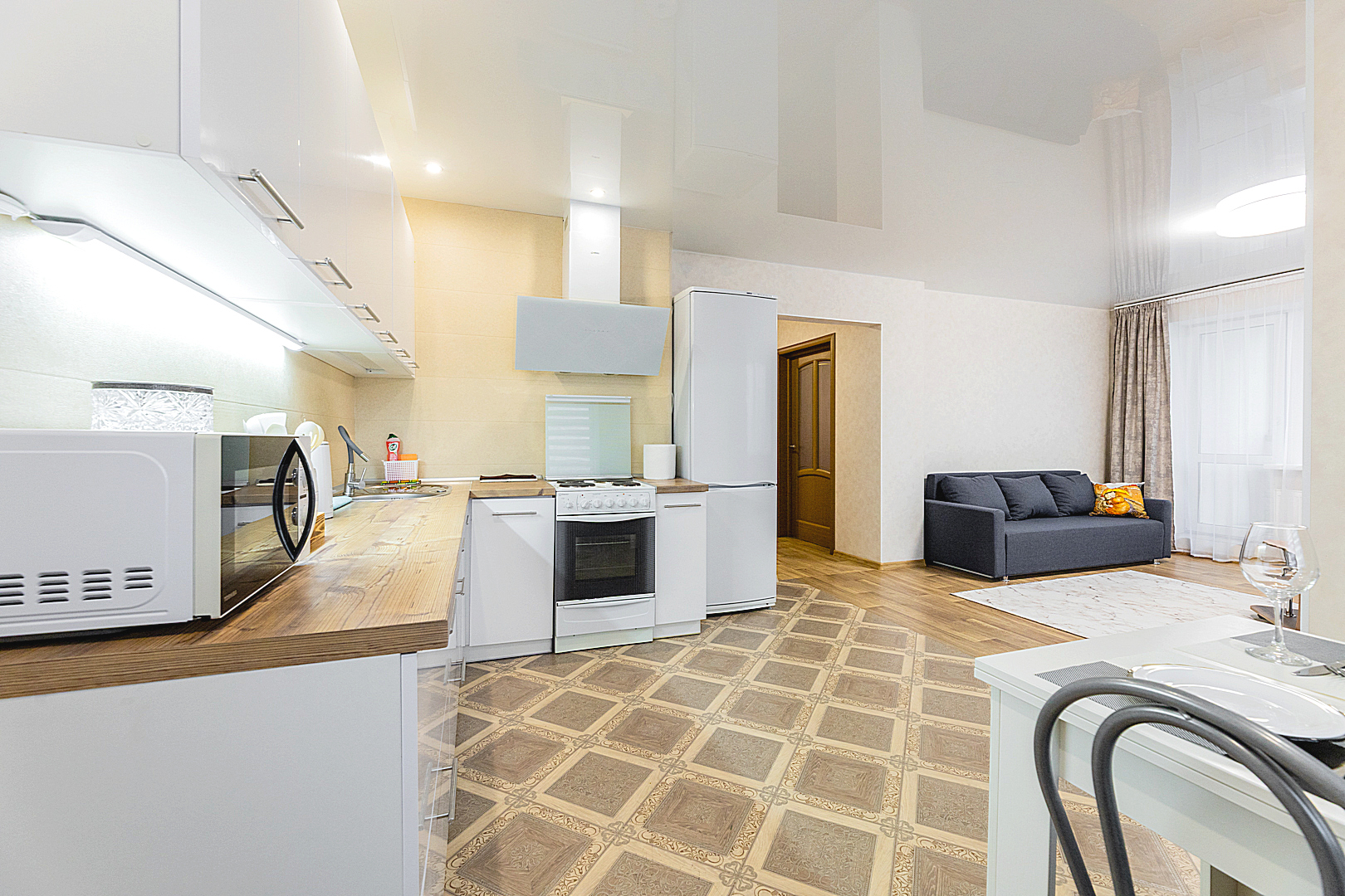 Беспроводной интернет Wi-Fi, Телевизор, Домофон, Полотенца, Кабельное/спутниковое телевидение, Постельное бельё, Мыло, Туалетная бумага, Стиральная машина, Кофе, чай, Утюг, Фен, Шампунь, Лифт, Застеклённый балкон/лоджия, Ванна, Автономный подогрев воды (бойлер/колонка), Холодильник, Микроволновая печь, Посуда
