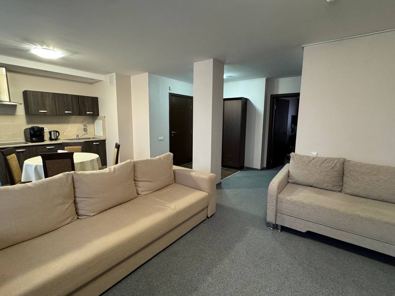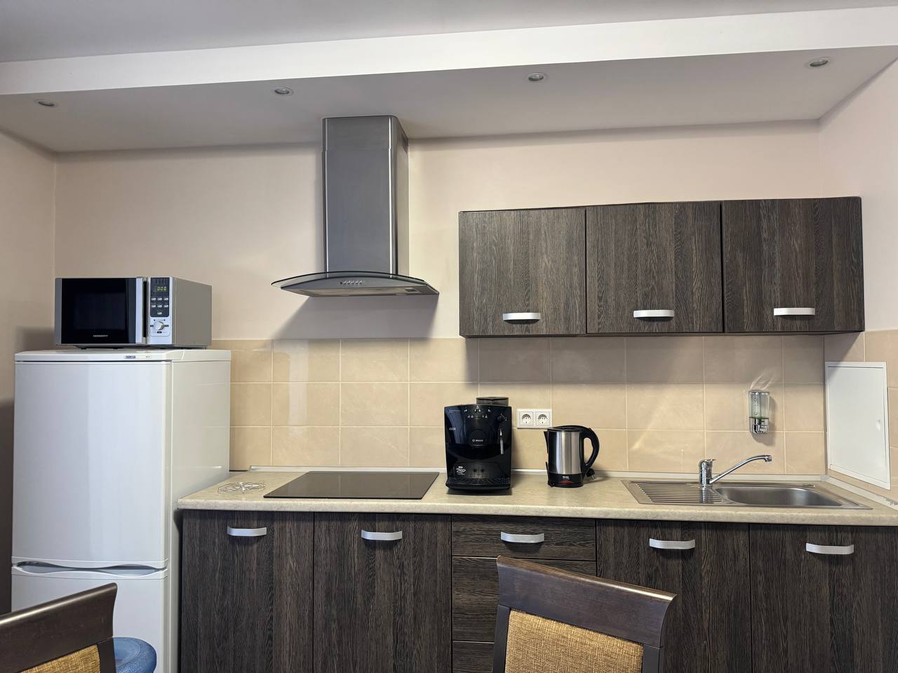 В этом же доме располагается апарт-отель, поэтому территория круглосуточно охраняется, ведётся видеонаблюдение.
