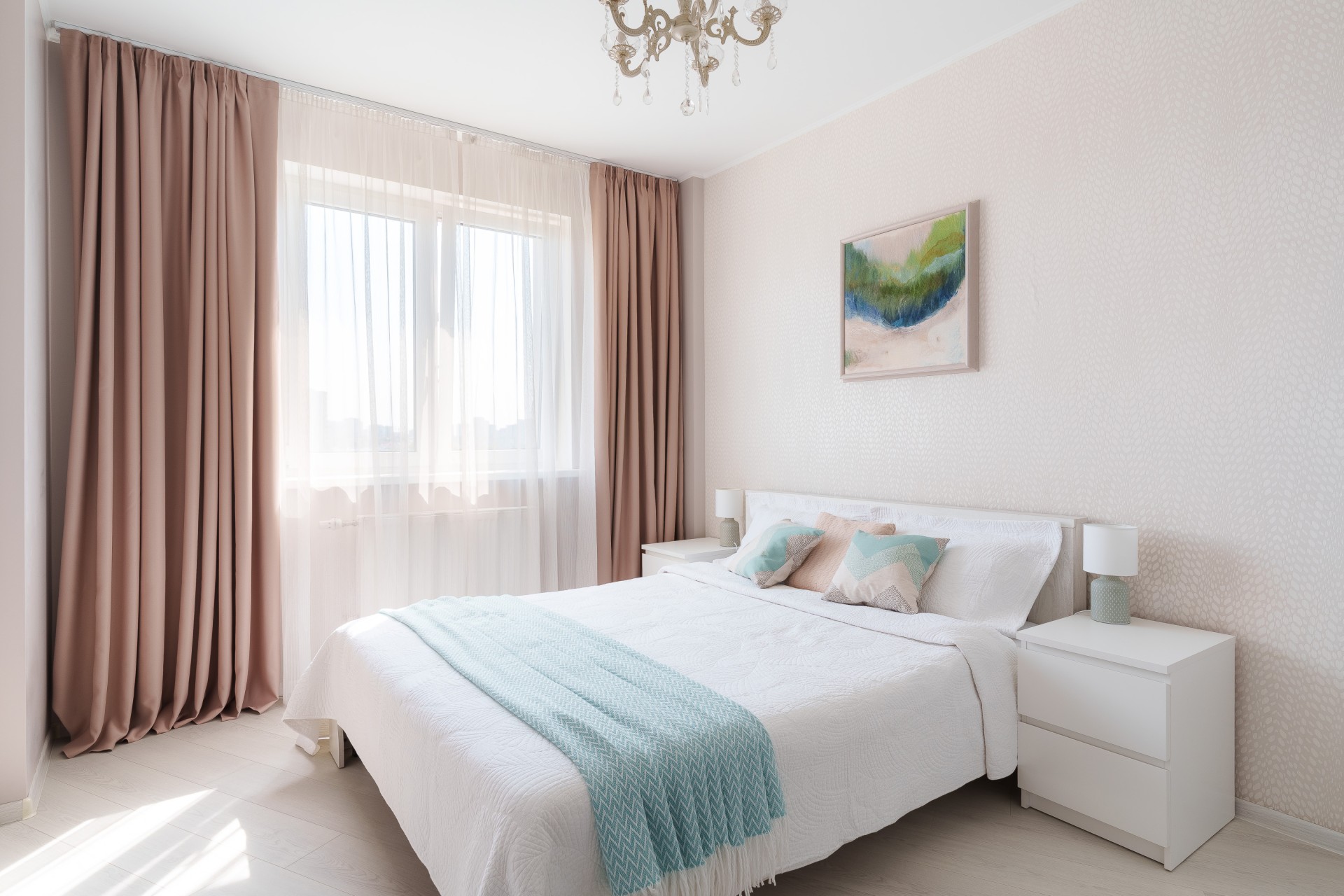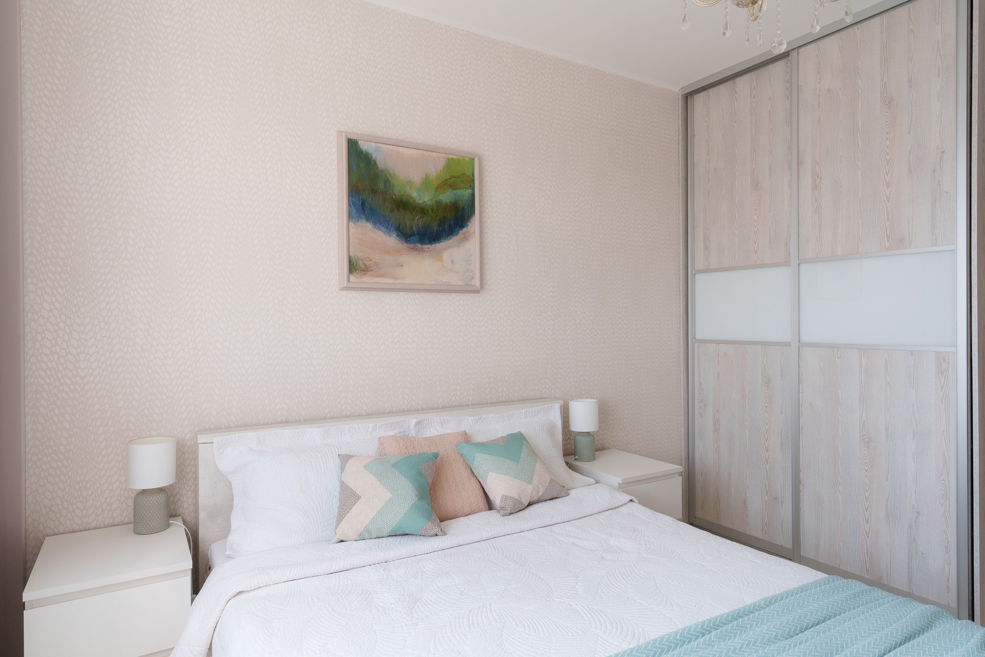В квартире есть спальня с двуспальной кроватью и в гостиной раскладной диван. Есть подушки , одеяла, постельное белье, полотенца. На кухне посуда для приготовления пищи, чайник, СВЧ, кофеварка капельная, тарелки, столовые приборы.