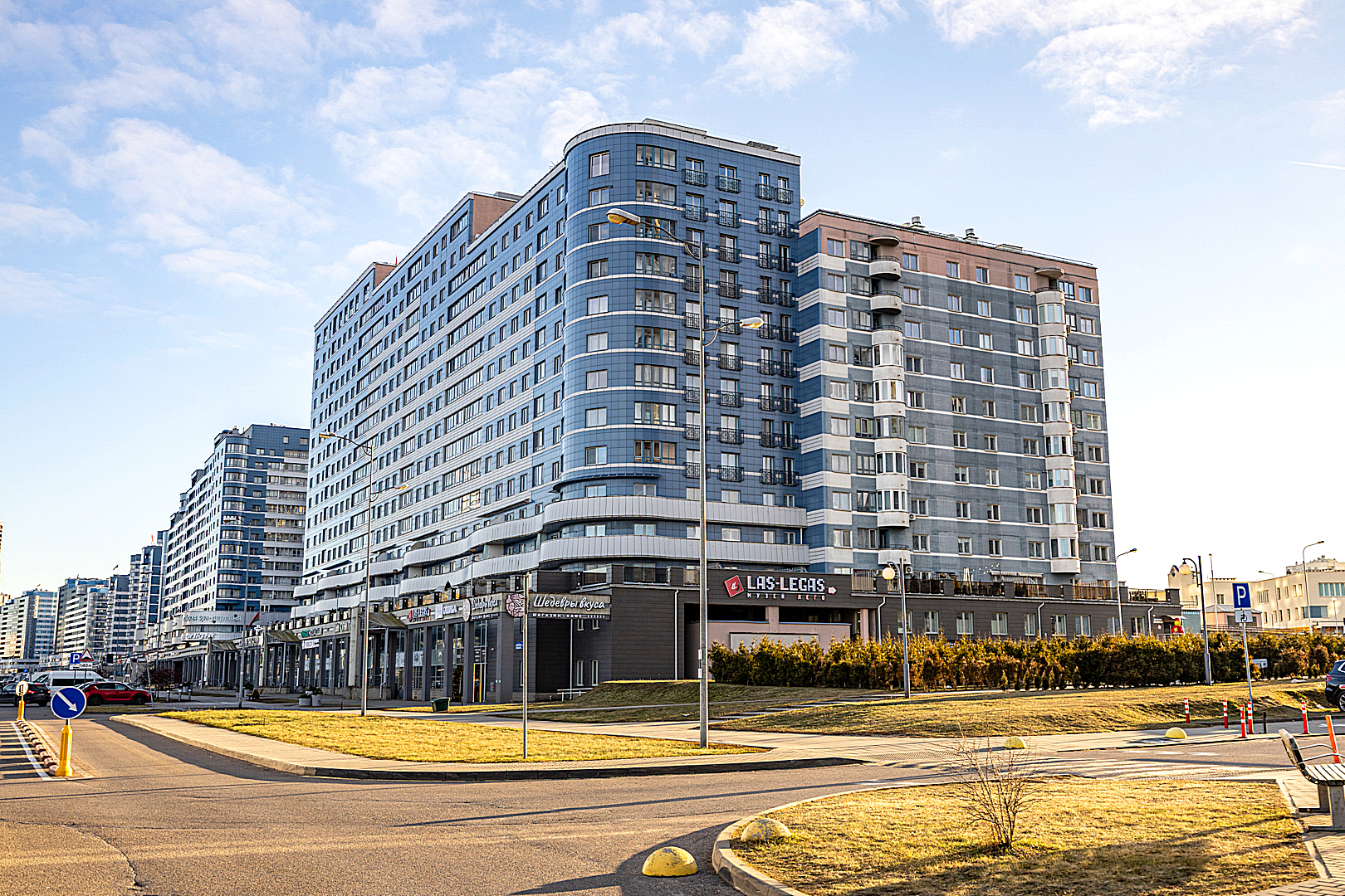 Возле дома имеется продуктовый магазин, кафе, барбершоп, фитнес-клуб, ФиолетКлиник Косметология, ветеринарная клиника, Центр Эспераль Медцентр, Renée beauty Салон красоты, Гуд Муд Кальян-бар. Зарядные станции для