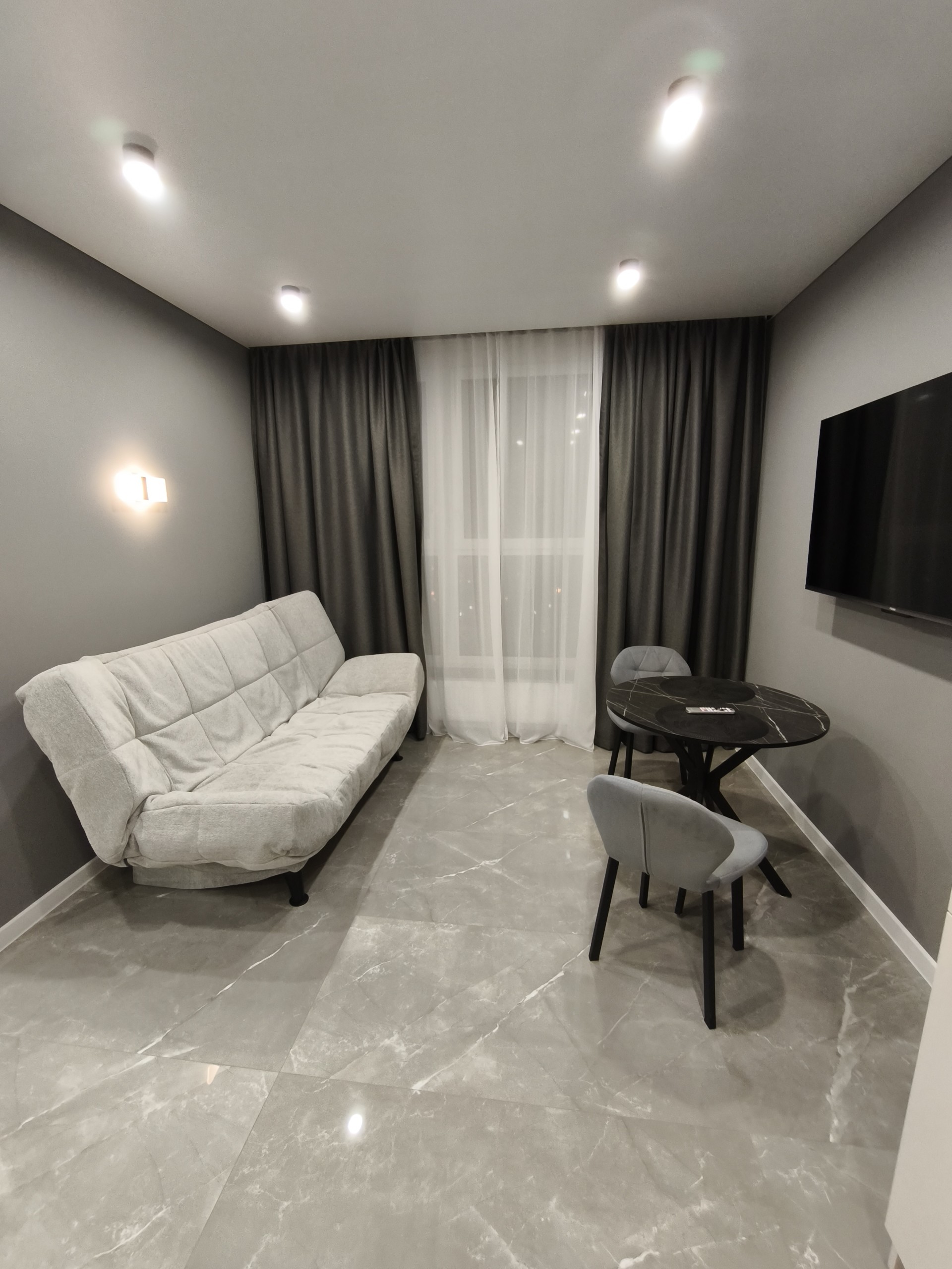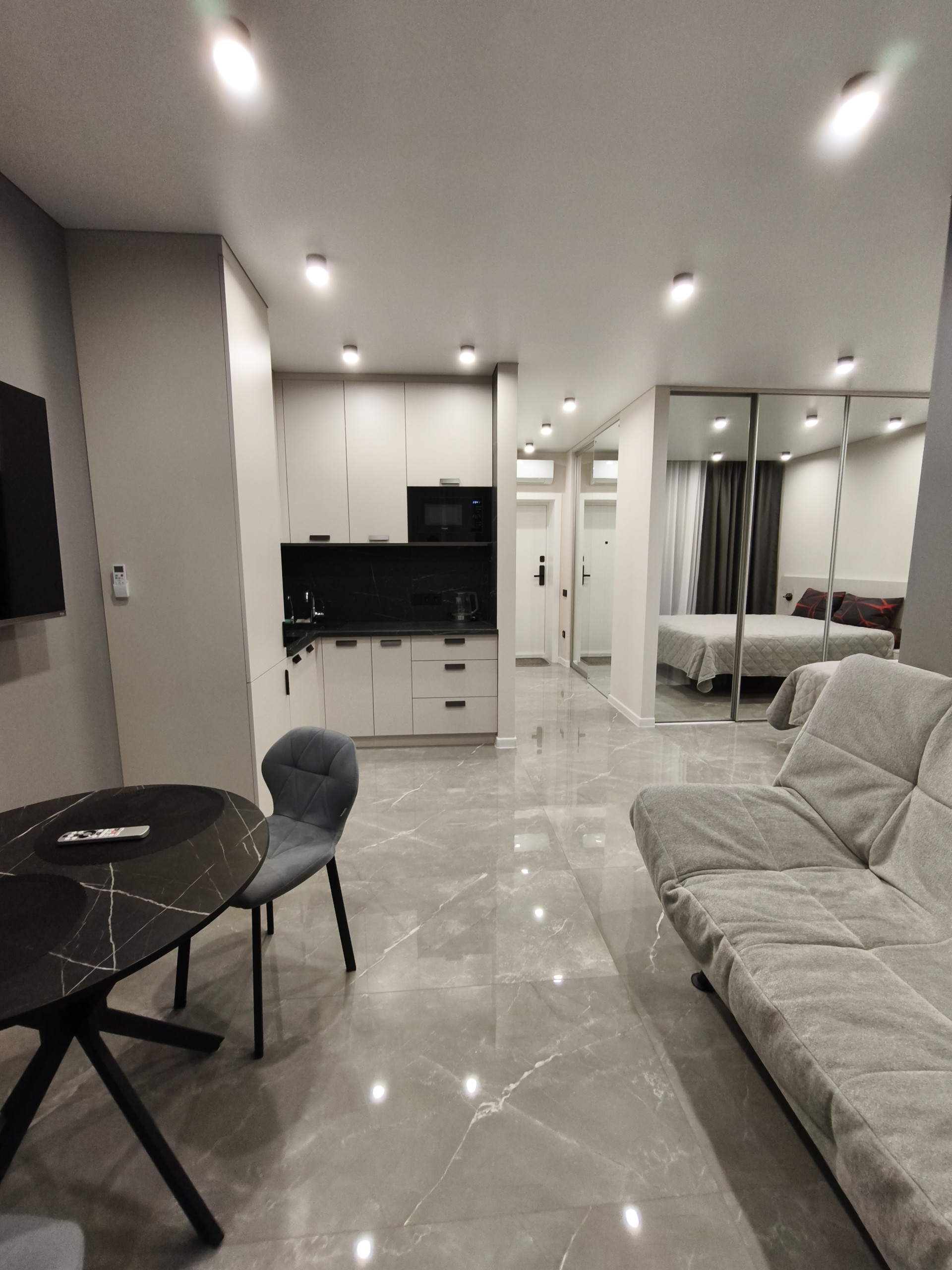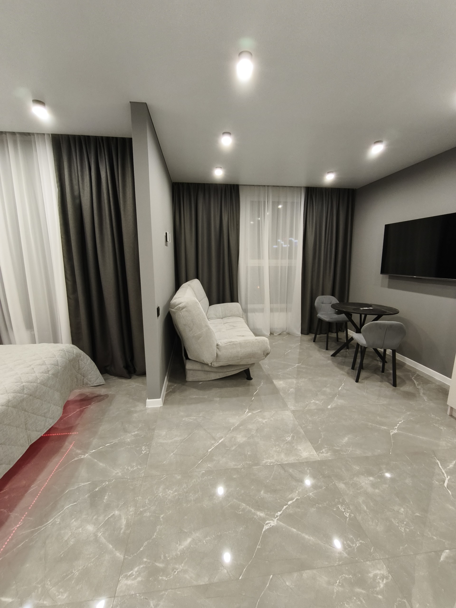 Новая, уютная студия рассчитанная на проживание двух гостей (либо до 4 человек членов одной семьи).Предусмотрено всё необходимое для комфортного времяпровождения и проживания. Стоимость в выходные и праздничные дни может меняться. Студия не сдаётся для проведения мероприятий, праздников и молодежных тусовок. По усмотрению арендодателя может взиматься залог в размере стоимости суток аренды, который возвращается при выезде из апартаментов. Арендодатель в праве отказать в заселении или дальнейшем проживании если гость находится в сильном алкогольном или другом опьянении , при жалобе соседей на нарушение режима тишины в установленное время, при нарушении правил проживания, а также не соответствие числа проживающих.