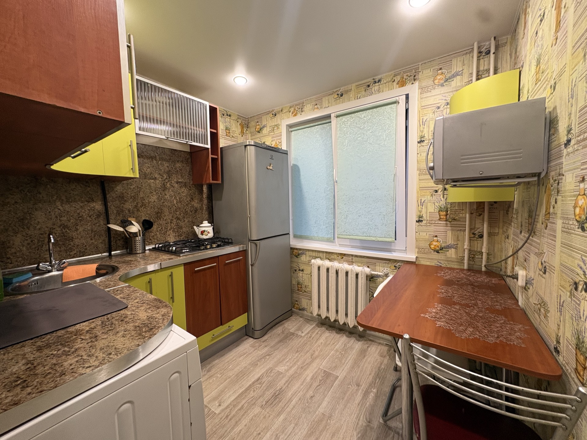 Беспроводной интернет Wi-Fi, Телевизор, Домофон, Полотенца, Постельное бельё, Мыло, Туалетная бумага, Стиральная машина, Кофе, чай, Утюг, Фен, Шампунь, Ванна, Холодильник, Микроволновая печь, Посуда