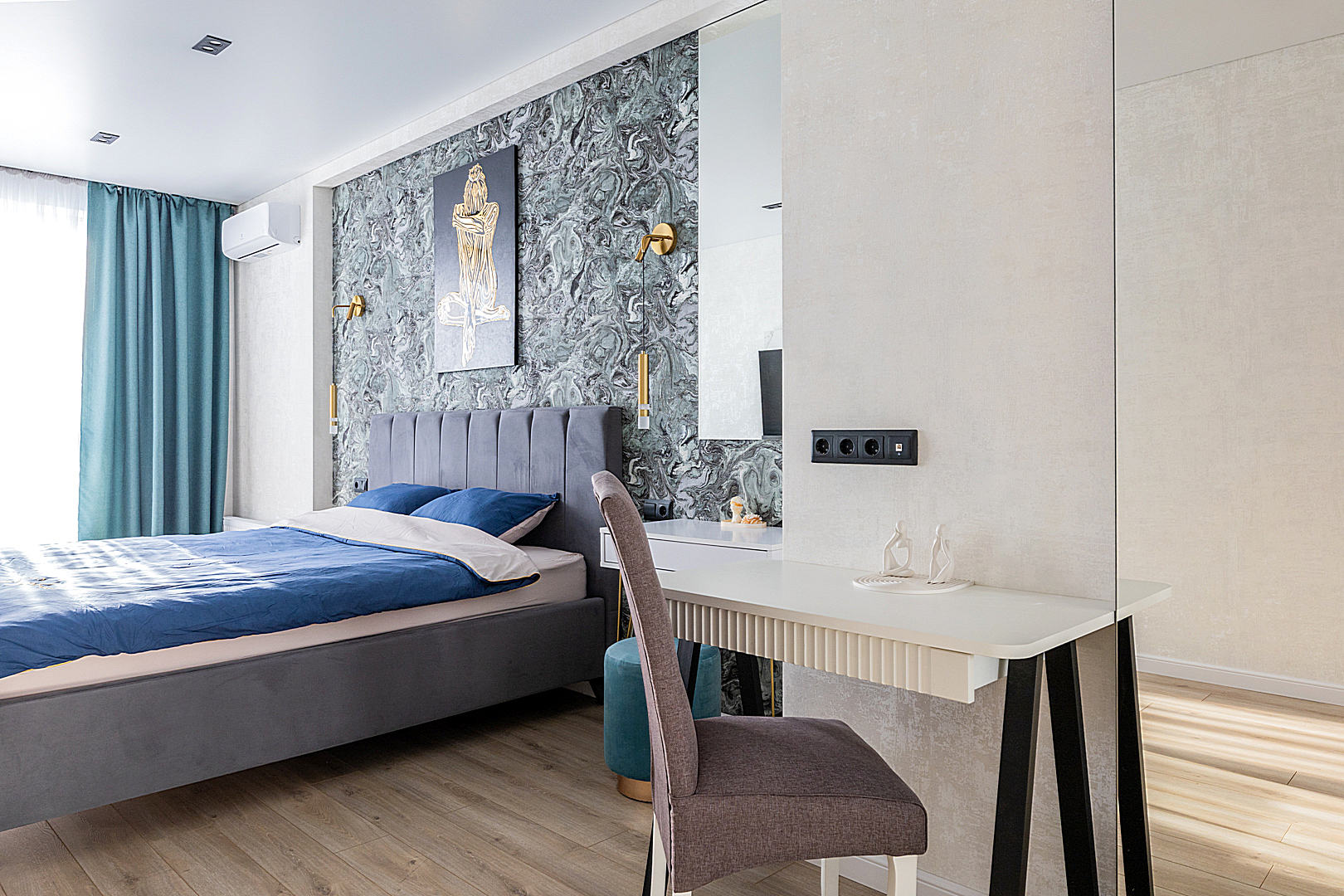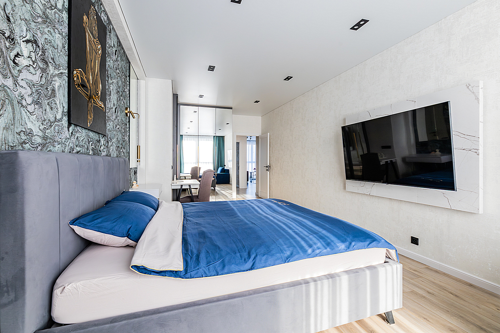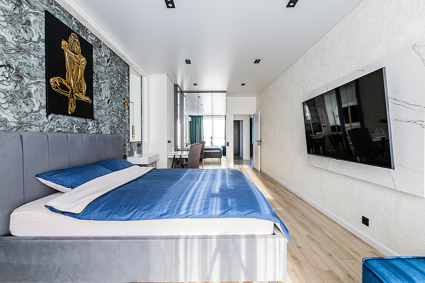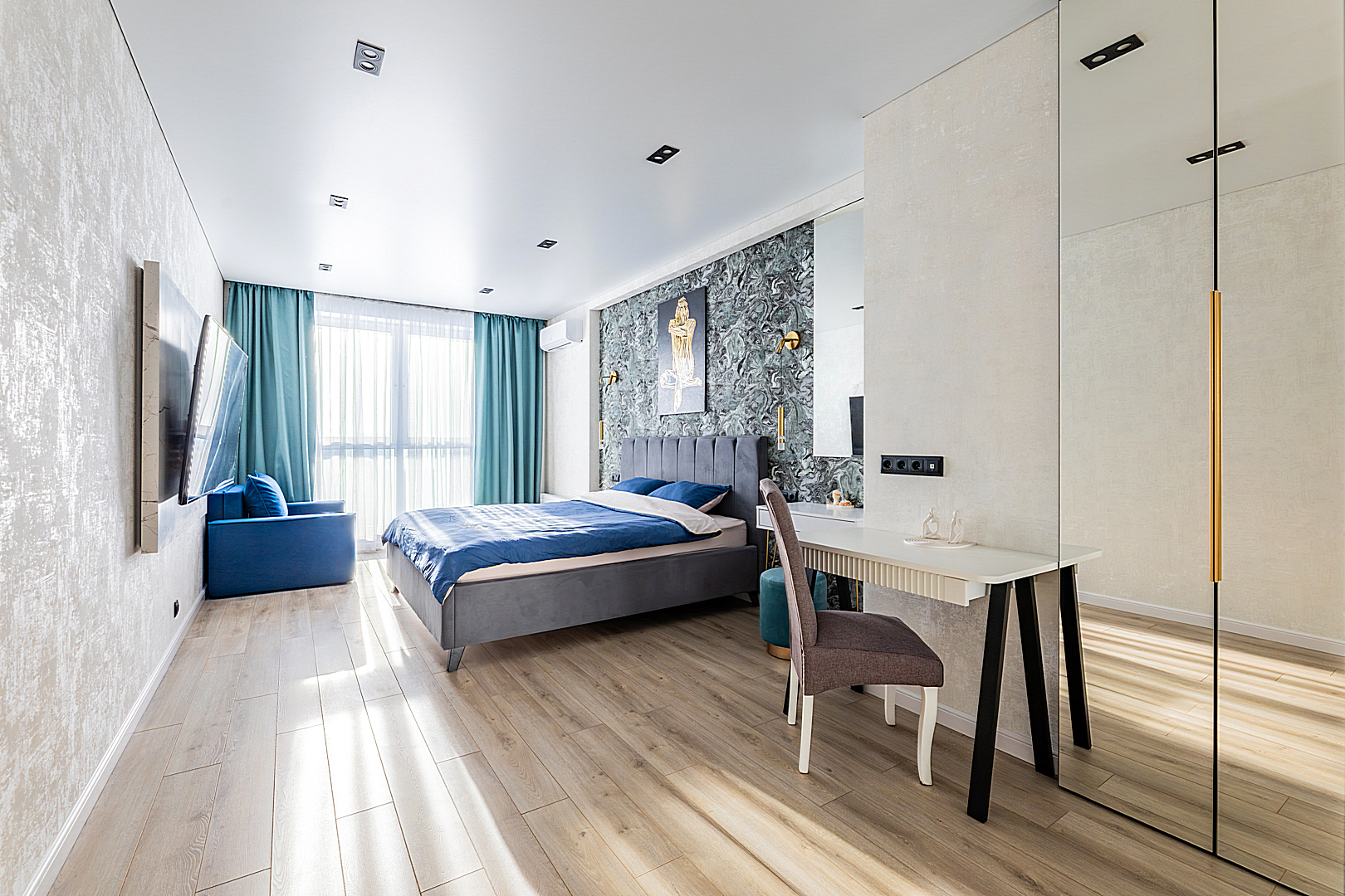Две спальни с двухспальными кроватями 180*200. Шкафы. Кондиционер. Рабочий стол. Кресло-кровать.