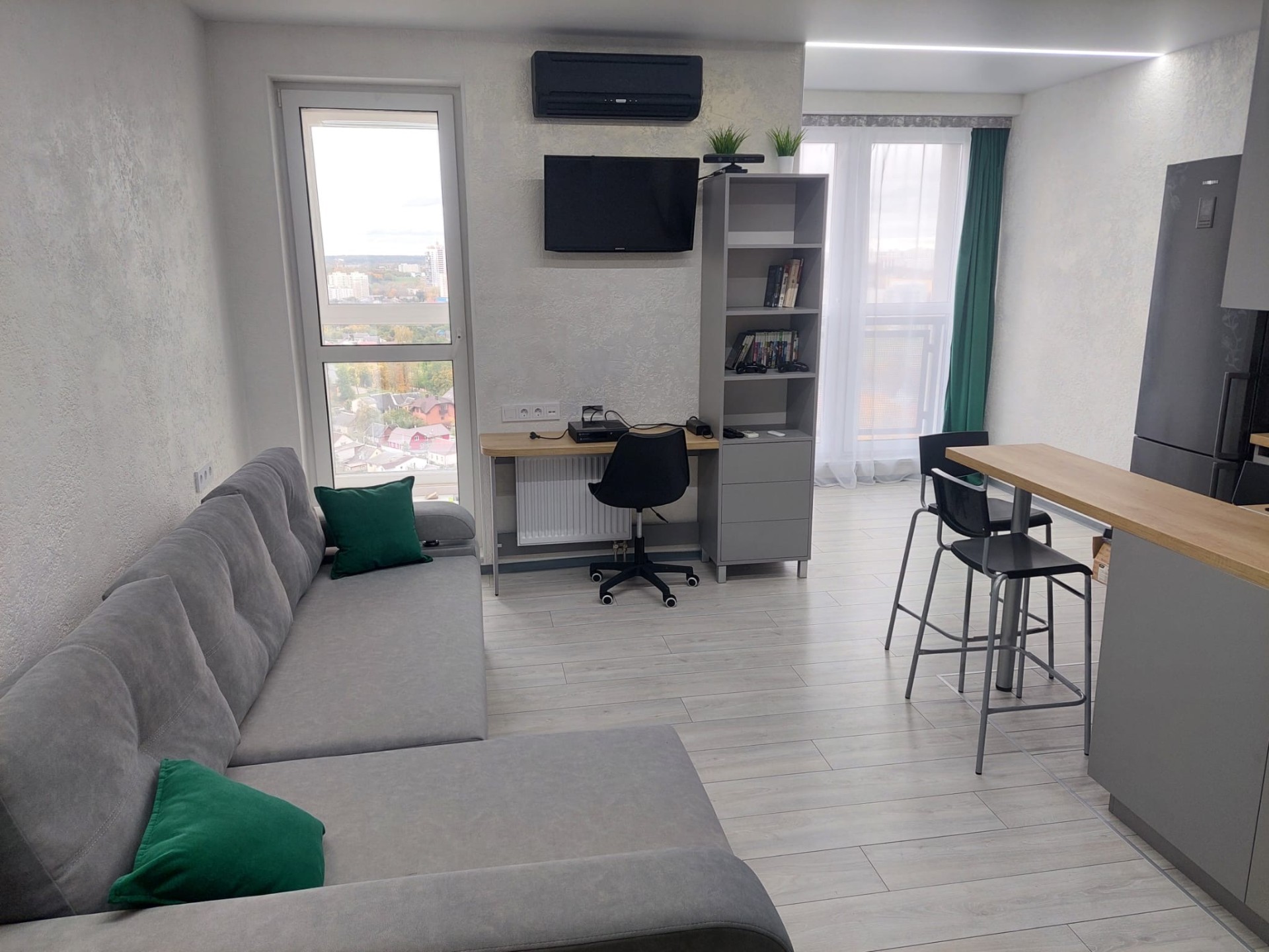 Видовая квартира-студия на 19 этаже с великолепными видами! Здесь вы можете встречать рассветы и закаты. Имеется все необходимое для проживания: кондиционер, игровая консоль, увлажнитель воздуха, стирально-сушильная машина, посудомоечная машина, холодильник, фен, утюг и прочее. Диван с ортопедическим основанием. До центра 10 минут на транспорте. Остановка сразу у дома, 10 минут пешком до метро «Аэродромная», просторная парковка, камеры видеонаблюдения , три лифта. Гипермаркет в шаговой доступе. Рядом торговый центр «Авиа Молл». До центра города 10 минут.