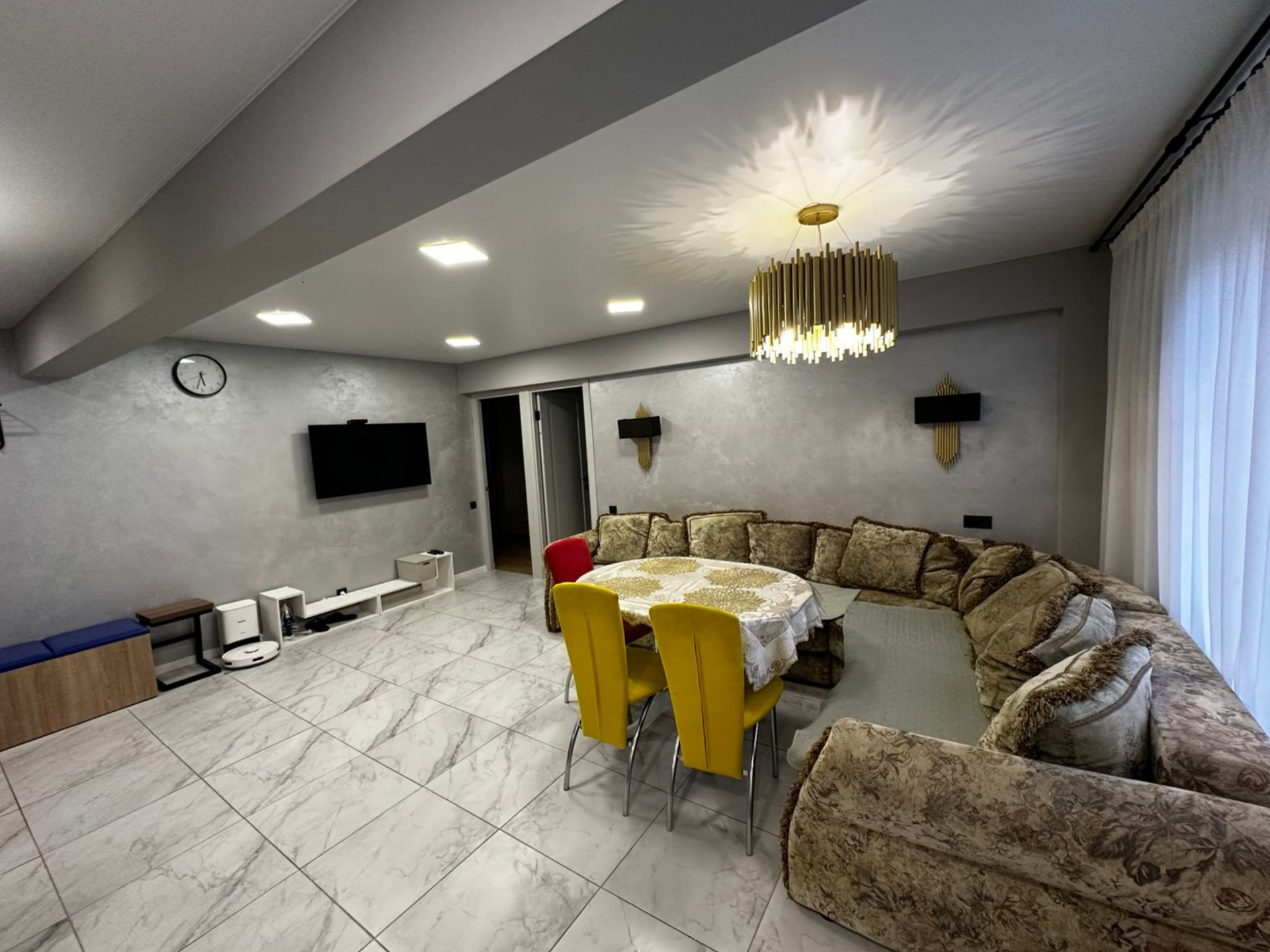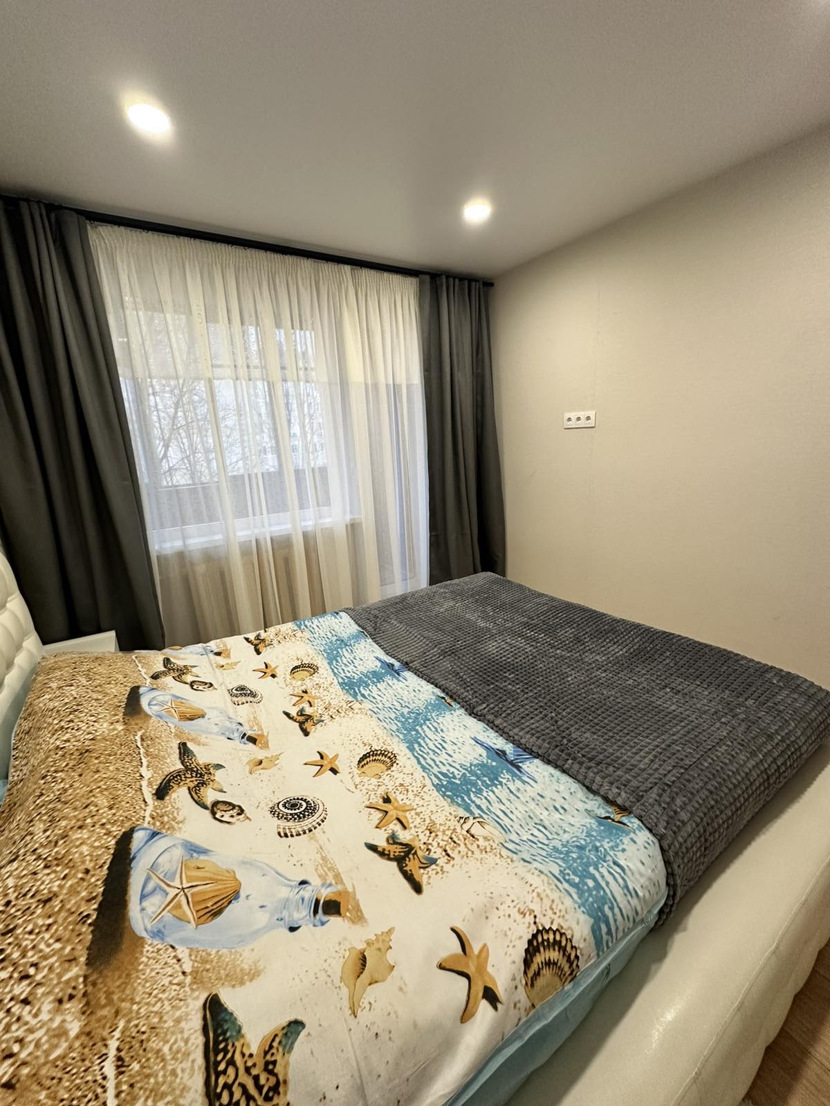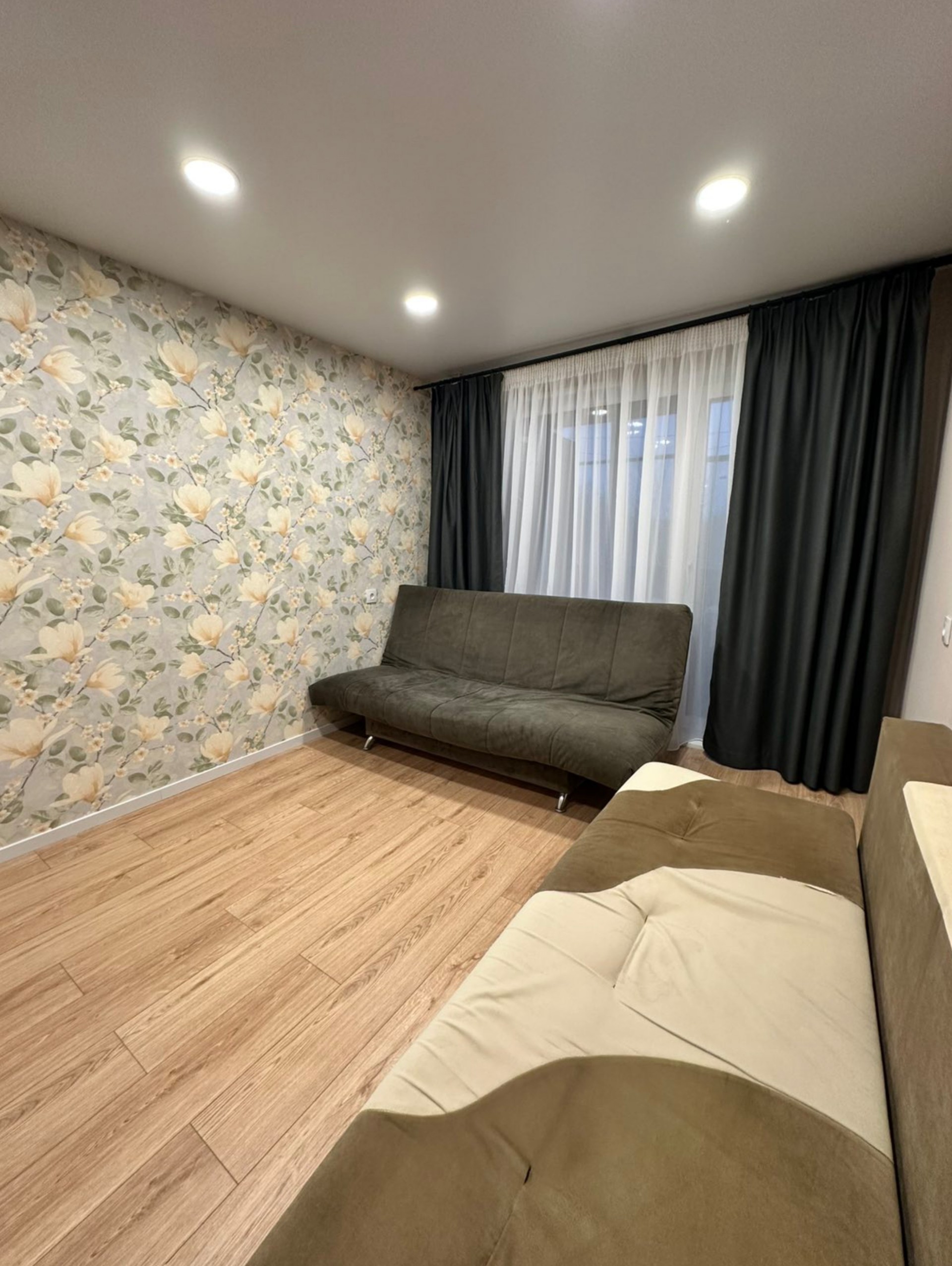 Двуспальная кровать в спальне , двуспальная диван в маленьком комнате и 2ва двуспальных дивана в большой комнате, большой двухместный диван в кухне-гостиной.