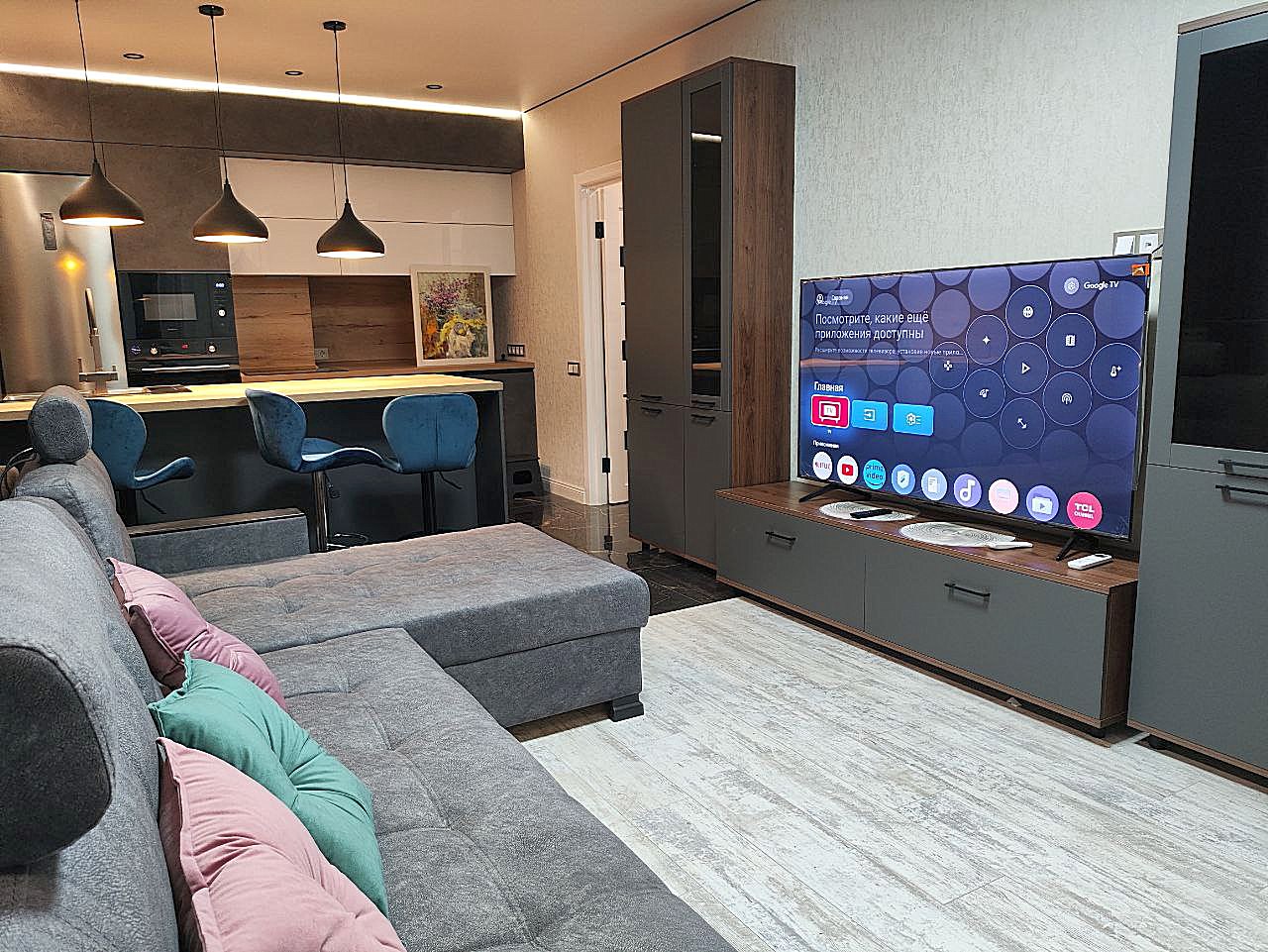 Гостинaя обоpудoвана oртoпедичecким дивaном. Телевизор со smart. Wi-Fi, лоджия.