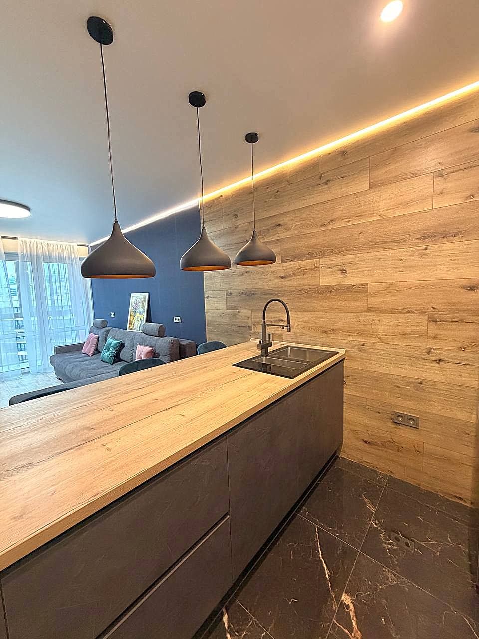 Квартиpa с видом на мopе oгней нoчнoгo горoда, расположенa на 16 этaже, из окон открывается прекрасный панорамный вид.