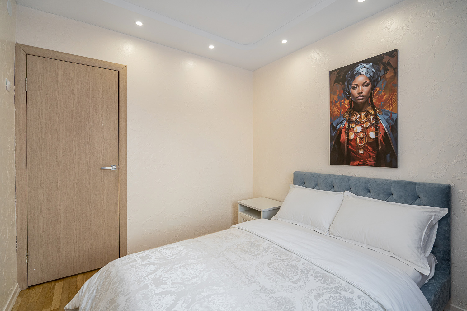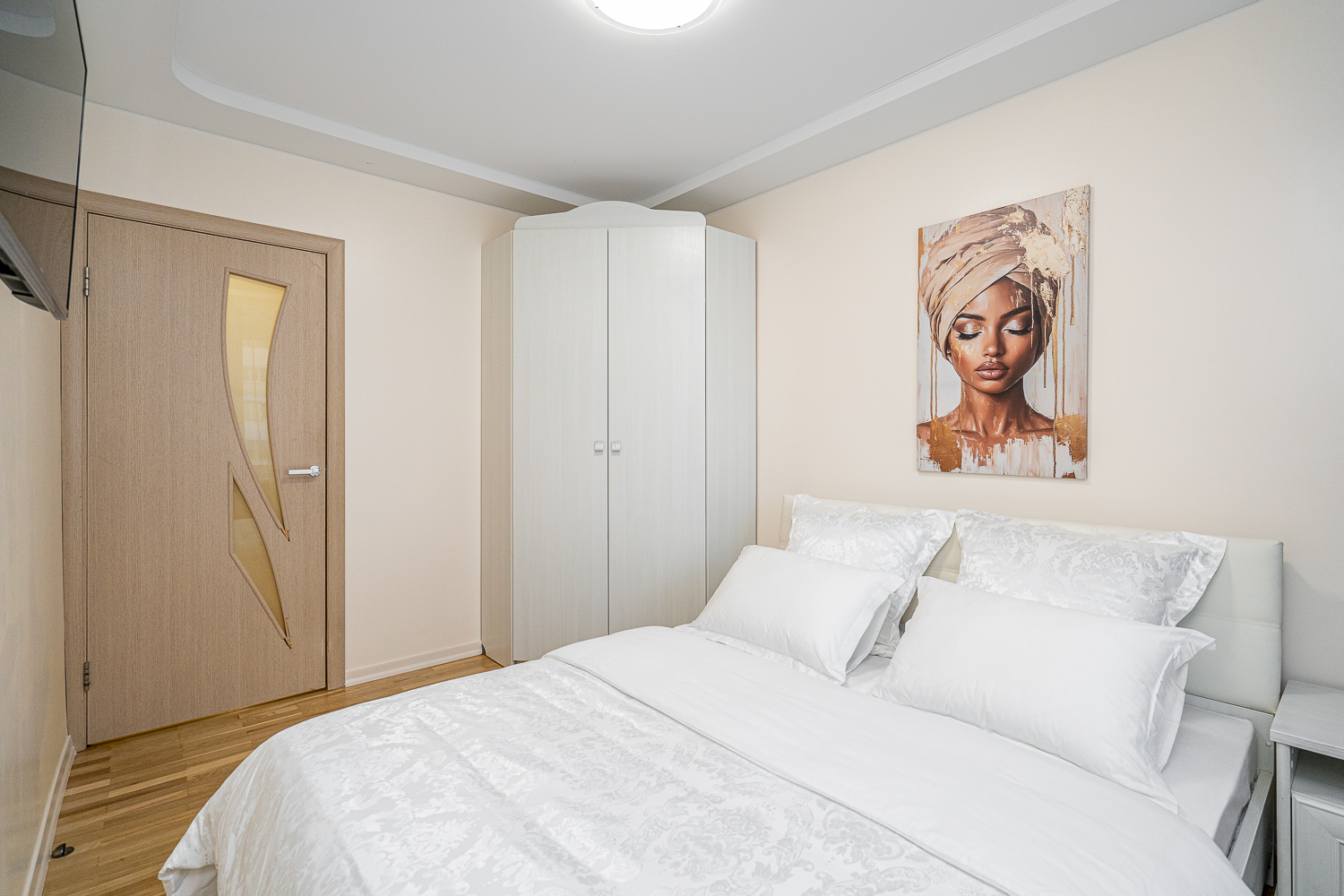 В квартире 5 раздельных спальных мест или размещение 2+2+2+2+2. В рекламе указана минимальная цена за сутки проживания на 2-3 гостя. В праздничные и выходные дни цена договорная.