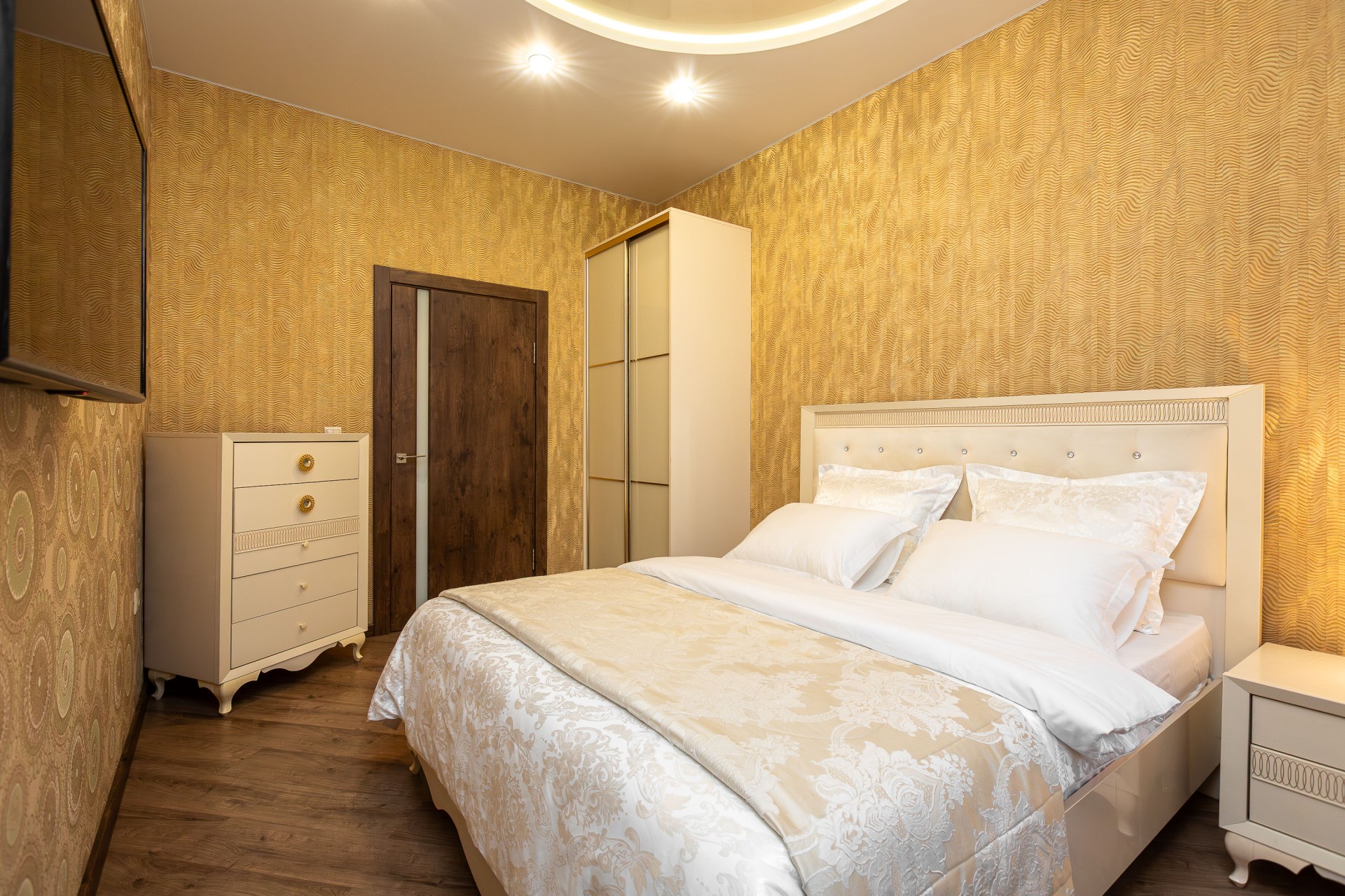 В квартире 3 раздельных спальных места или размещение 2+2+2. В рекламе указана минимальная цена за сутки проживания на 2 гостя. В праздничные и выходные дни цена договорная.