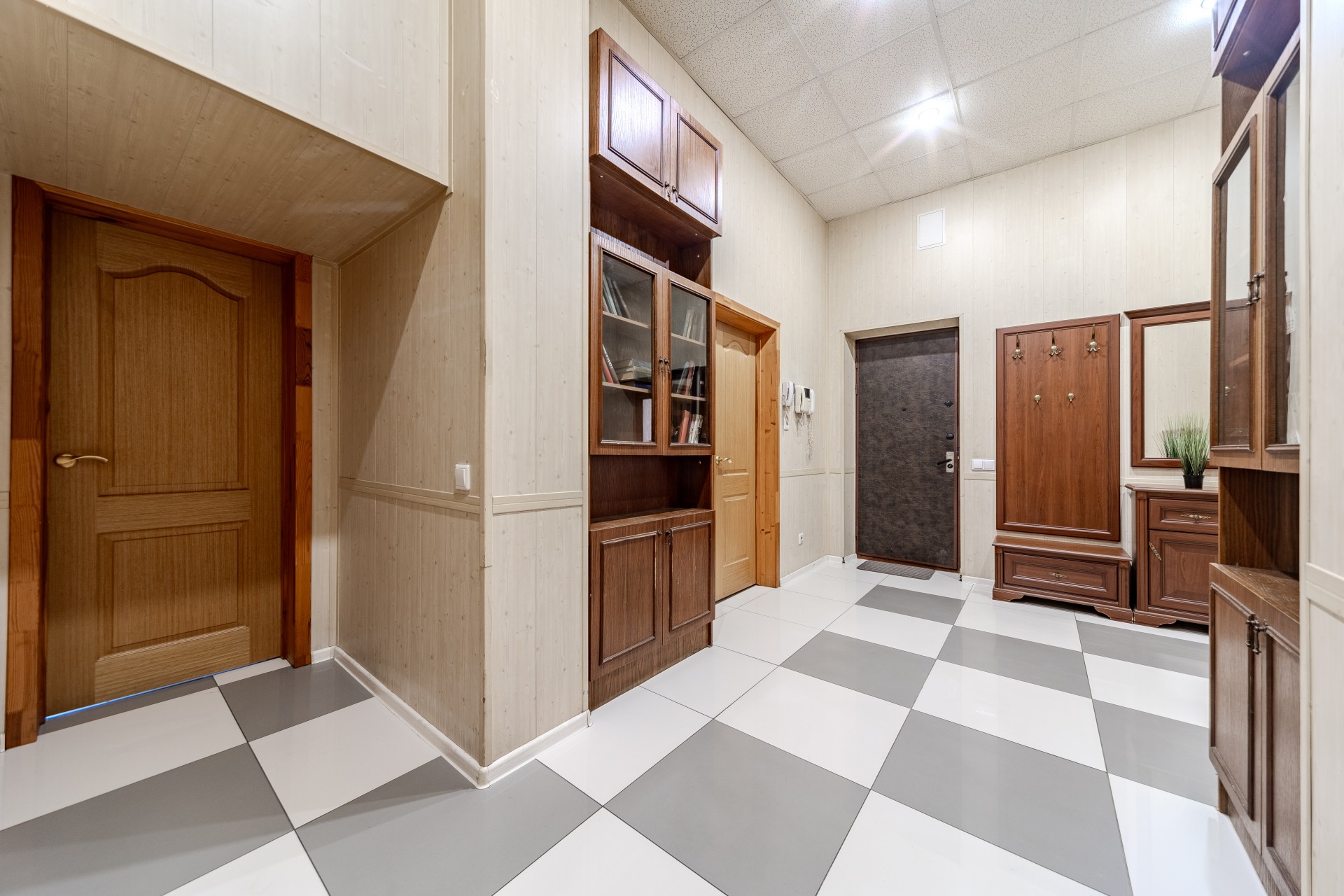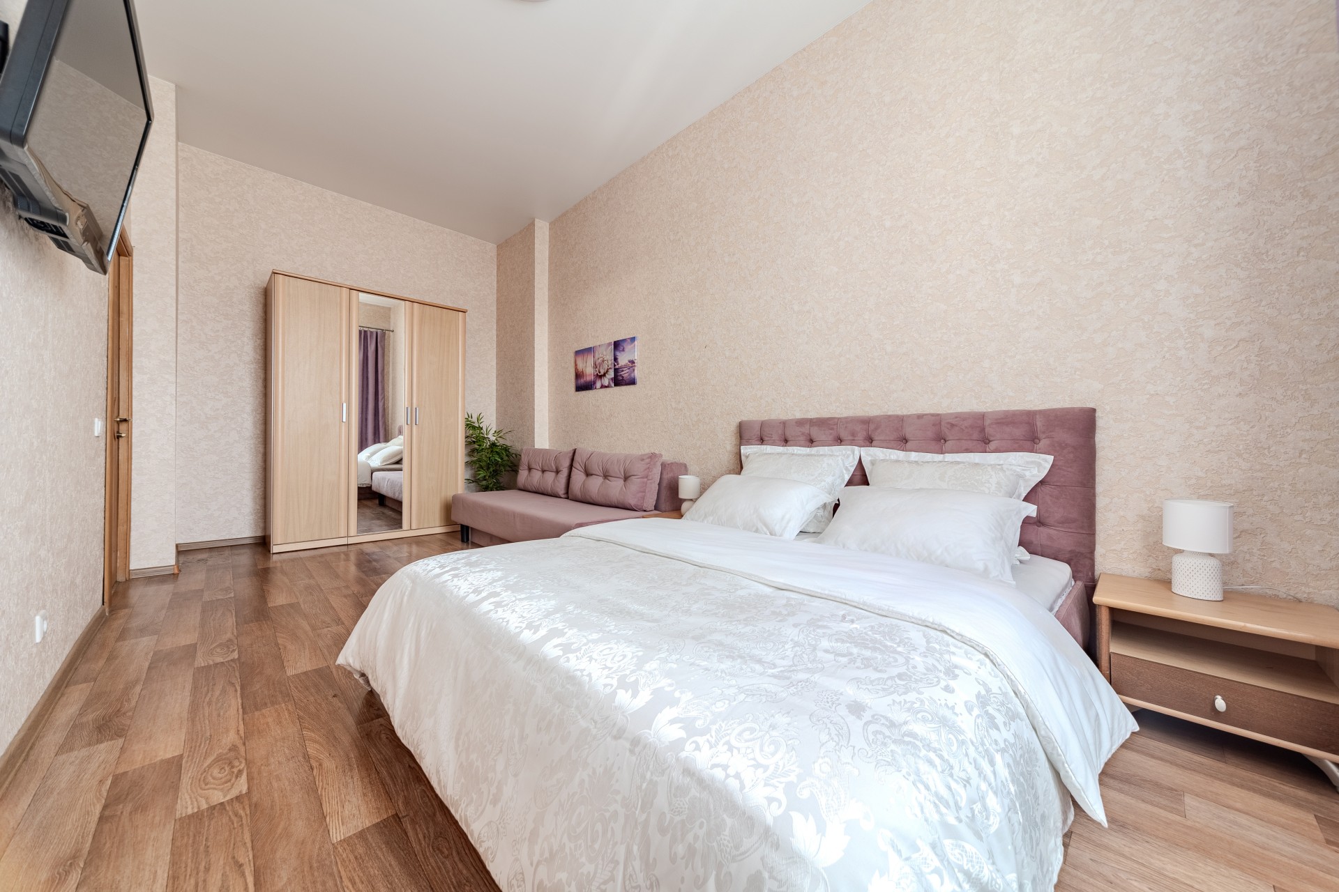 В квартире три изолированных спальни, каждая из которых оборудована большой двуспальной кроватью, что обеспечит вам спокойный и комфортный отдых. Просторная гостиная оформлена в современном стиле и является идеальным местом для общения и отдыха после насыщенного дня.