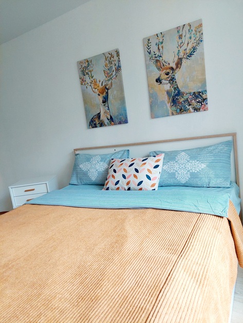 В квартире двуспальная кровать, двуспальный ортопедический диван, одноместное кресло-кровать - 2шт.