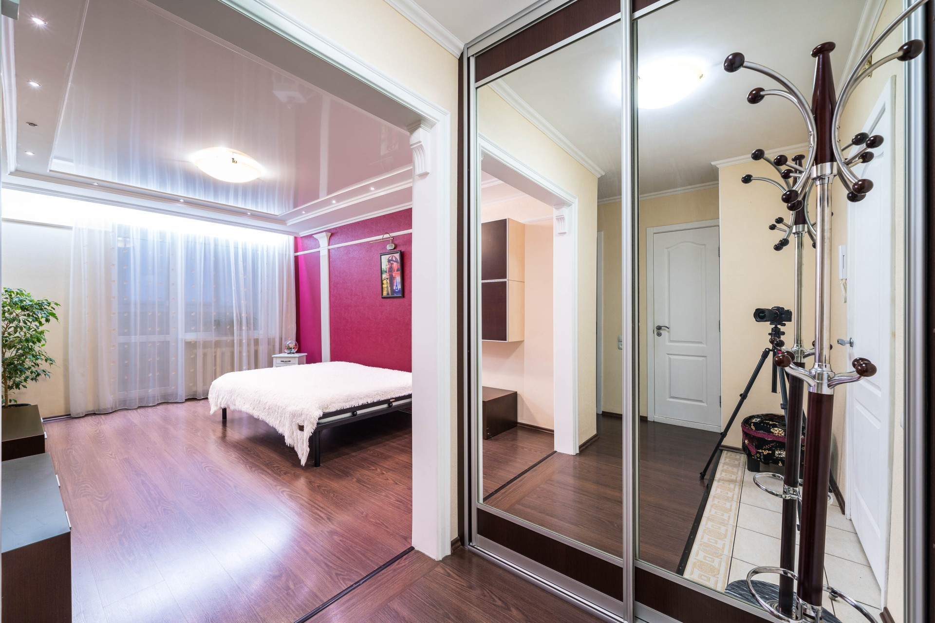 Мебель (кованная кровать с ортопедическим матрацем, на кухне стеклянный стол с хромом, диван). Ремонт очень качественный, чистота стерильная. В шаговой доступности множество магазинов, Максимус, Гиппо и т.д. А так же банно-оздоровительный комплекс, парикмахерская, бары и рестораны. Удобное транспортное сообщение. Хороший выезд на МКАД, что делает доступной любую точку города.