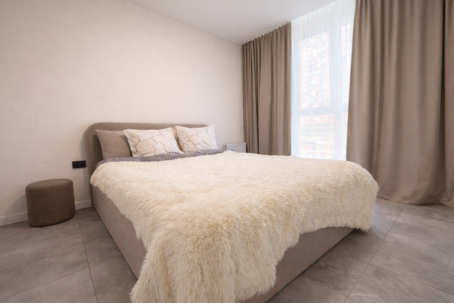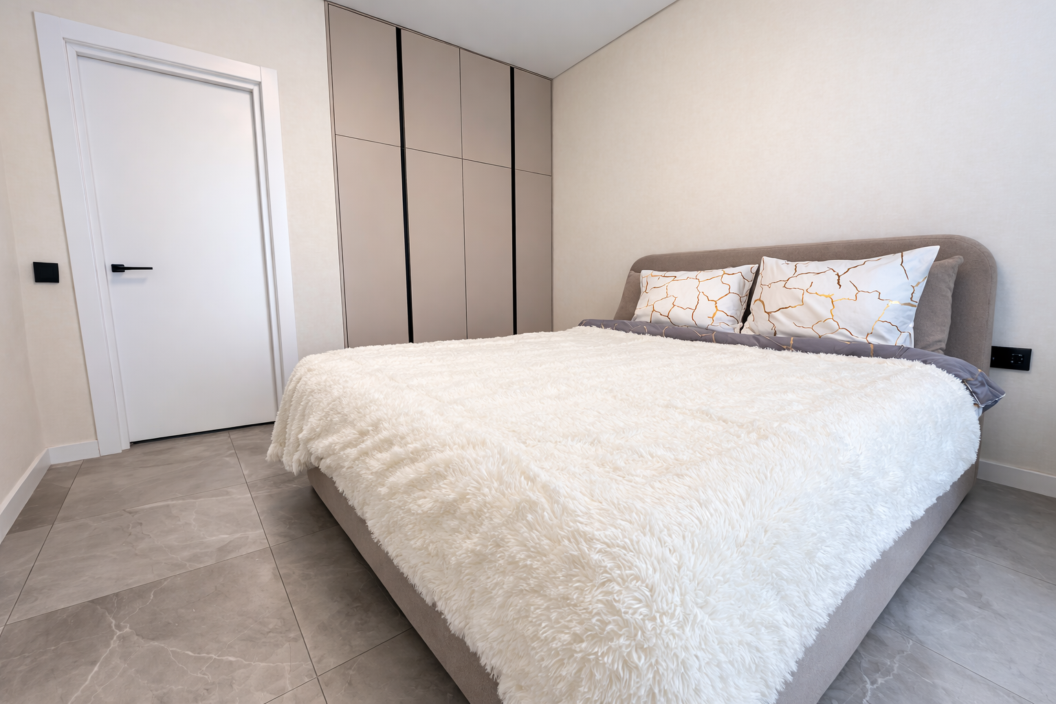 Здесь действительно приятно отдыхать. В спальне вас ждет большая удобная кровать с матрасом Vegas для крепкого, спокойного сна и полноценного восстановления.