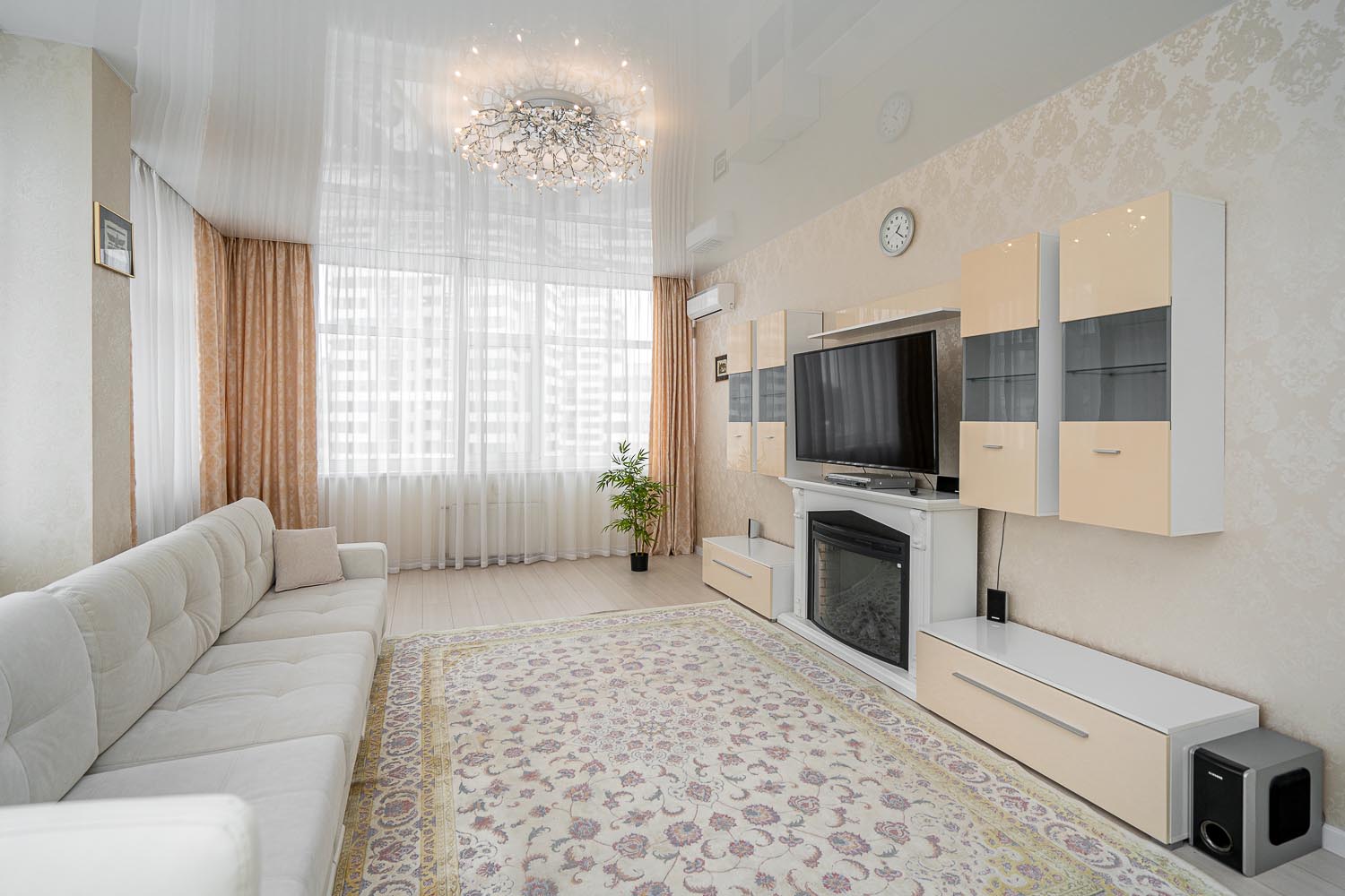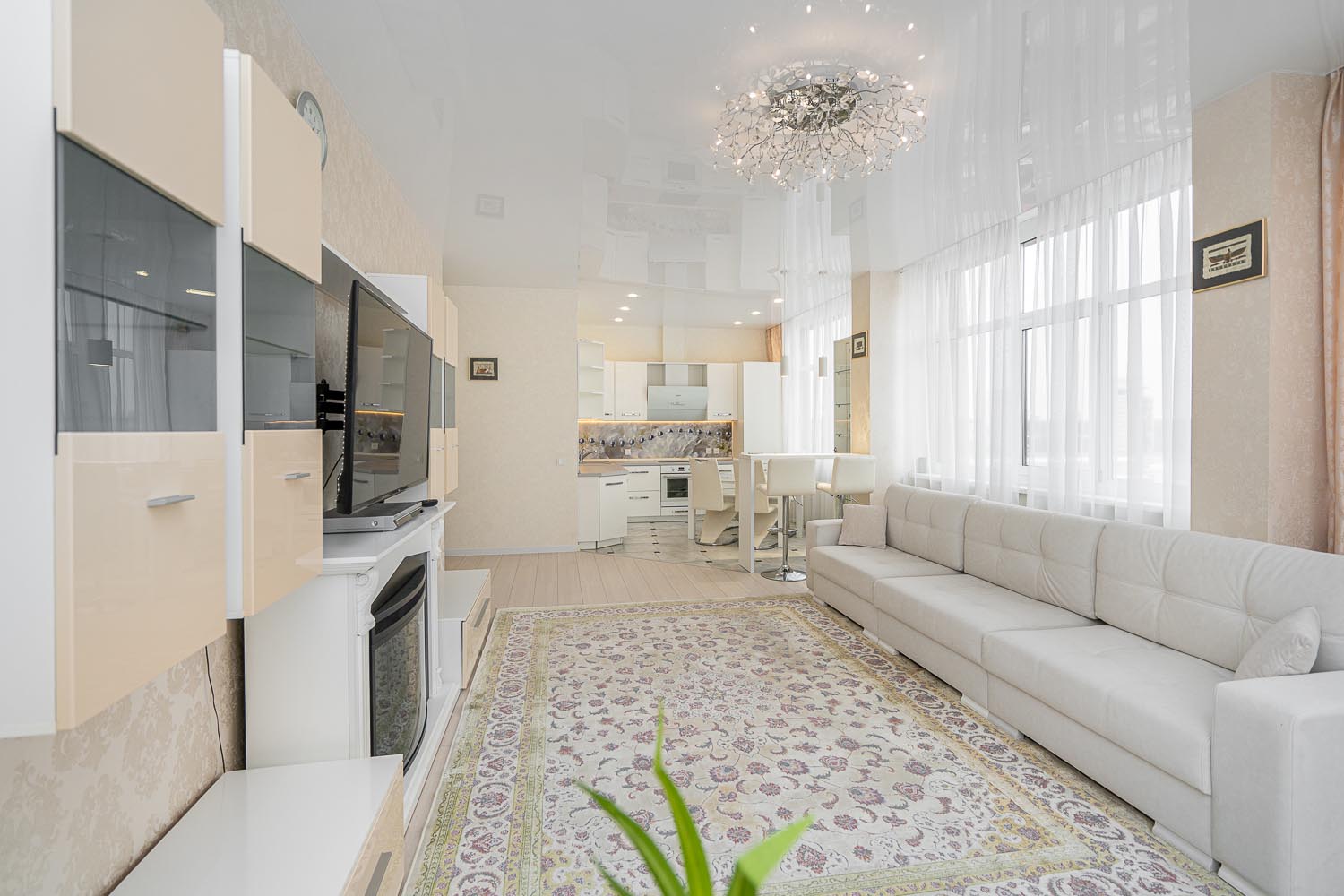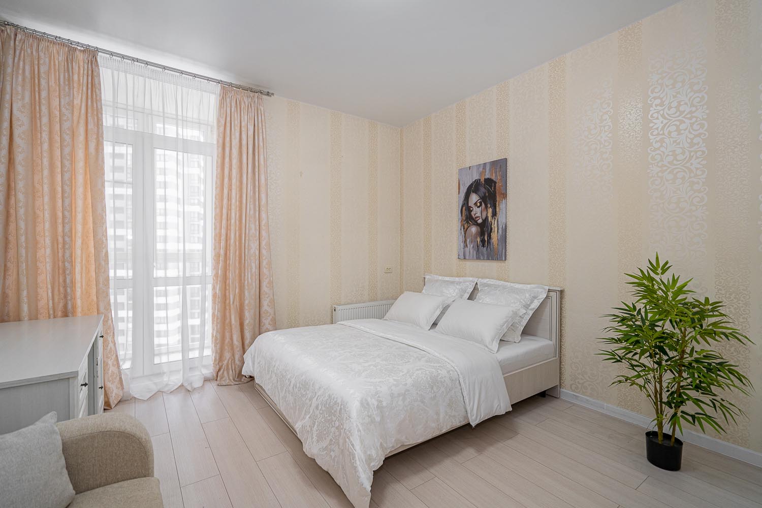Светлая и уютная трехкомнатная квартира расположена в современном ЖК «Маяк», на улице Петра Мстиславца, 20. Просторная квартира располагает двумя отдельными спальнями, кухня-гостиная с раскладным диваном, камином и большим телевизором, что обеспечивает комфорт и уединение для гостей.